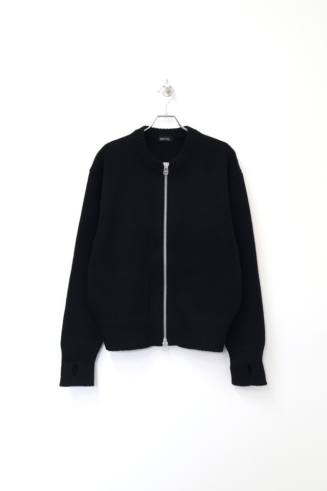 ROTOL WOOL CASHMERE ZIP KNIT SWEATER -BLACK-