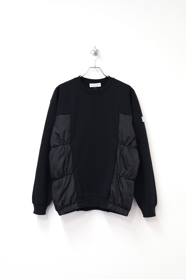 elephant TRIBAL fabrics Puffer Sweat E03-SD25F パファージャケットと裏起毛クルーネックスウェットをドッキングしたアイテム。 モデル身長 / 168cm 着用サイズ / F BODY:POLYESTER 50% , COTTON 50% PADDING:POLYESTER 100% OTHER:POLYESTER 100% SIZE FREE : 着丈69cm 身幅62cm 肩幅55cm 裄丈87cm