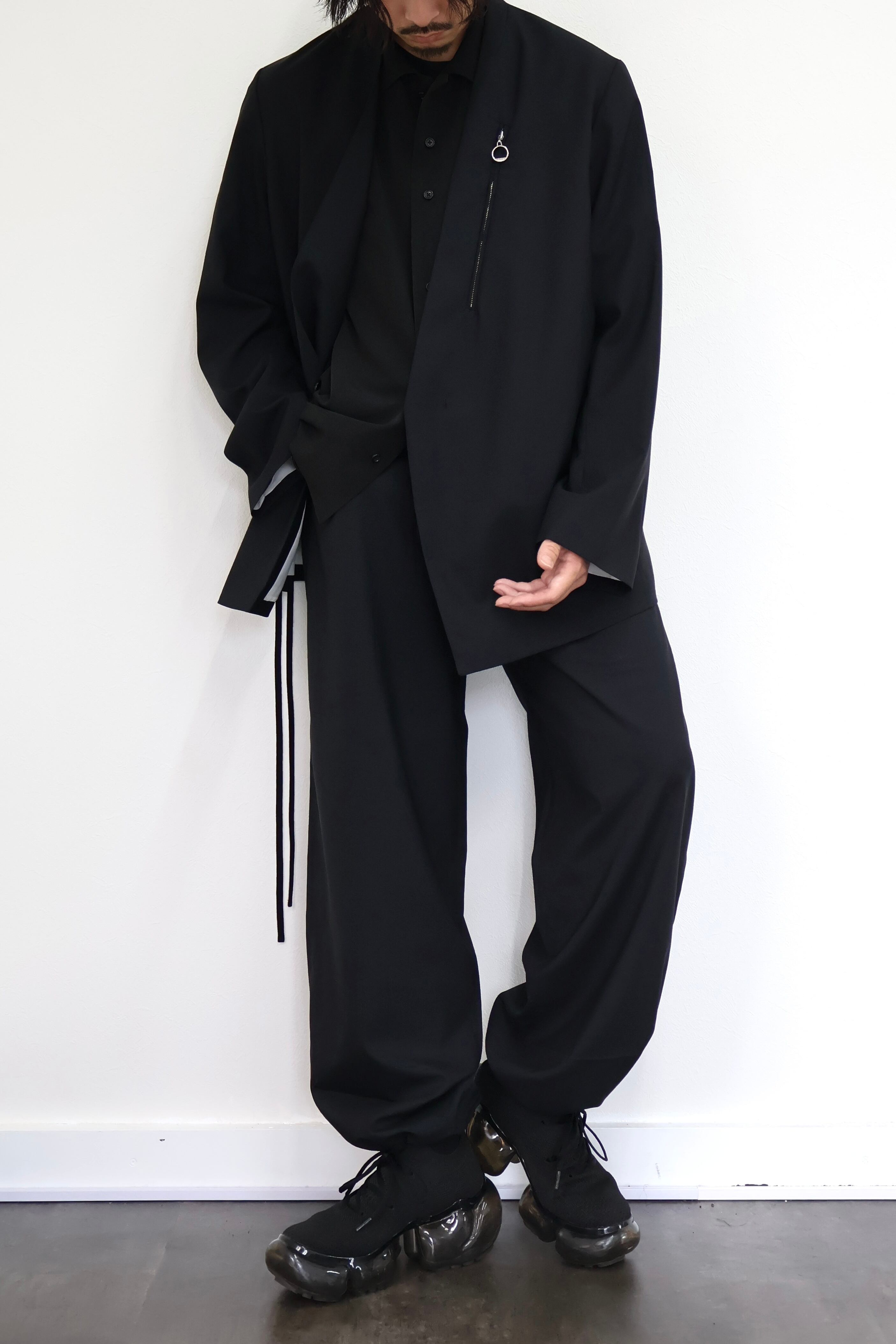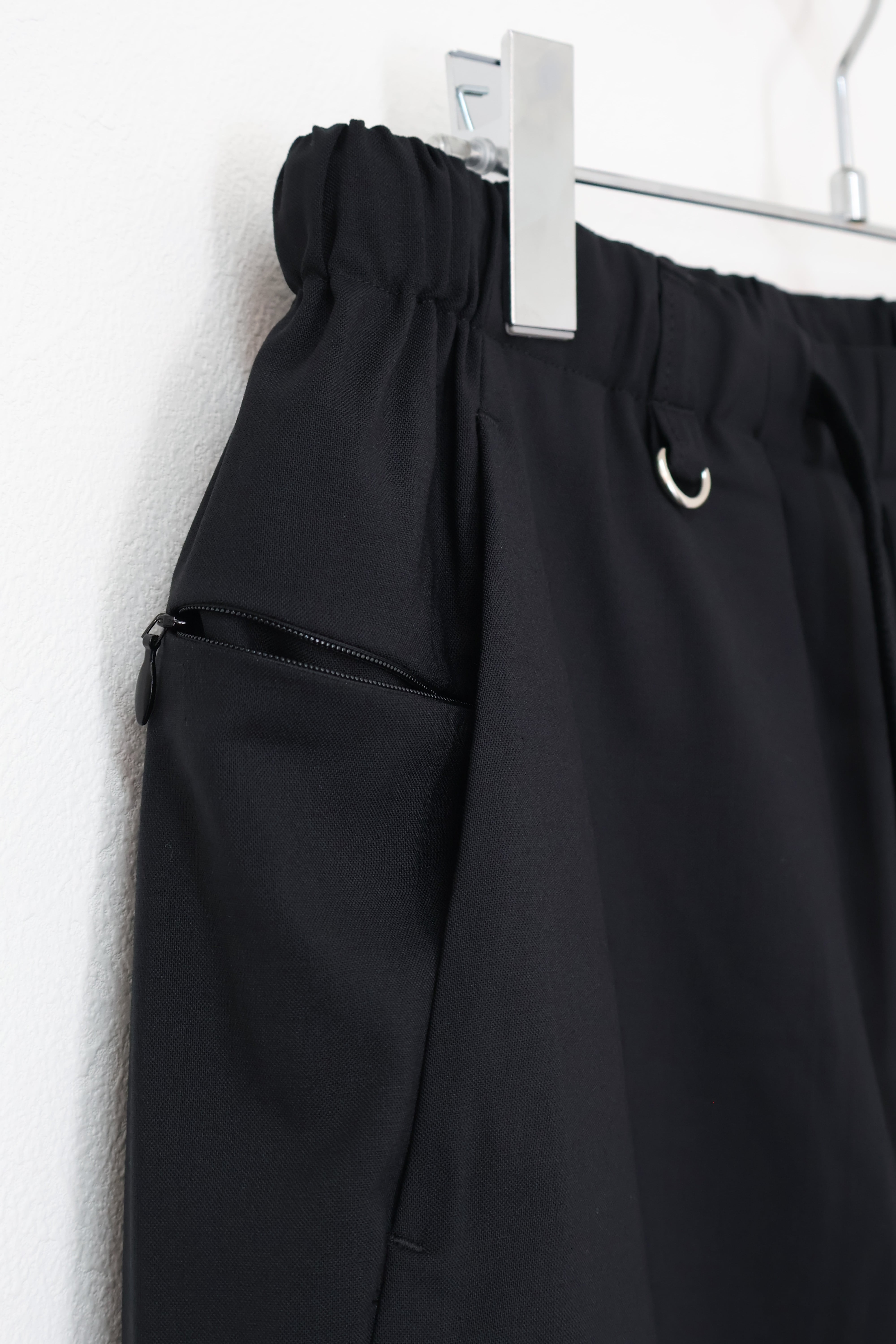 定番展開していたISLE PANTSをアップデートして登場。見頃脇に袴の開きをイメージした三角の切り替えを施し、携帯電話やサングラスなどを収納できるテクニカルポケット配置。シルエットはボリューム感のあるワイドストレート。裾はスピンドルにてシルエットの変化が楽しめます。
