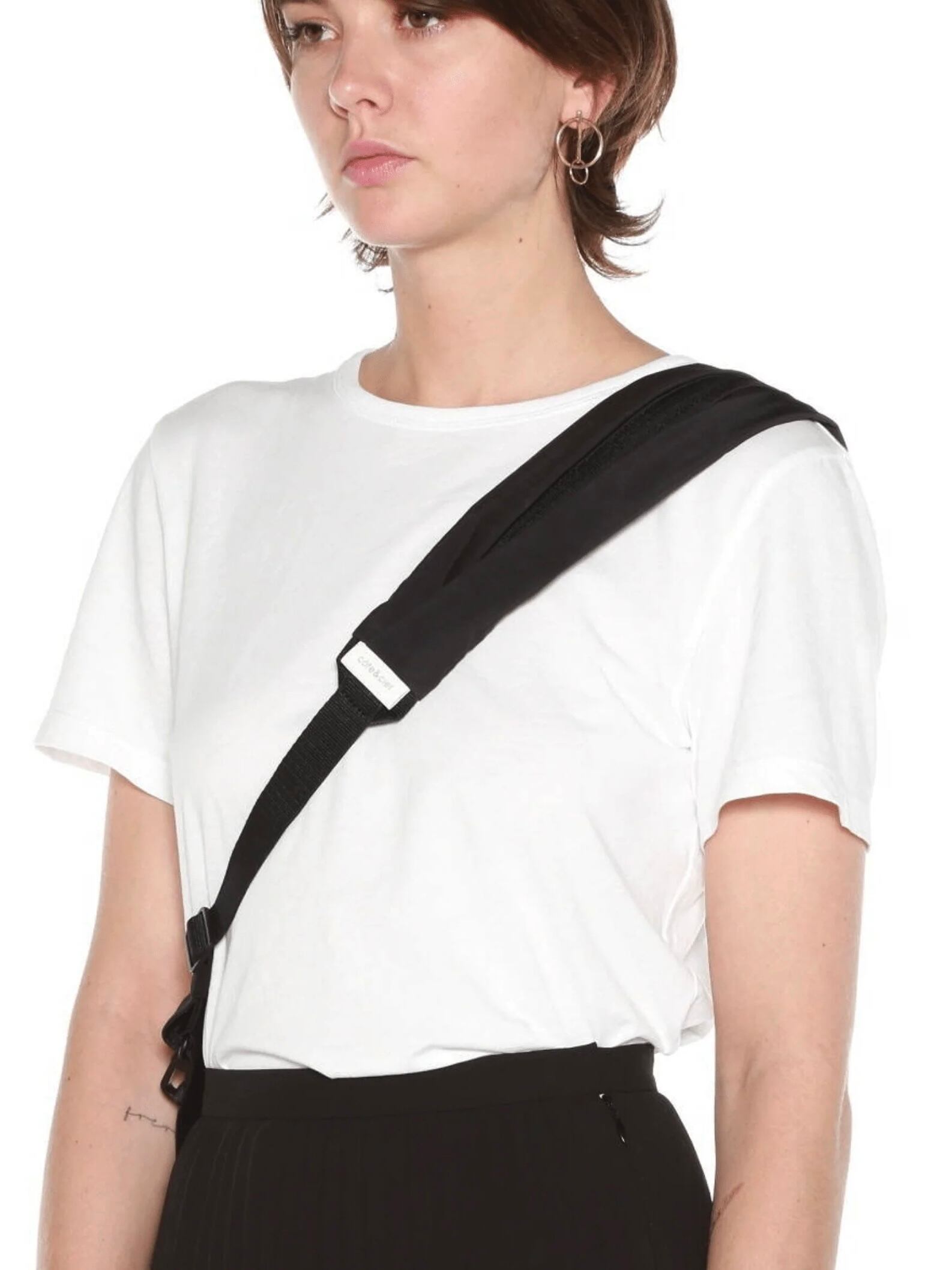 容易な取り外しを可能にするカラビナ式バックルは、他バッグに装着可能なショルダーストラップとの2WAYを実現しています。ファスナー式の収納スペースは、生地を重ねた内側に配置され、見えない状態にする事で安全性への配慮がされています。また500mlペットボトルを持ち運ぶ事が出来る収納容量が確保されている点は魅力的です。バッグとしてもアクセサリーとしても活躍出来る優秀なデザインです。
