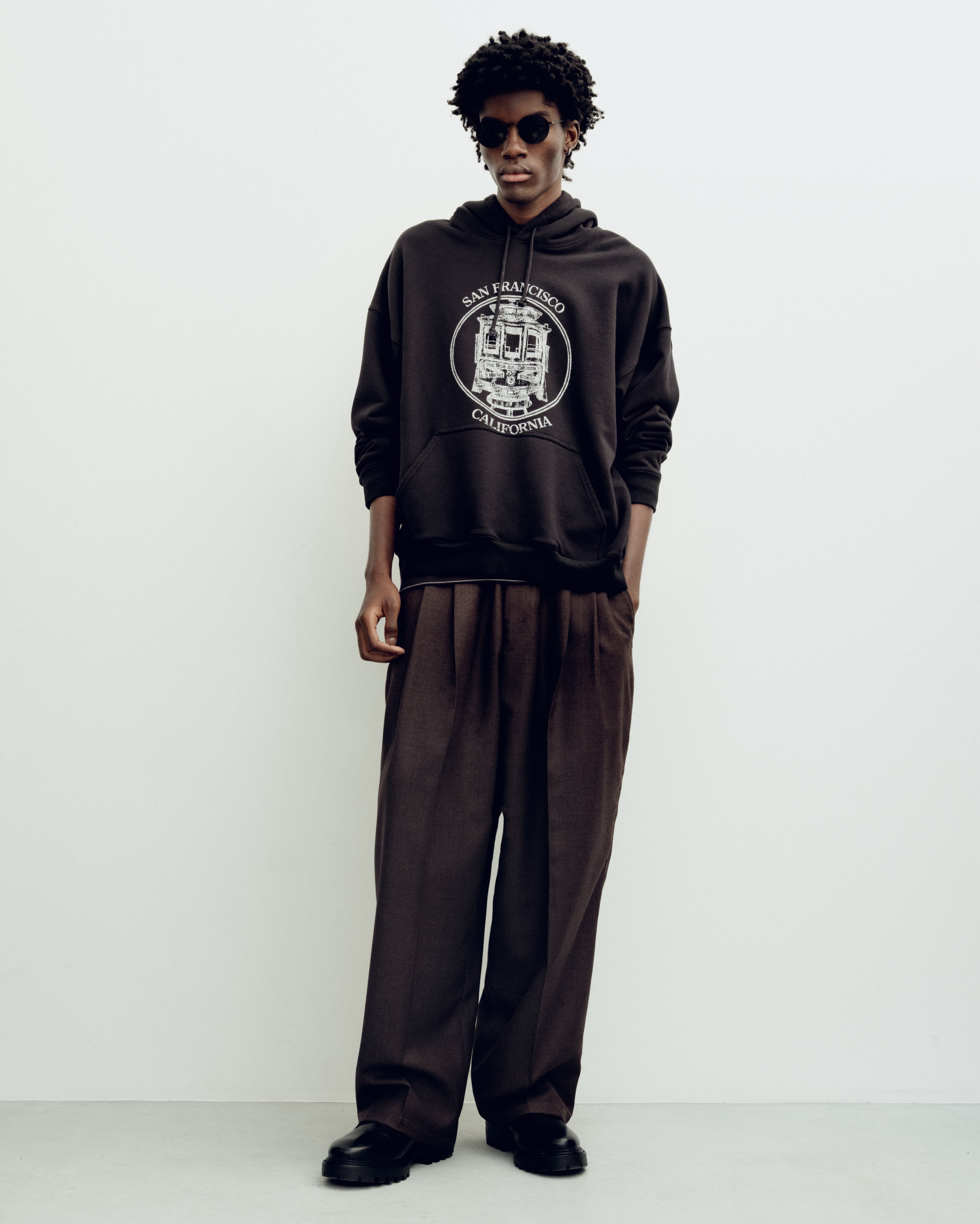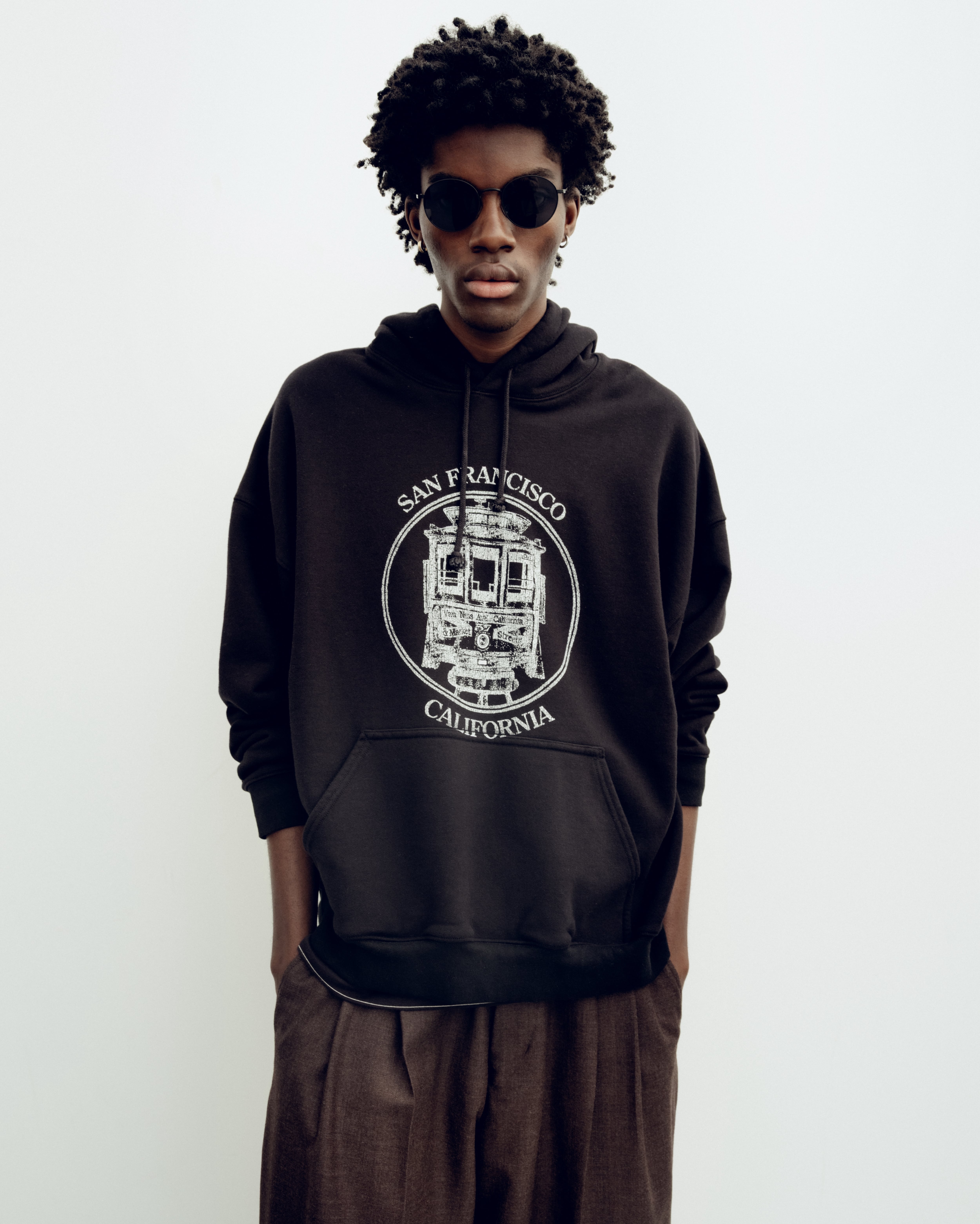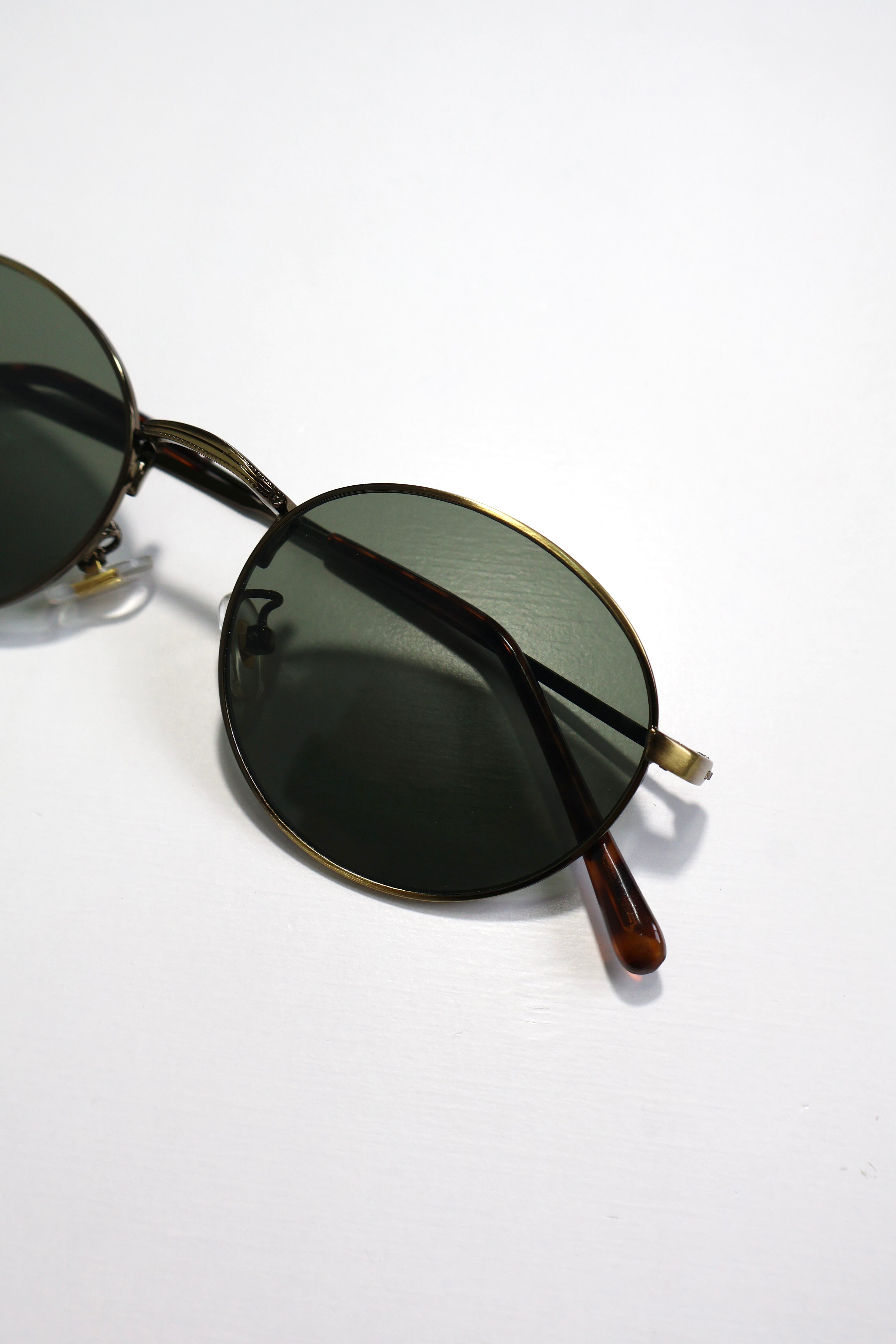 90年代イタリアンモードシーンを筆頭に流行したオーバルフレームサングラス。繊細なフレームとシックな色合いが特徴で着用しやすくコーディネートに馴染みやすいアイテム。