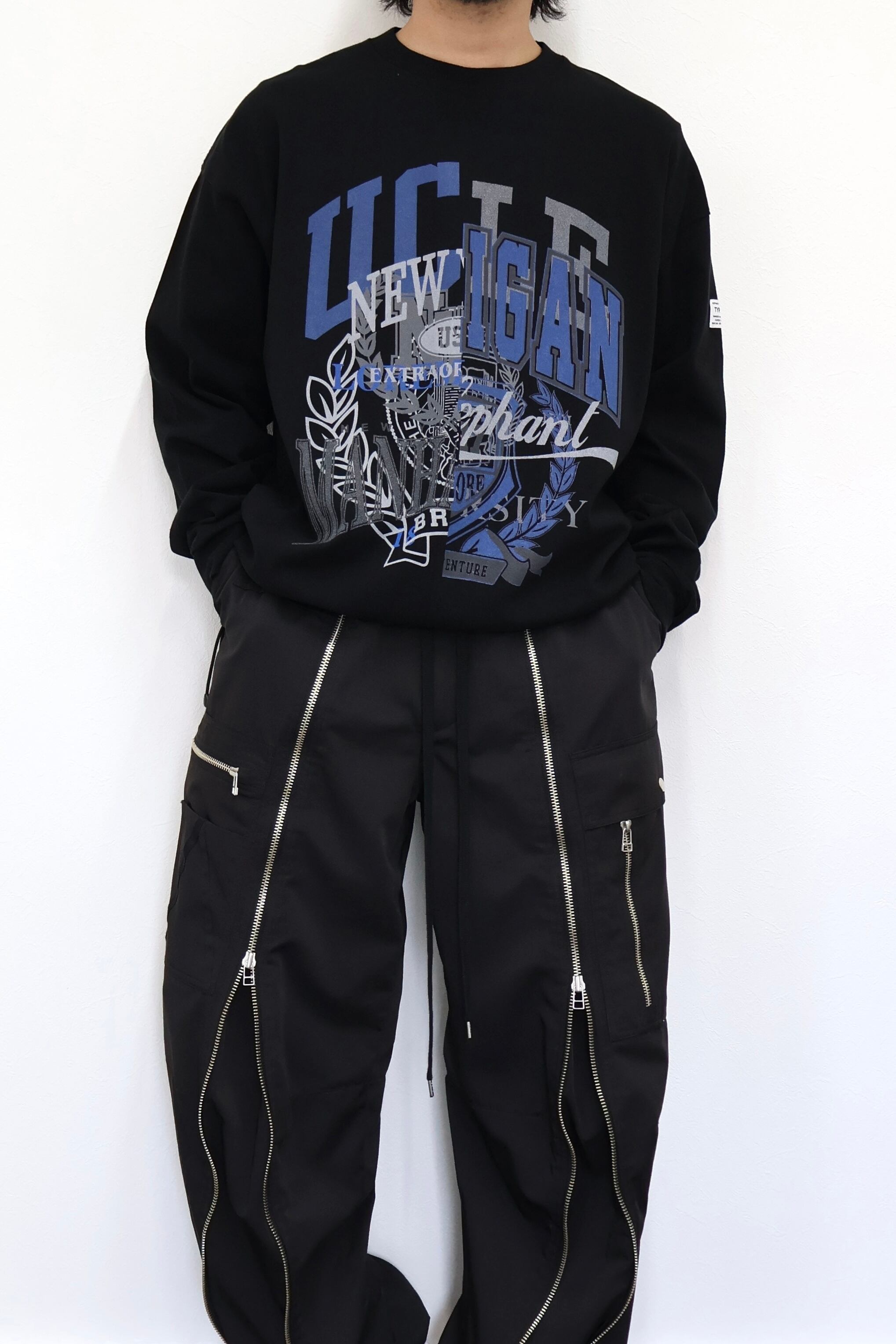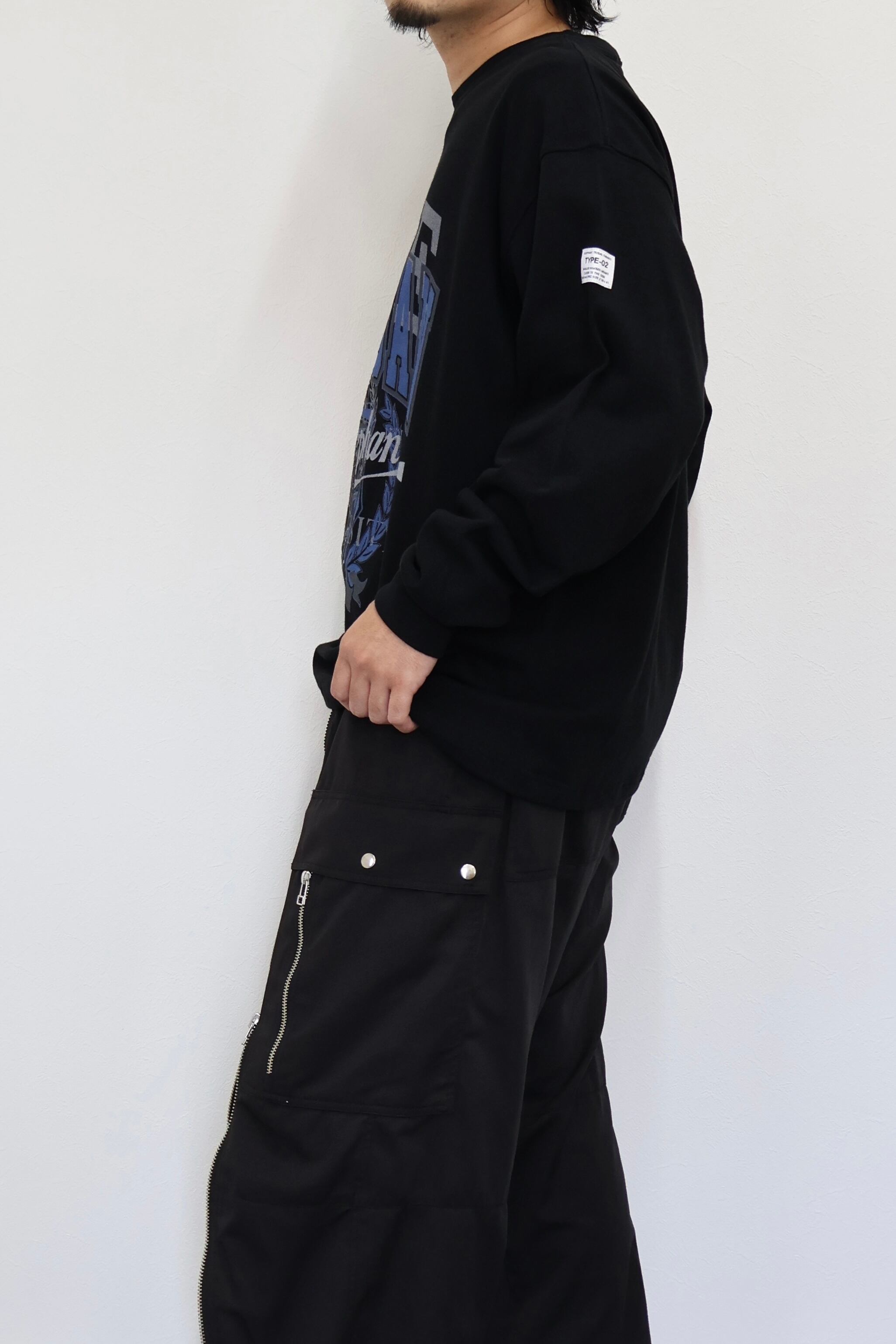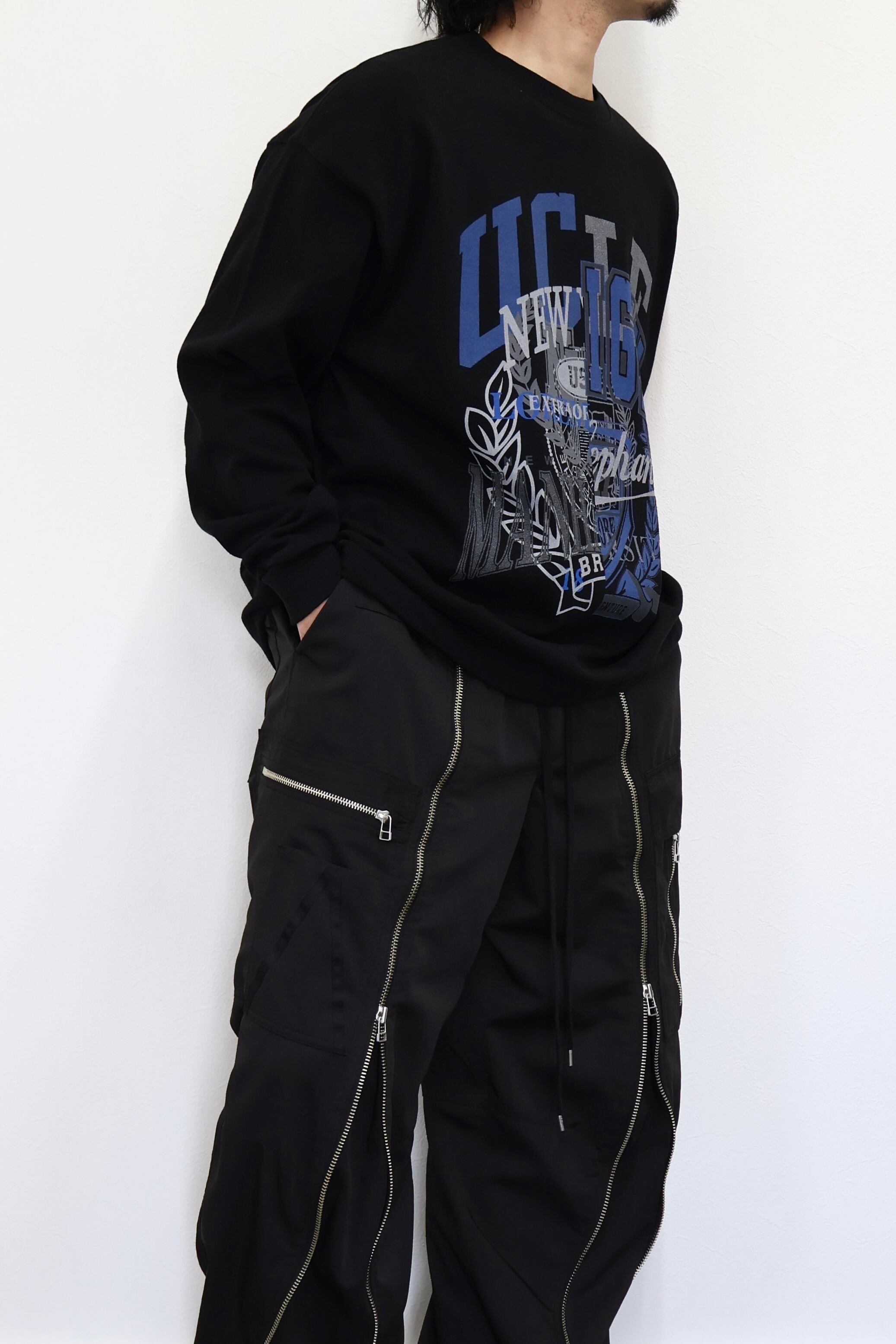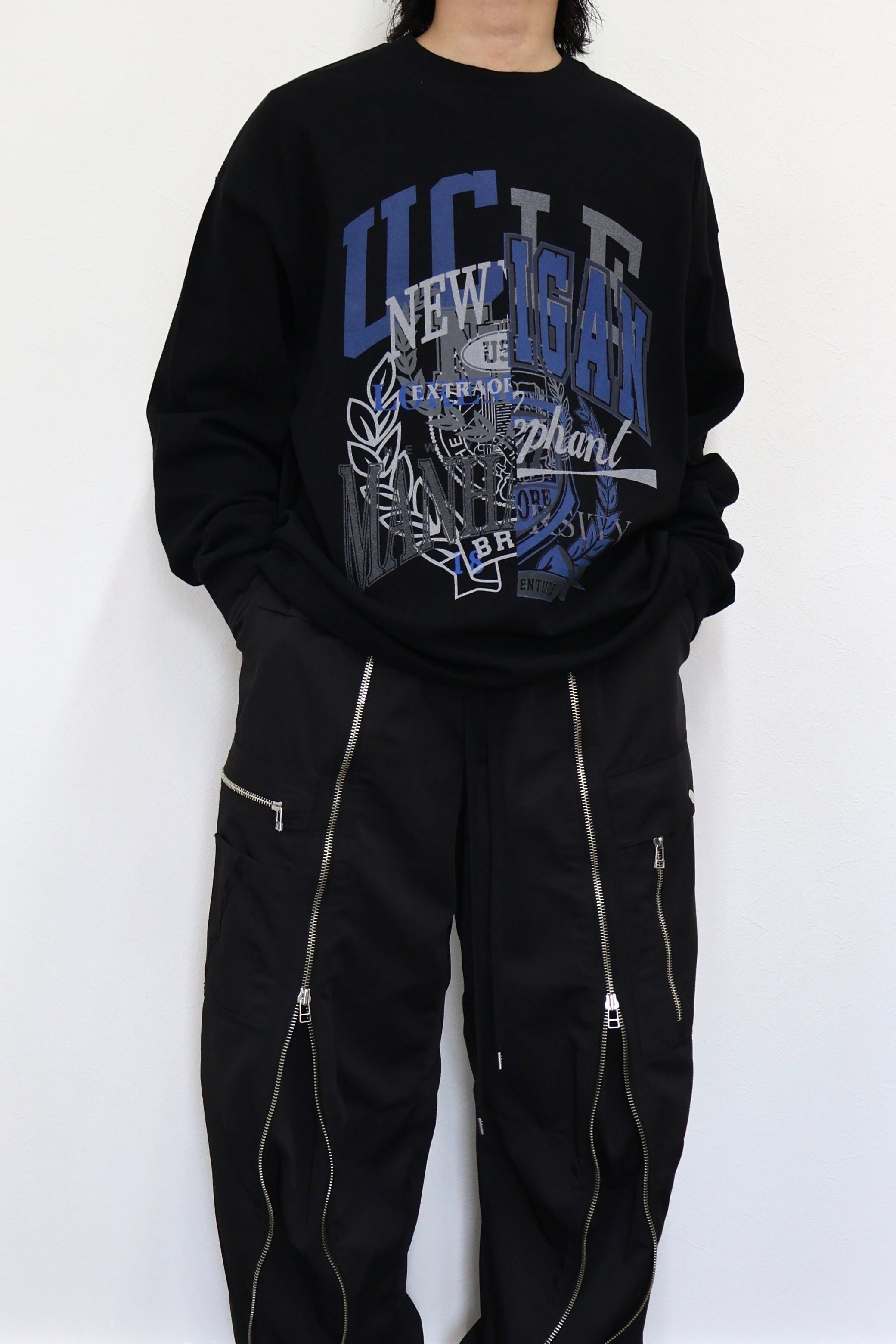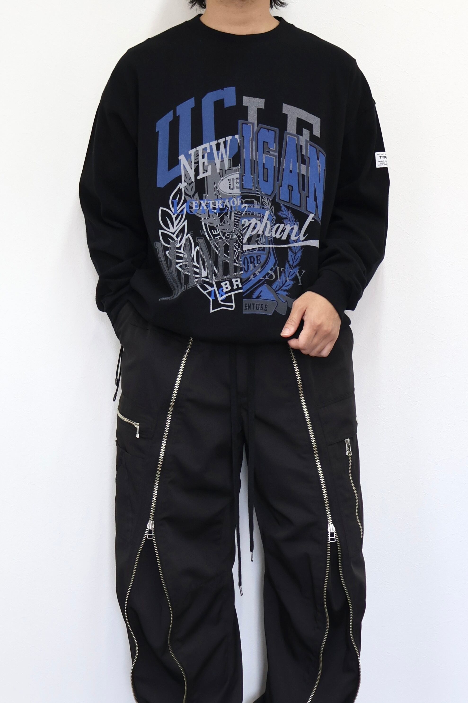 多種類のカレッジグラフィックをのせたグラフィック Long T。ボディには強撚糸を使用したシャリ感のあるヘビーオンスな生地を採用。身幅にゆとりを持たせたボックスシルエット。裾部分にはアジャスター付きドローコードを配置しシルエット変更が可能。