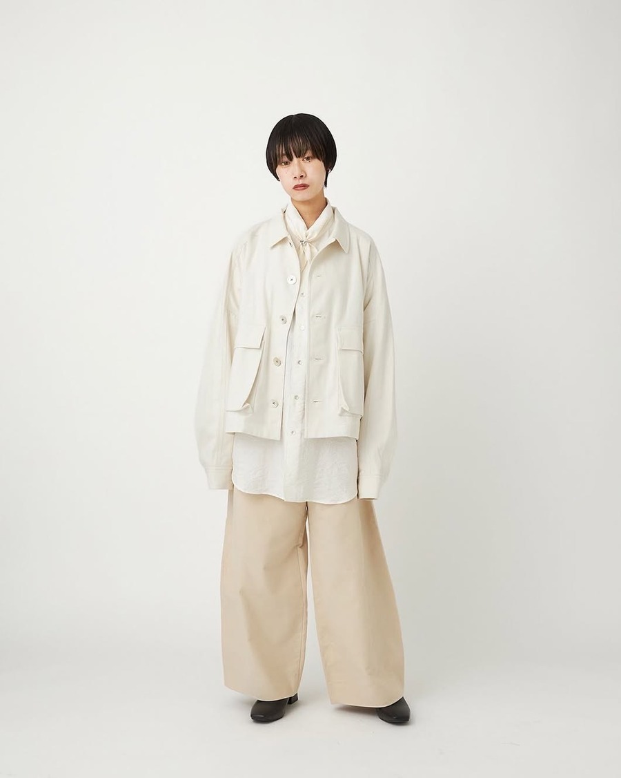 オーセンティックな綾立ちの良いカツラギに両面起毛を施した優しいクラシカルな風合いが魅力のブルゾン。身幅を広くとり着丈をショート丈に設定したボックス仕様。ブランドを象徴するメタルボタンを使用。