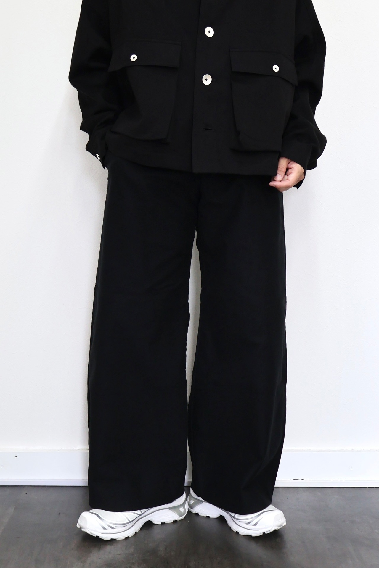 パターンの立体感によってコーディネートを存分に楽しめるシルエットが特徴のAXIS定番ワイドパンツ。甘撚りの錦糸を使って表面変化に富んだ組織で折り上げたドビークロスに毛足の長い起毛を施すことでしなやかな柔らかさと秋冬らしいウォーム感、特徴的な表面感を持ち合わせた仕上がりになっています。