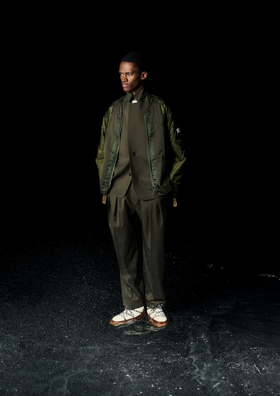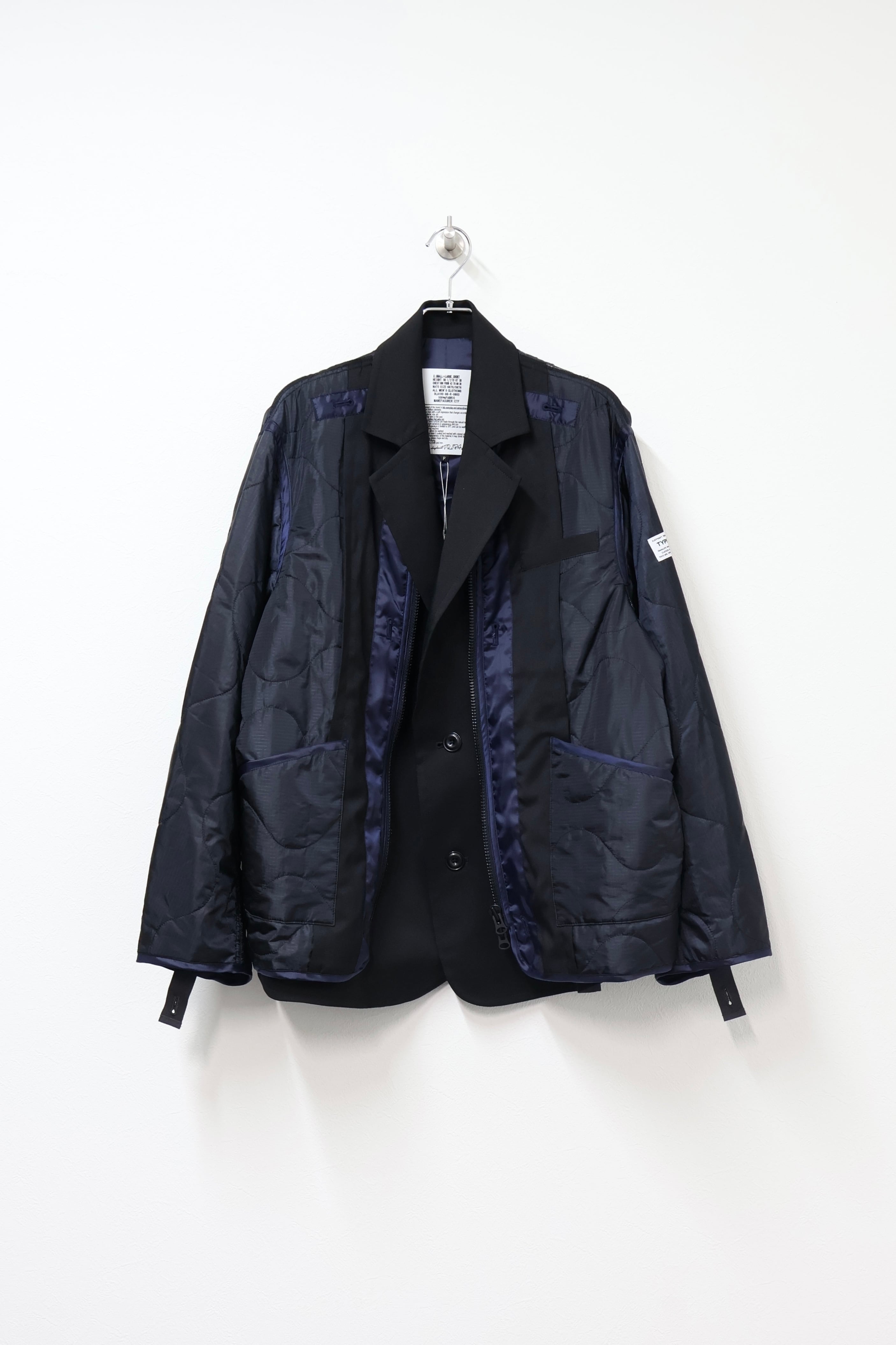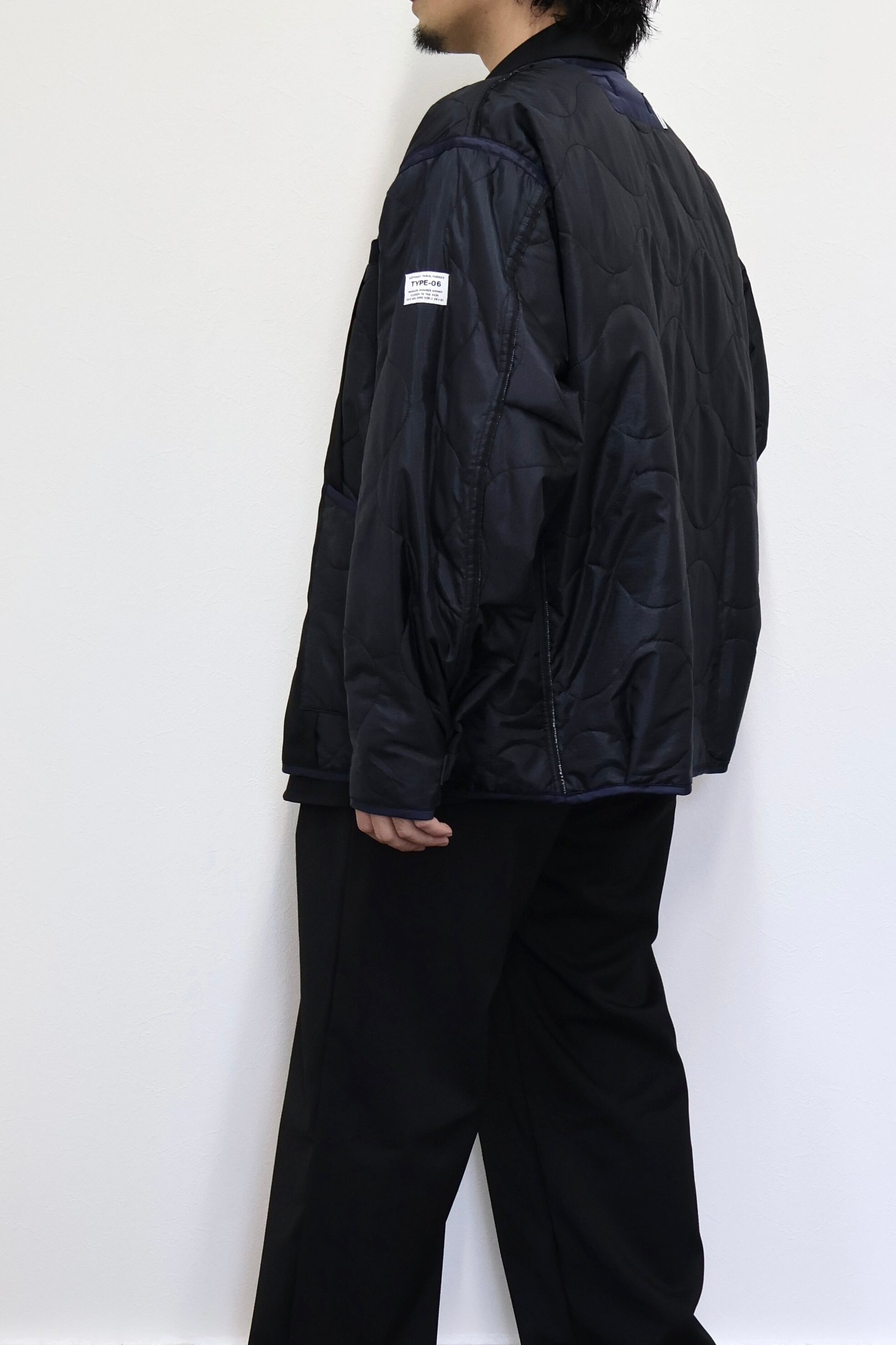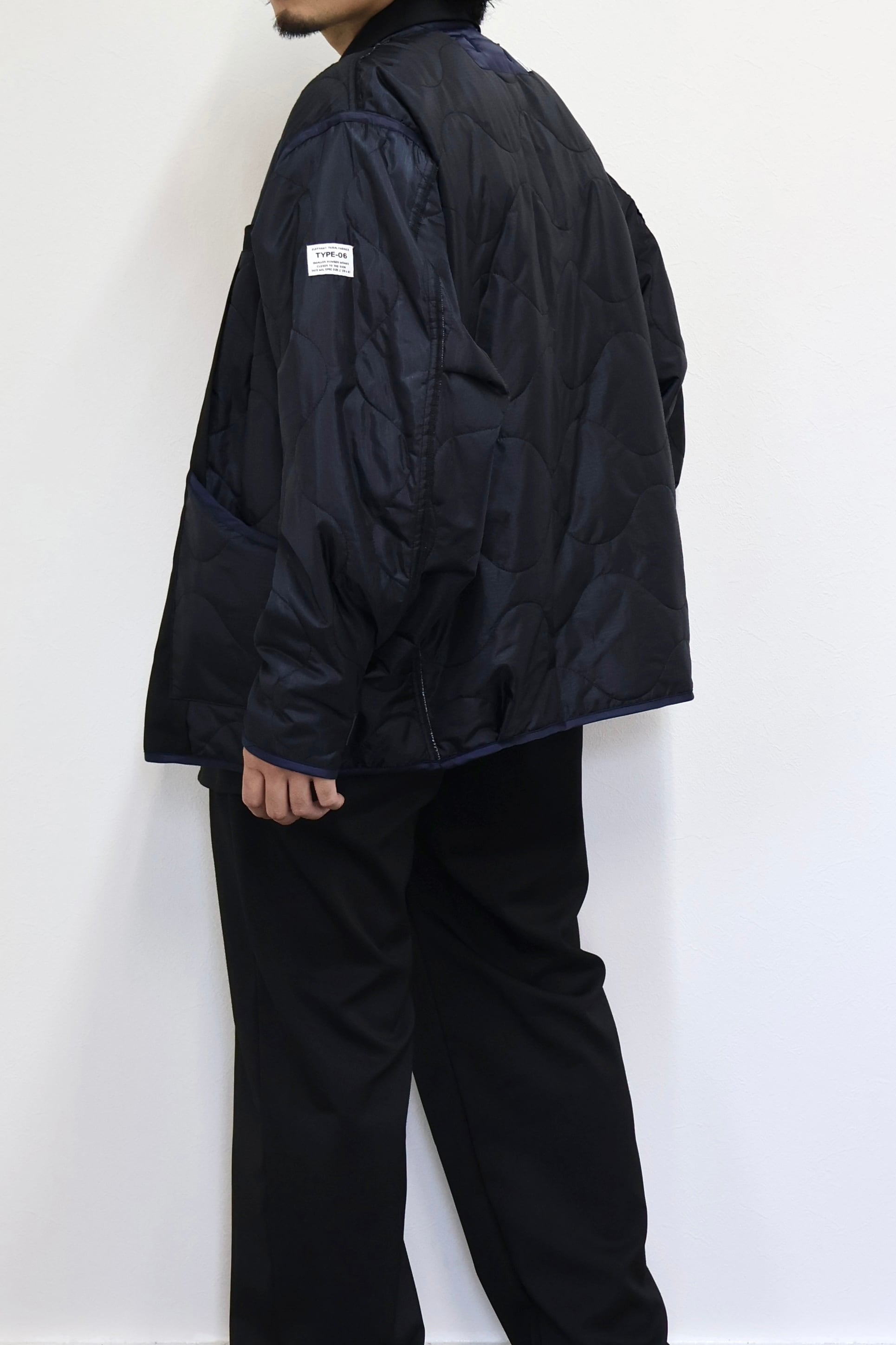 M65フィッシュテールコートのライナーとテーラードジャケットをドッキングしたアイテム。ただ切り替えるのではなく折り重なるように2着を合わせることで複雑でより立体的な見え方になる様パターンメイク。キルティングライナーには着ぶくれしない用、非常に薄くて軽量な3M社のThinsulate®EXを採用。保温性を上げる為に裏地には高密度のツイル生地を使用。襟を収納しファスナーで開閉可能。フロント部分にパッチポケット2ヶ所、胸ポケット1ヶ所。袖口はスナップボタンを配置しサイズ調整可能。同生地のFreedom Slacksと合わせてセットアップとして着用頂けます。
