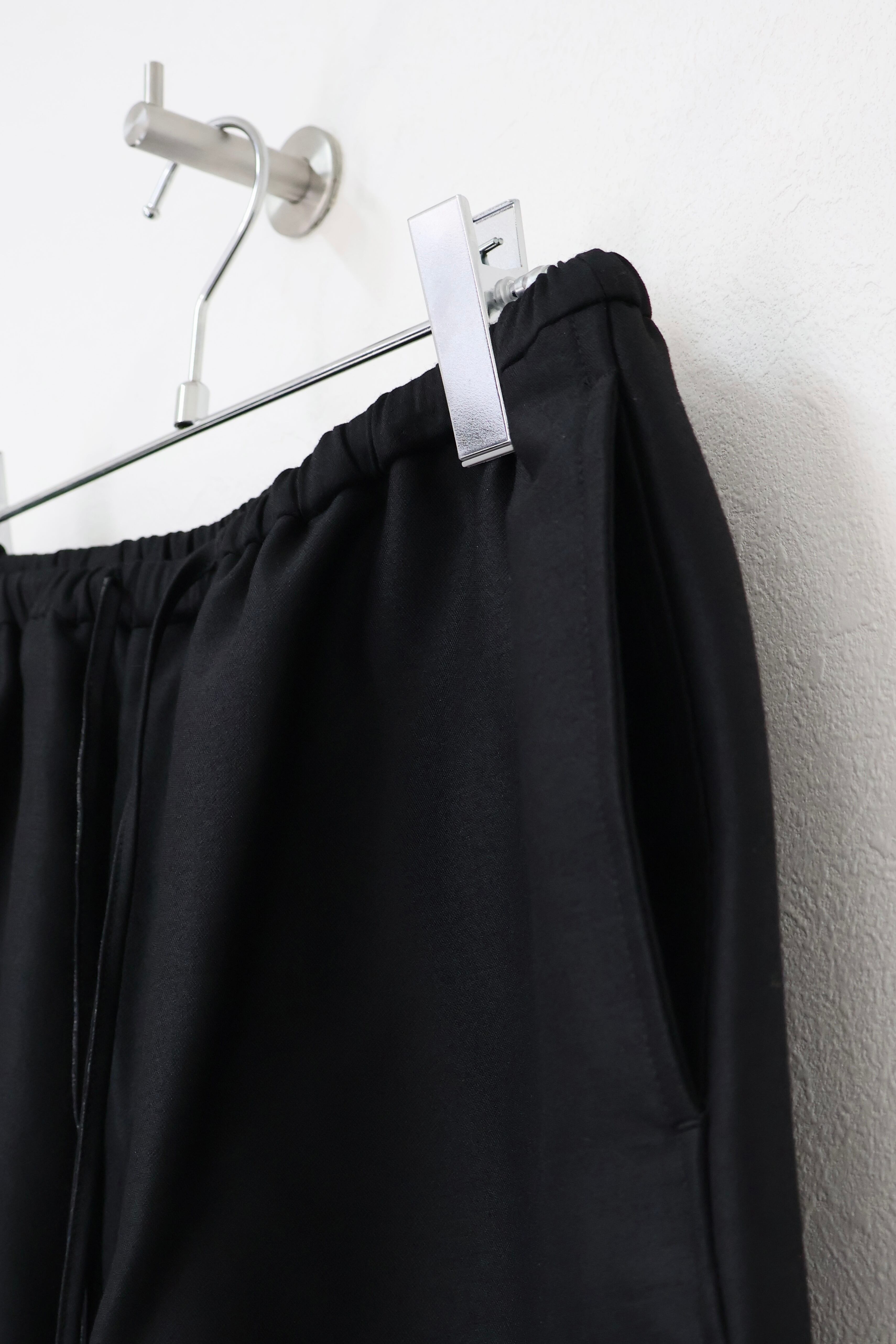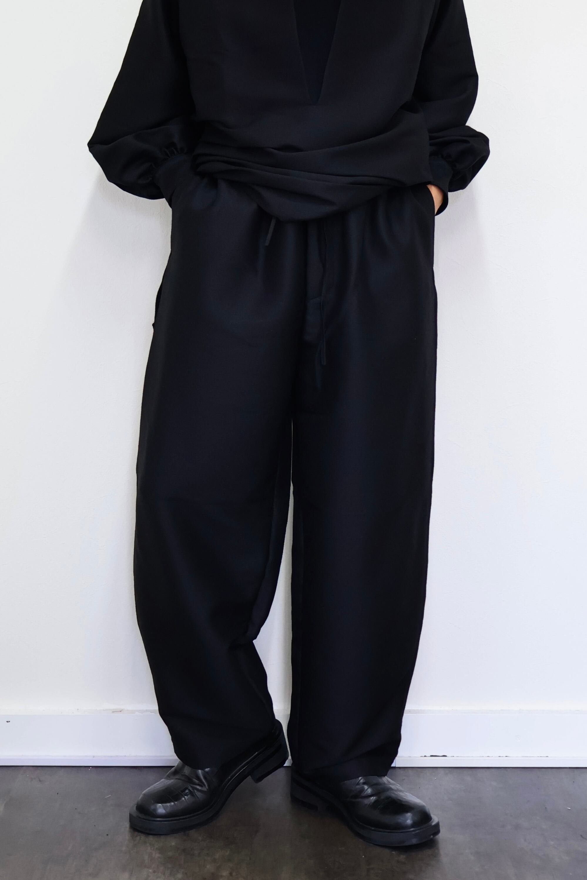 デビューシーズンより展開しているAXISのアイコン的アイテム"Skipper shirts"の同素材のイージーパンツ。柔らかい肌触りで起毛感のある上質なウールシルク素材を使用。美しいドレープ感が魅力。レディースらしいテクニックにメンズテイストを共存させ品の良さに程よいリラックス感を持たせたアイテム。Skipper shirts(CH005)とセットアップで着用可能。