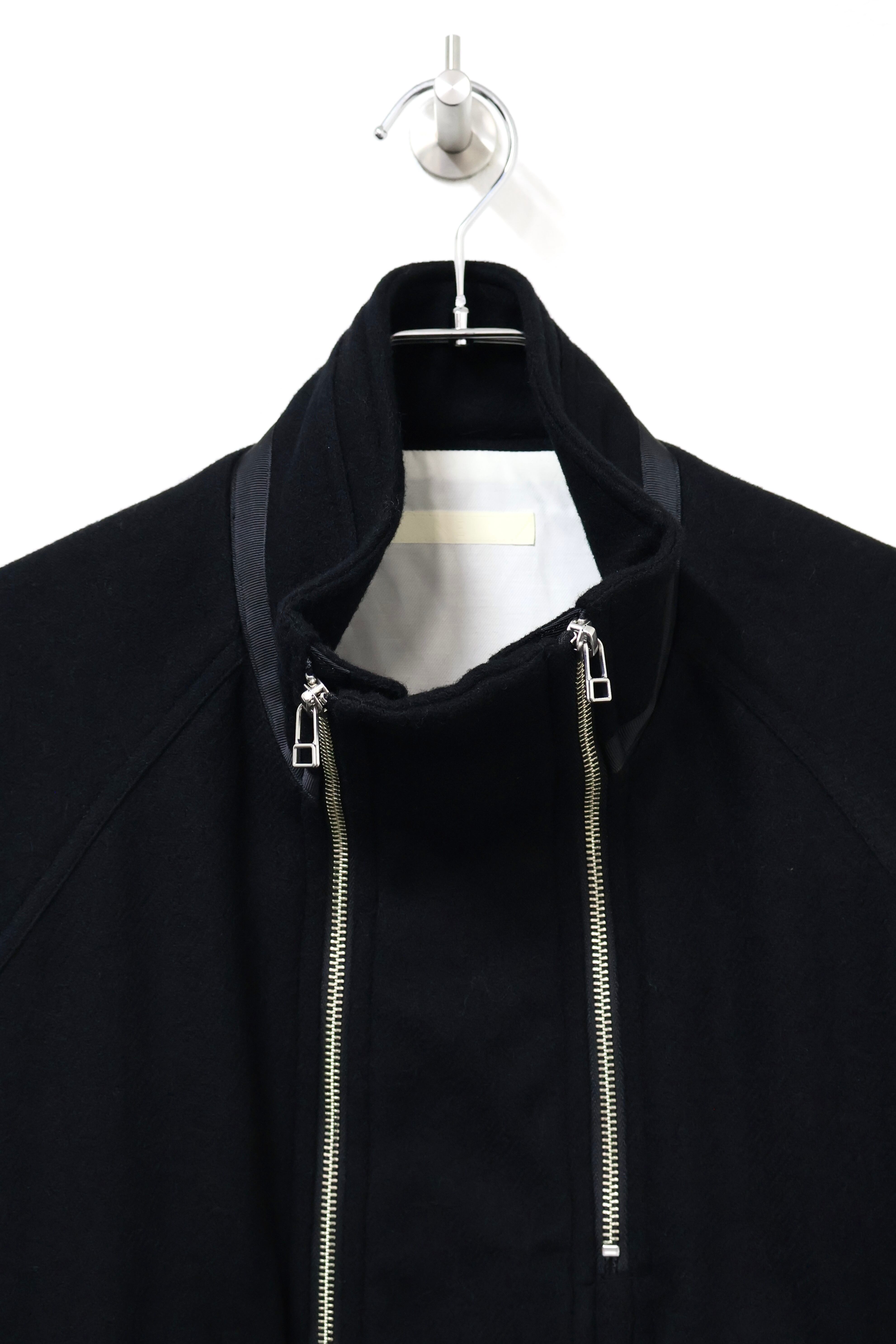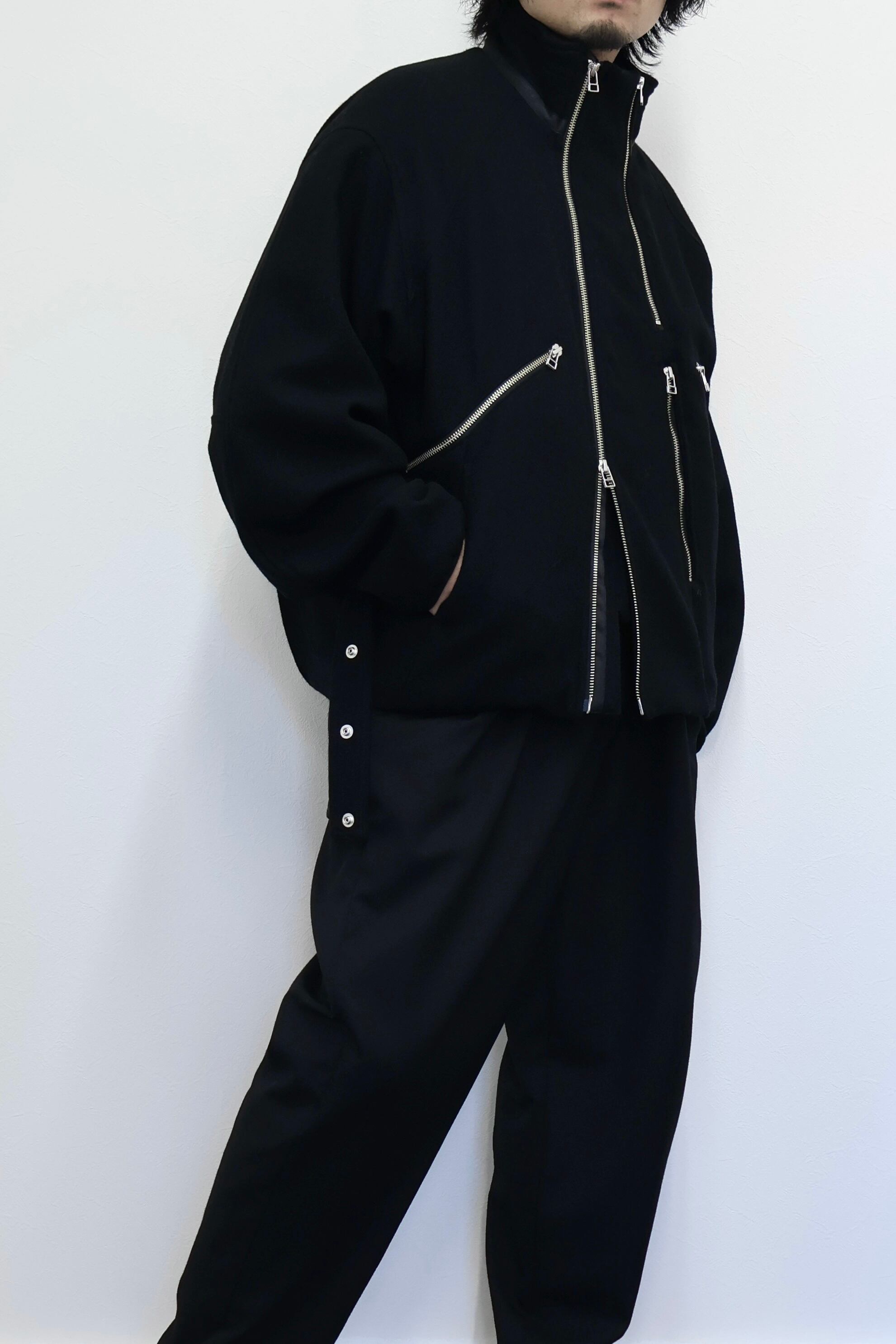 ダブルジップバルーンJKT。90年代のアウトドアウェアをベースにイギリス軍のMK3の要素を組み合わせたウールツイードアイテム。さらにパターンの構造で鮮度が出せるよう裾を折り返したようなバルーンデザイン。ボリュームのある身幅に着丈は短めのボックスシルエット。生地は尾州産地にて織り上げた紡毛ツイード素材使用。ウール特有の高級感とシワになりにくく高い保温性が特徴です。裏地にはテーラードジャケットに使用するキュプラコットンのフランス綾。付属類は金属素材を使用しモダンな印象に。