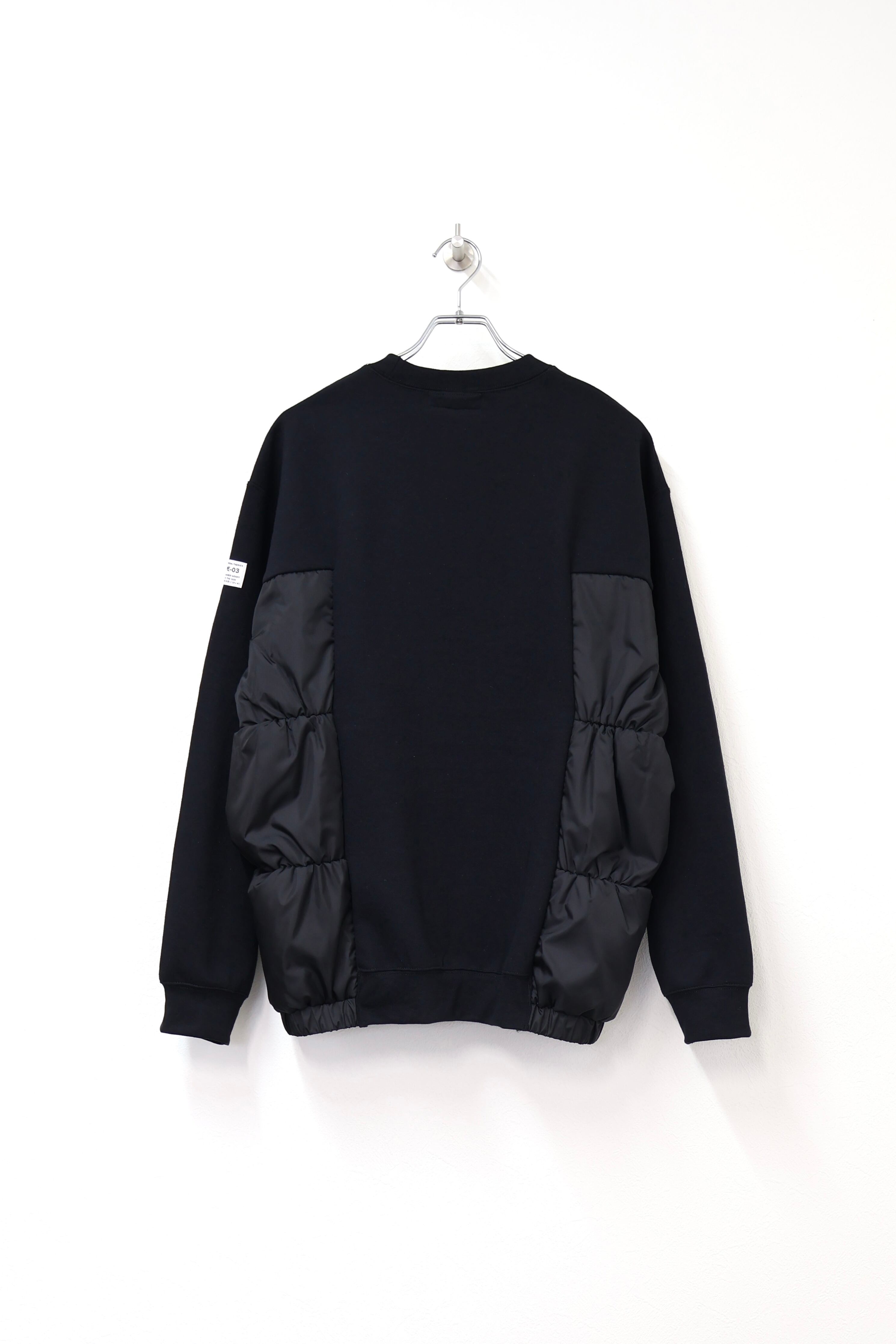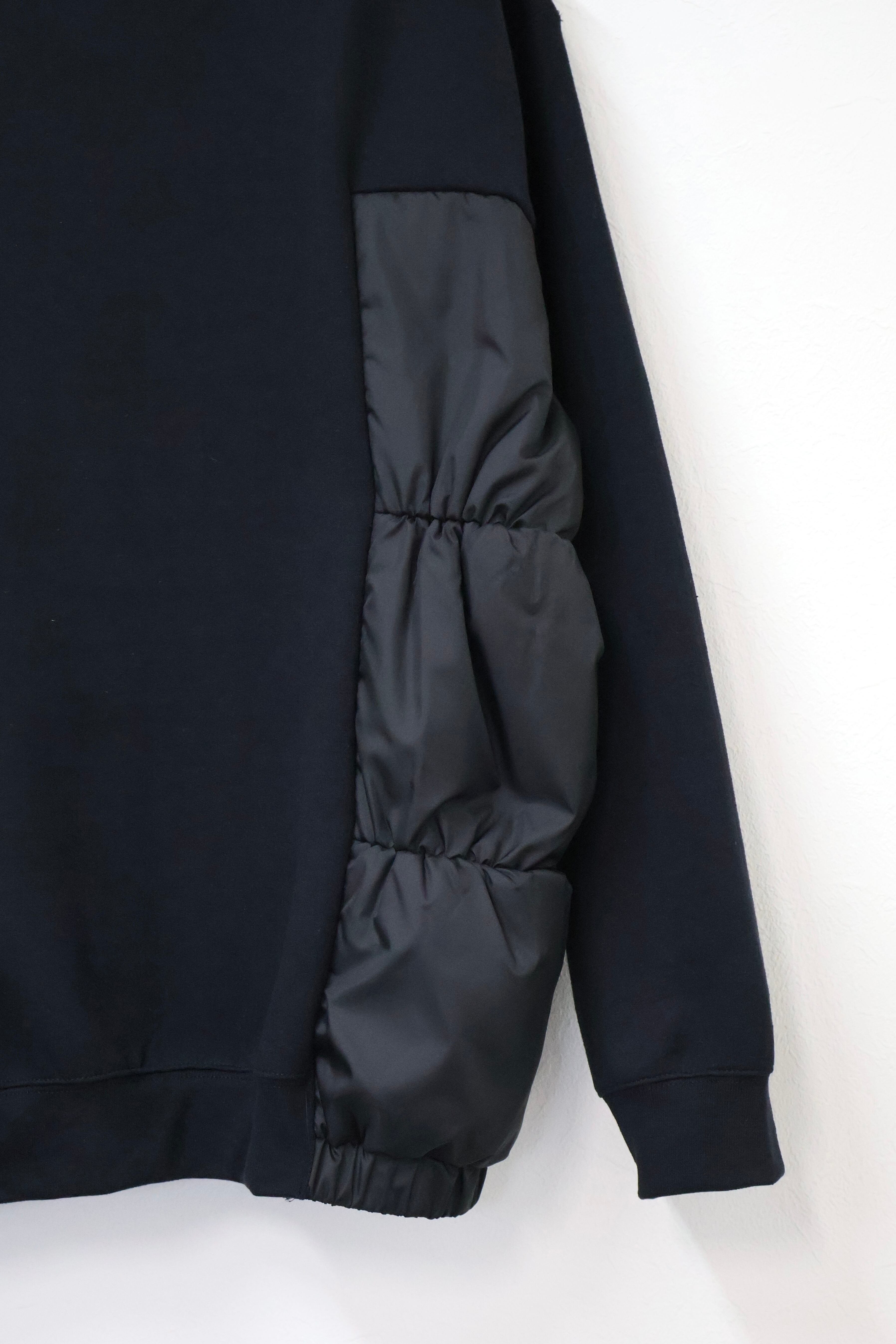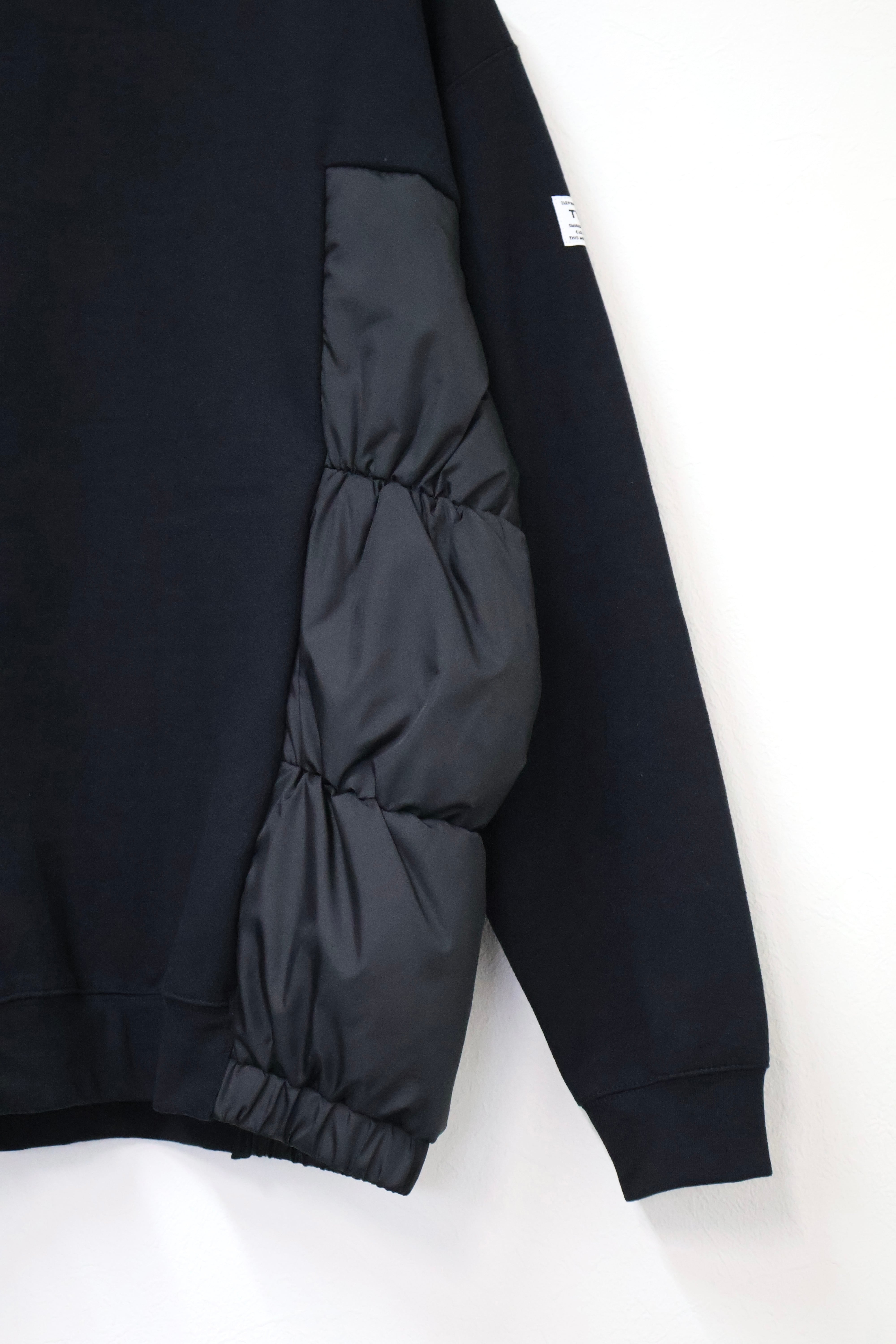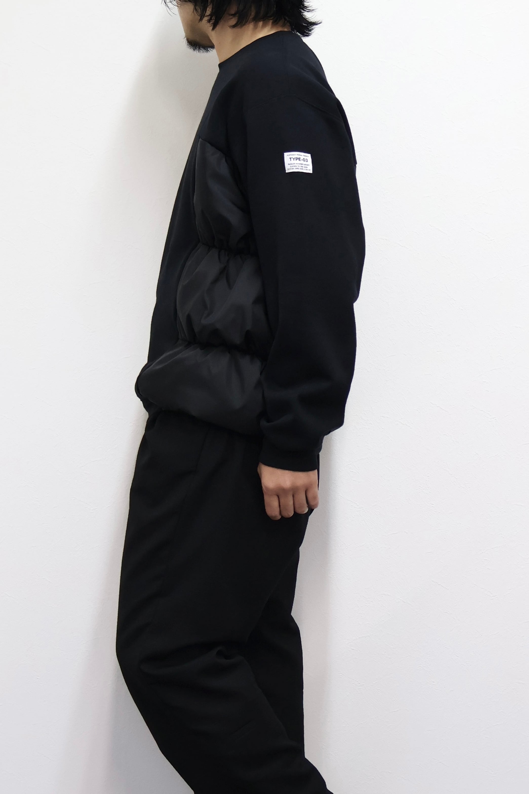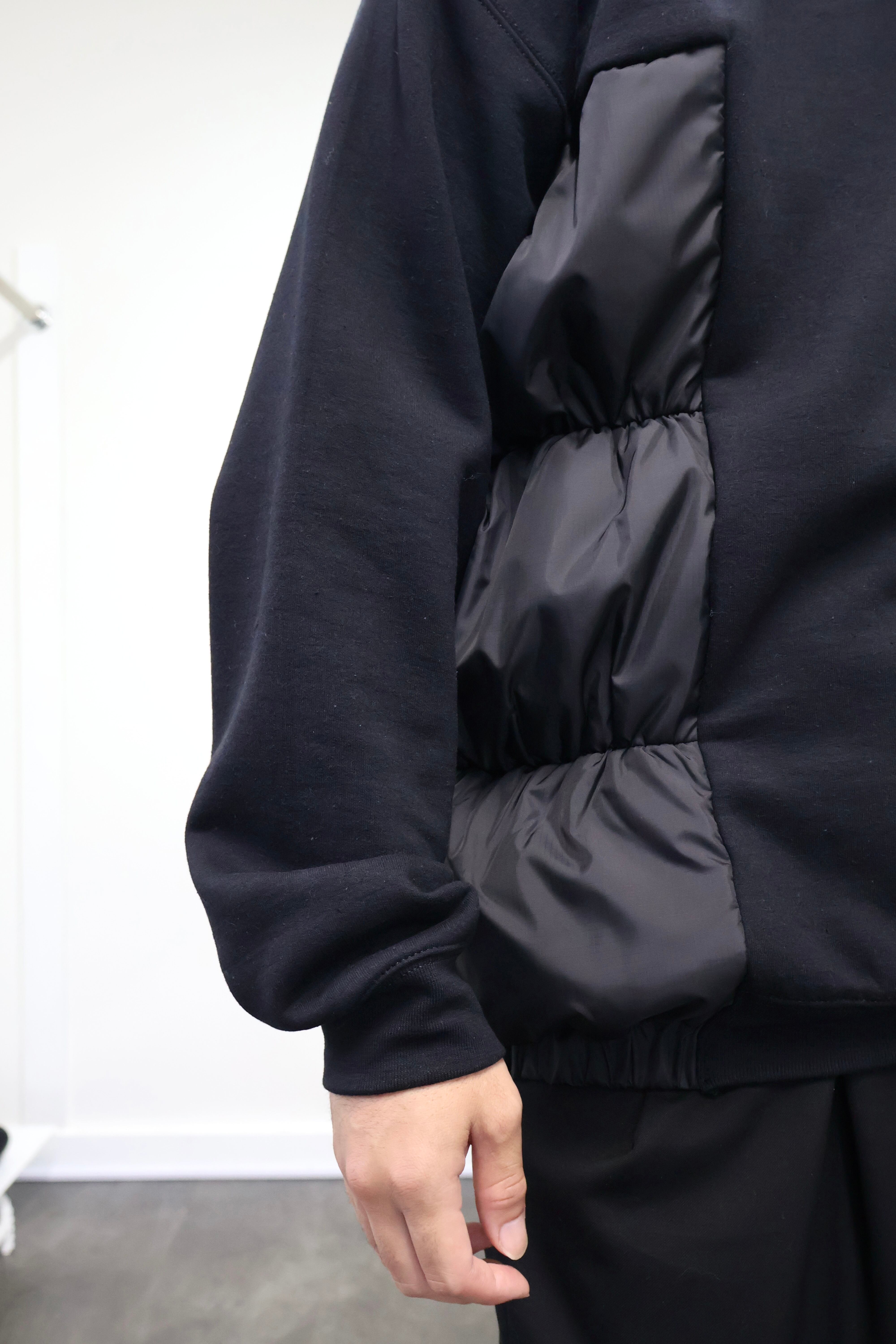 パファージャケットと裏起毛クルーネックスウェットをドッキングしたアイテム。