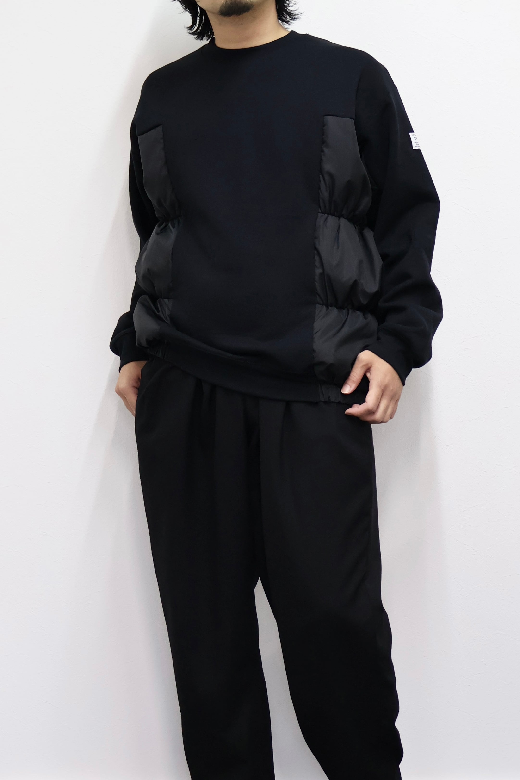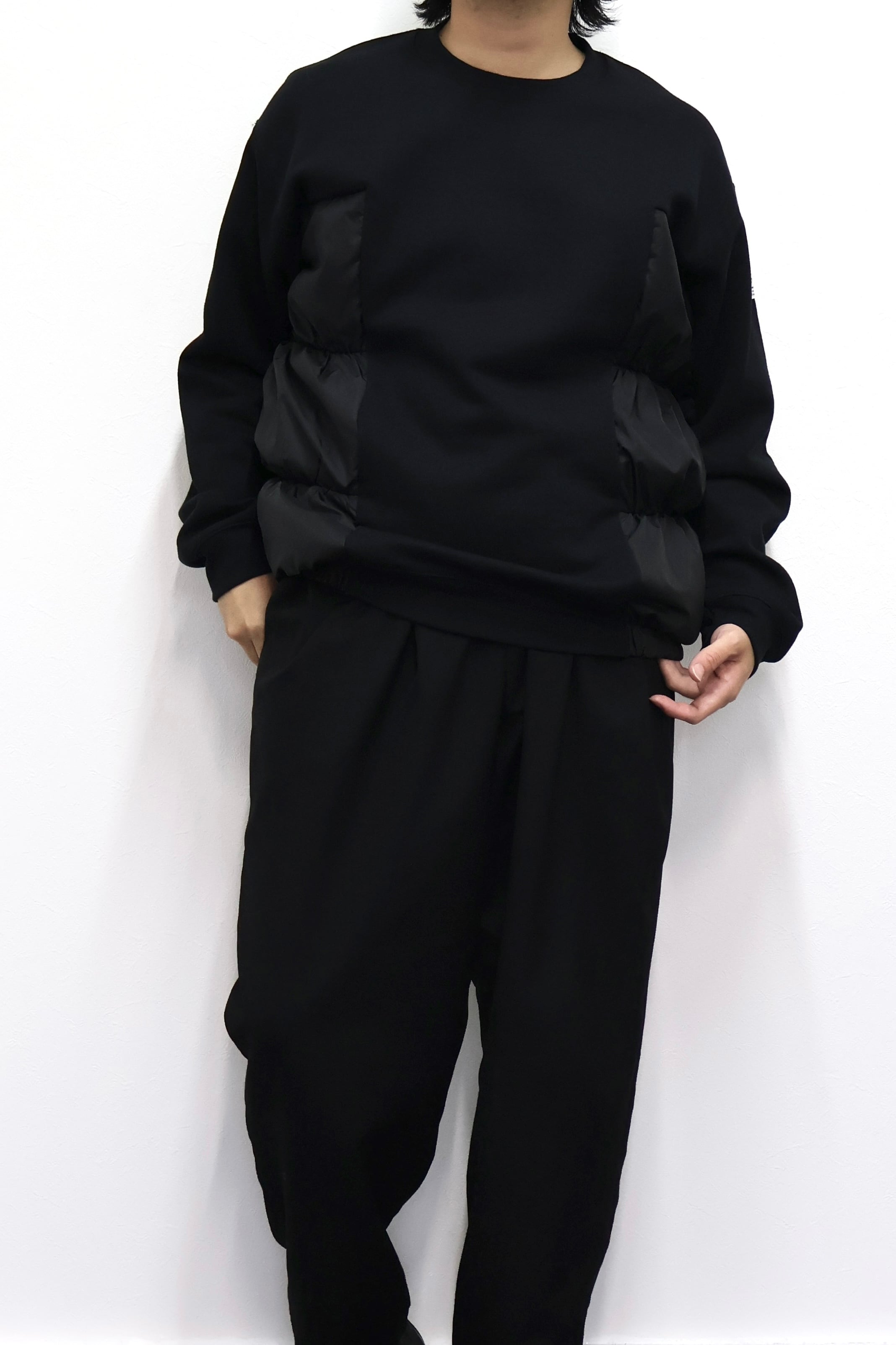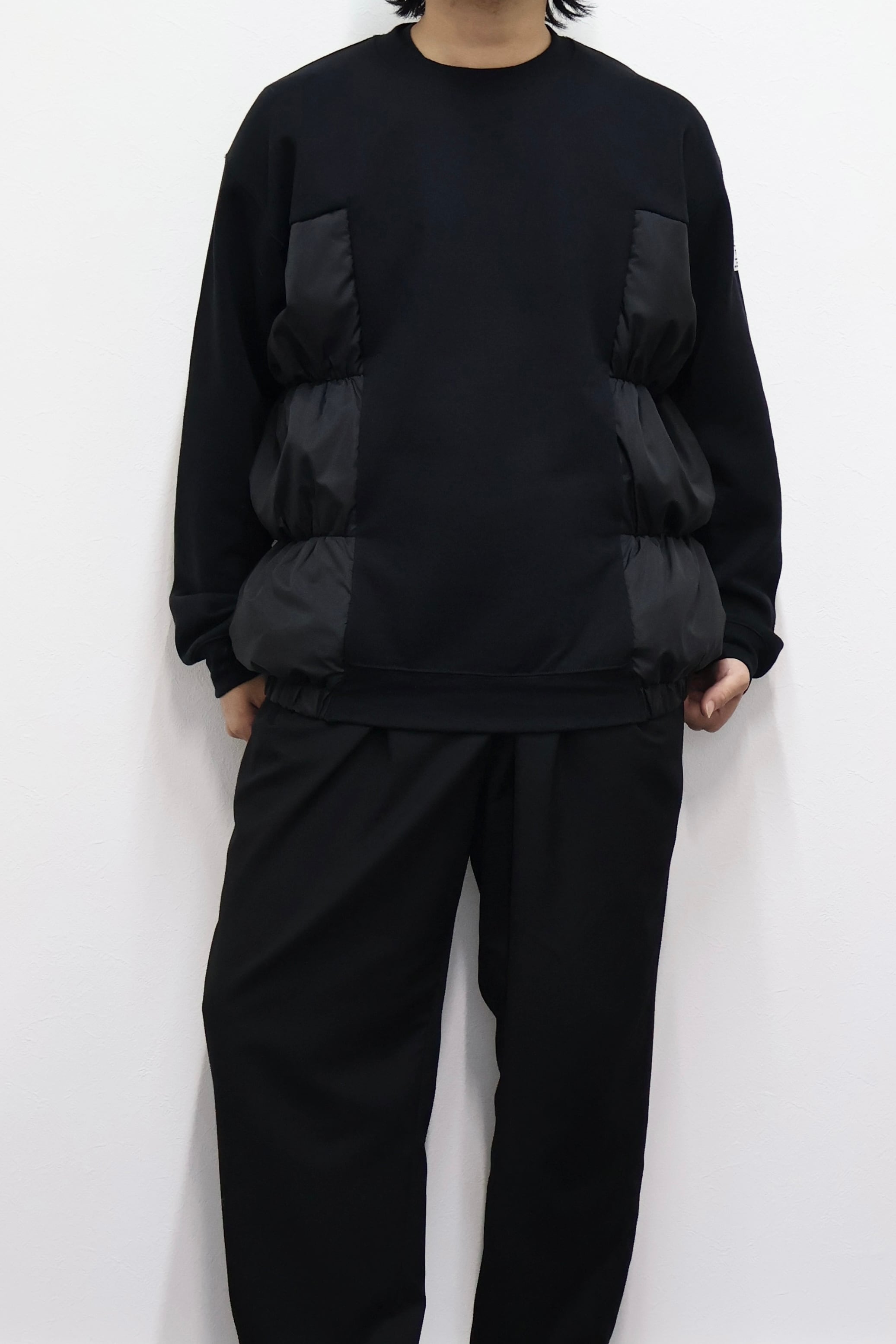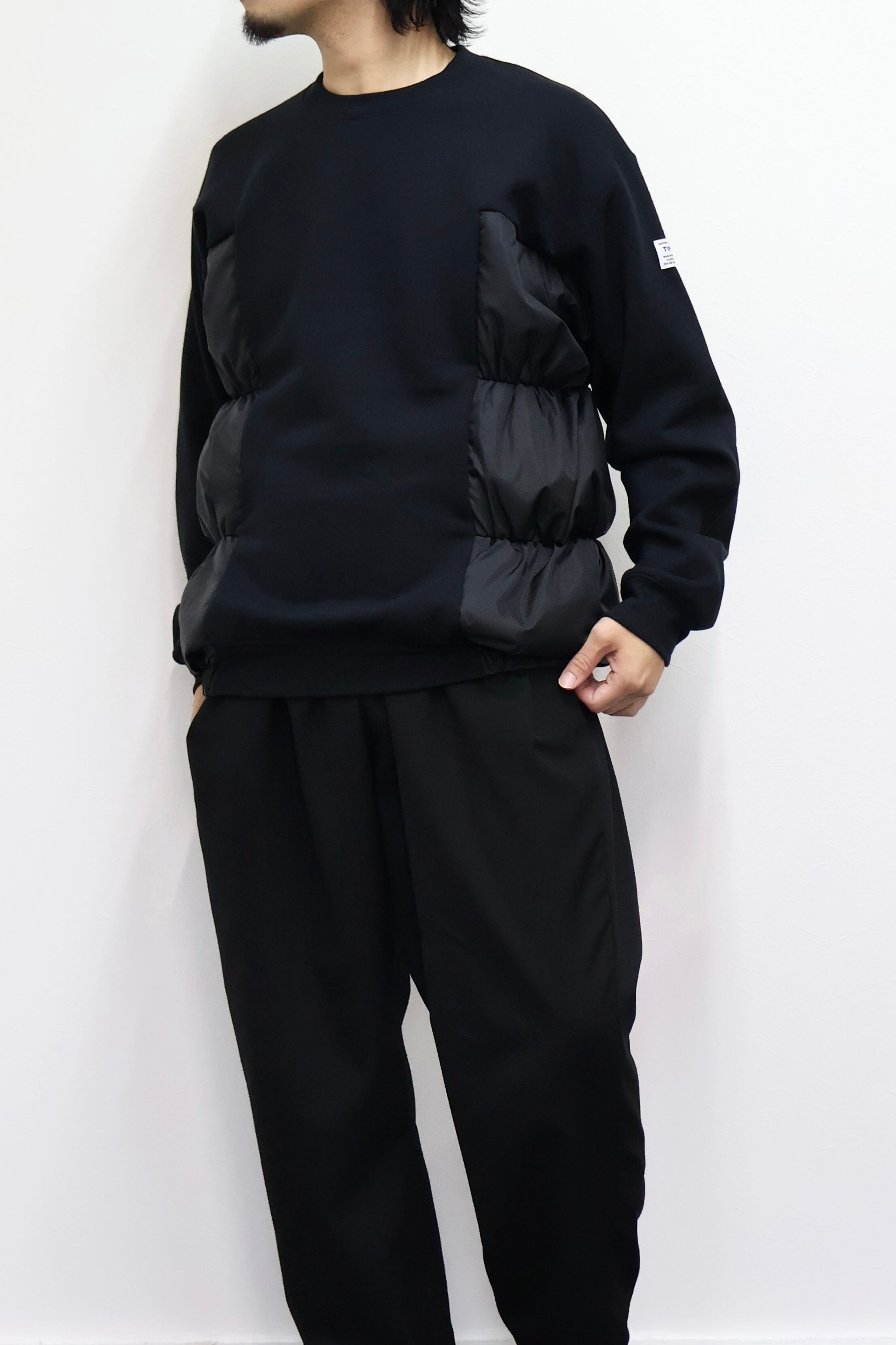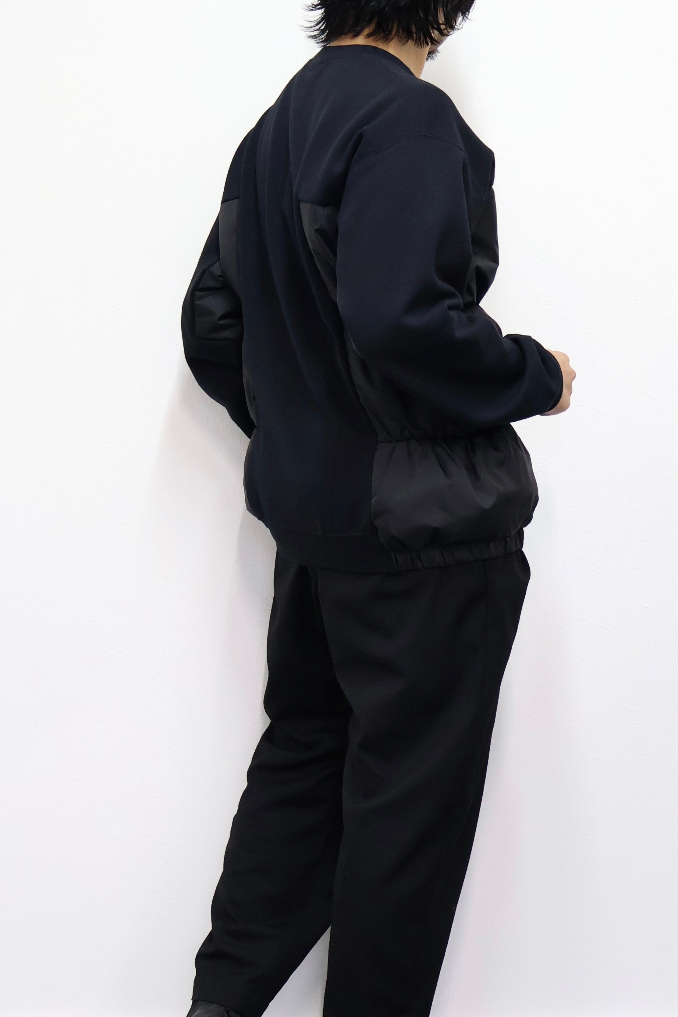 パファージャケットと裏起毛クルーネックスウェットをドッキングしたアイテム。