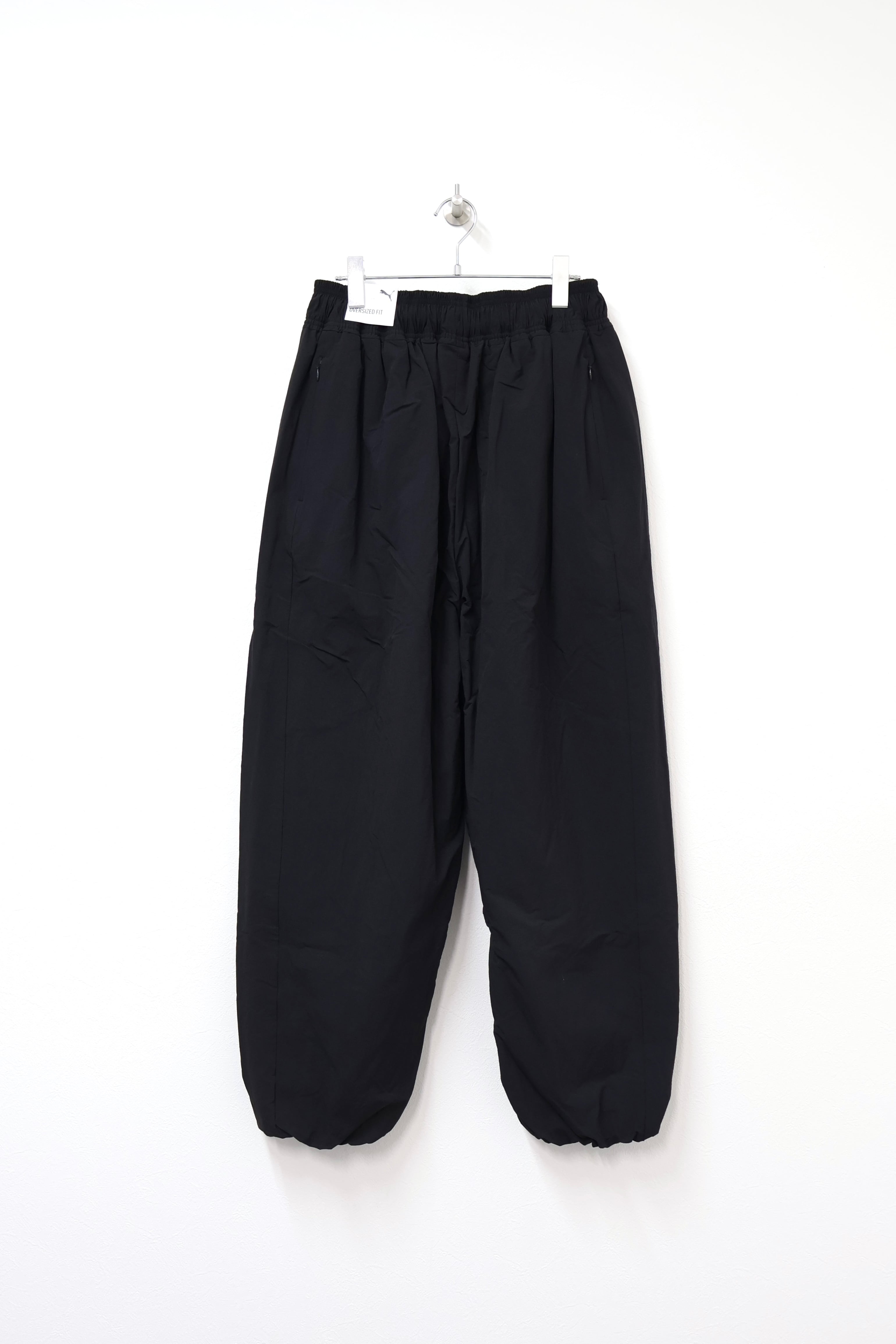 PUMAとのコラボレーションアイテム。パルクールプレイヤーが着用するボリューミーなボトムスに着想を得たパンツ。裏地に温かみのあるフリースを使用。通気性をもたらすベンチレーション仕様のポケットを前後に配置。左前にPUMAのプリント。PUMA Drifter Hoodieとセットアップで着用可能。