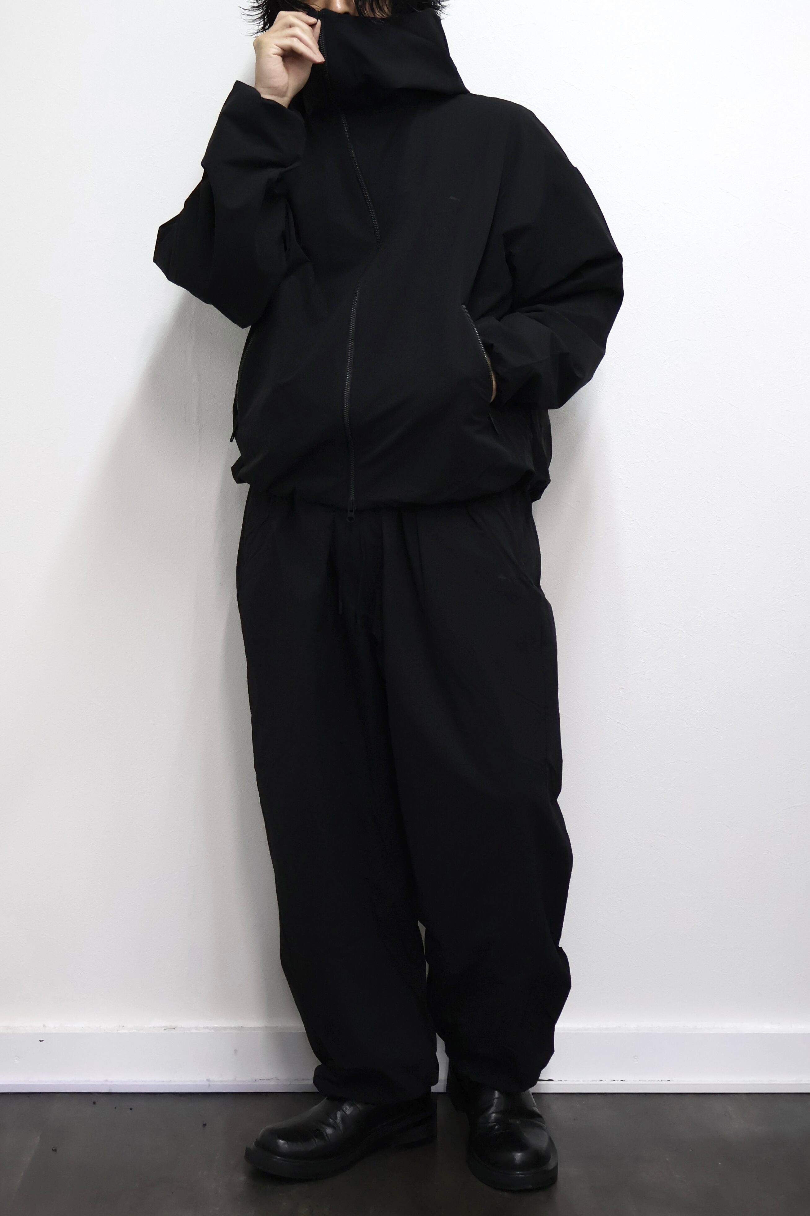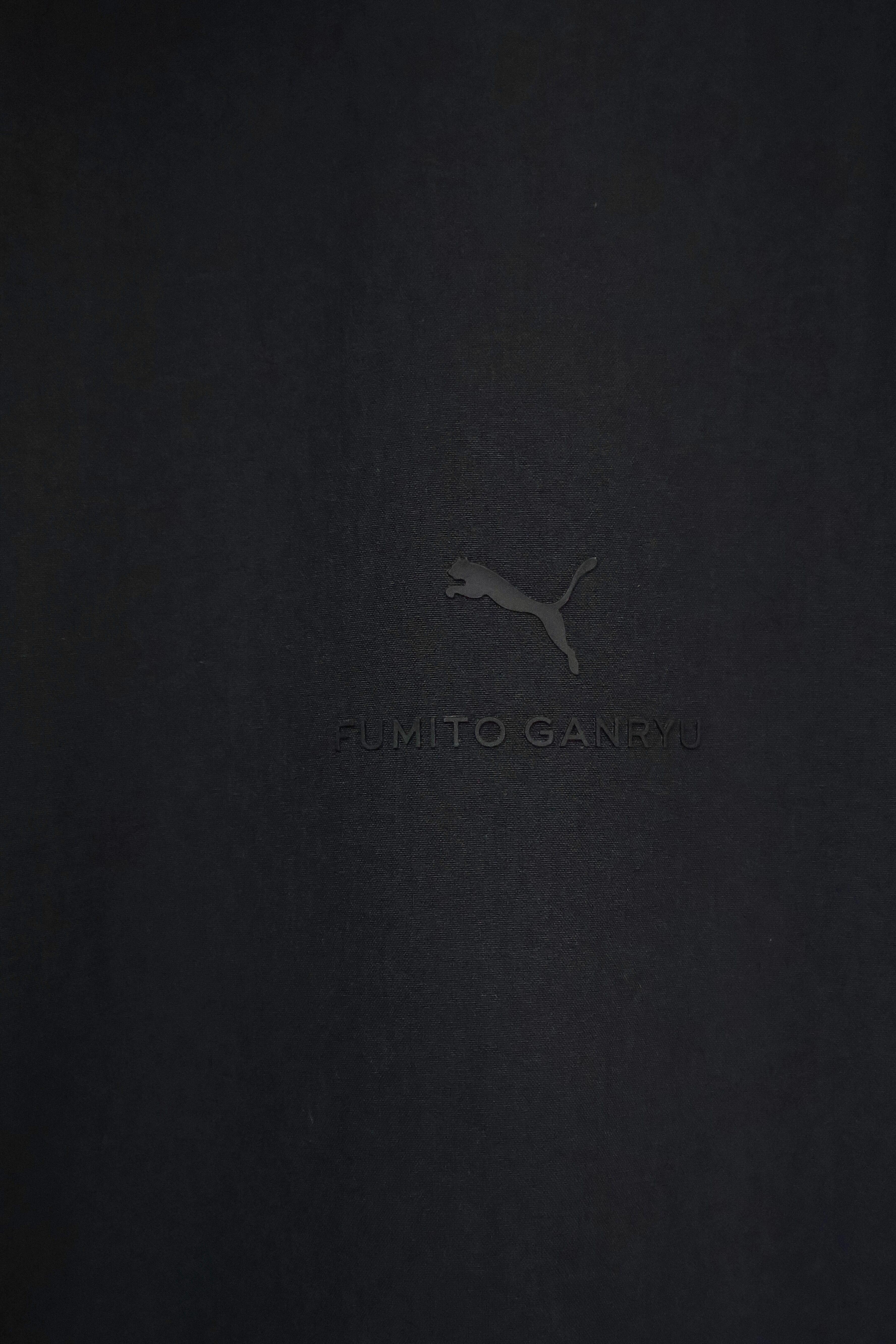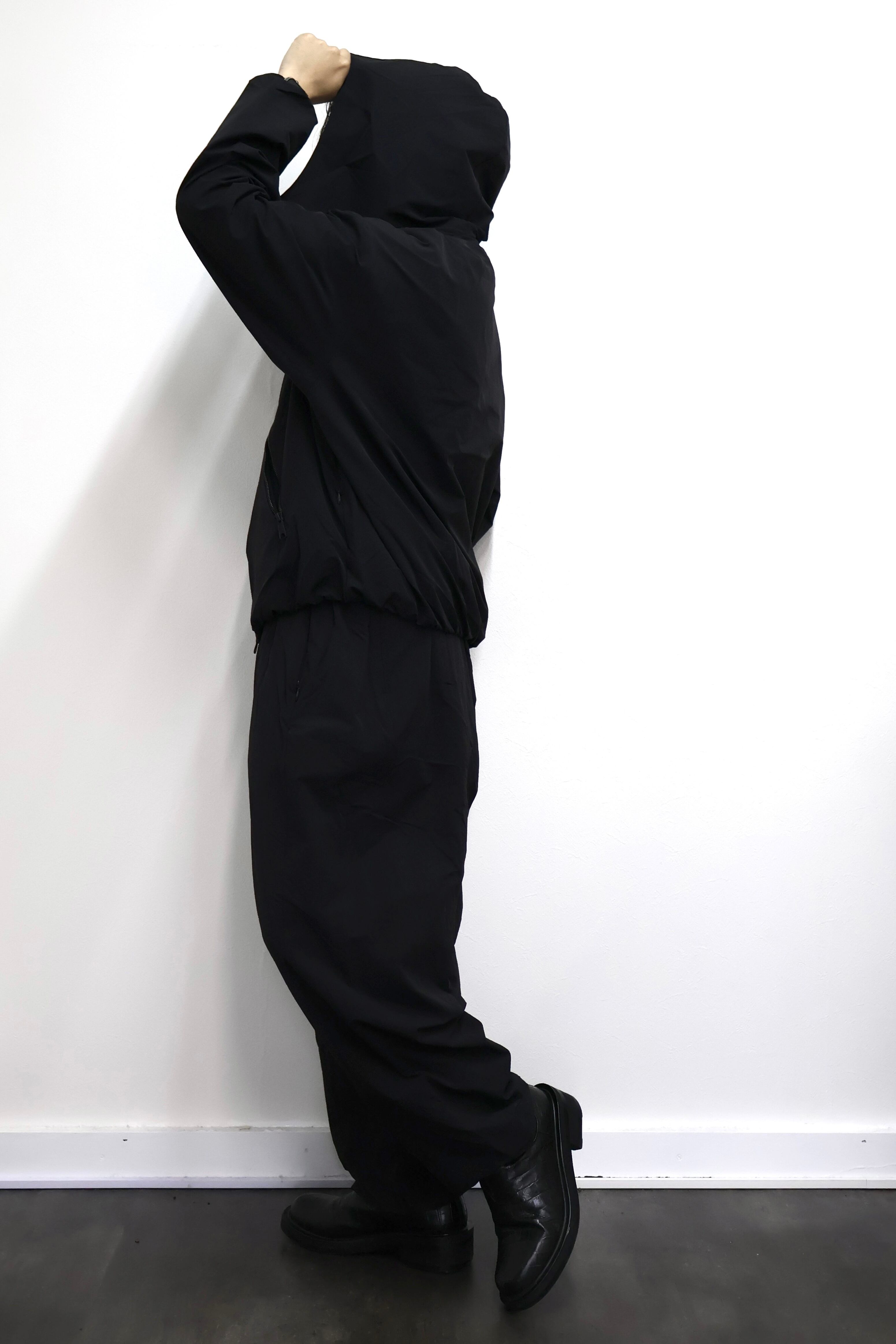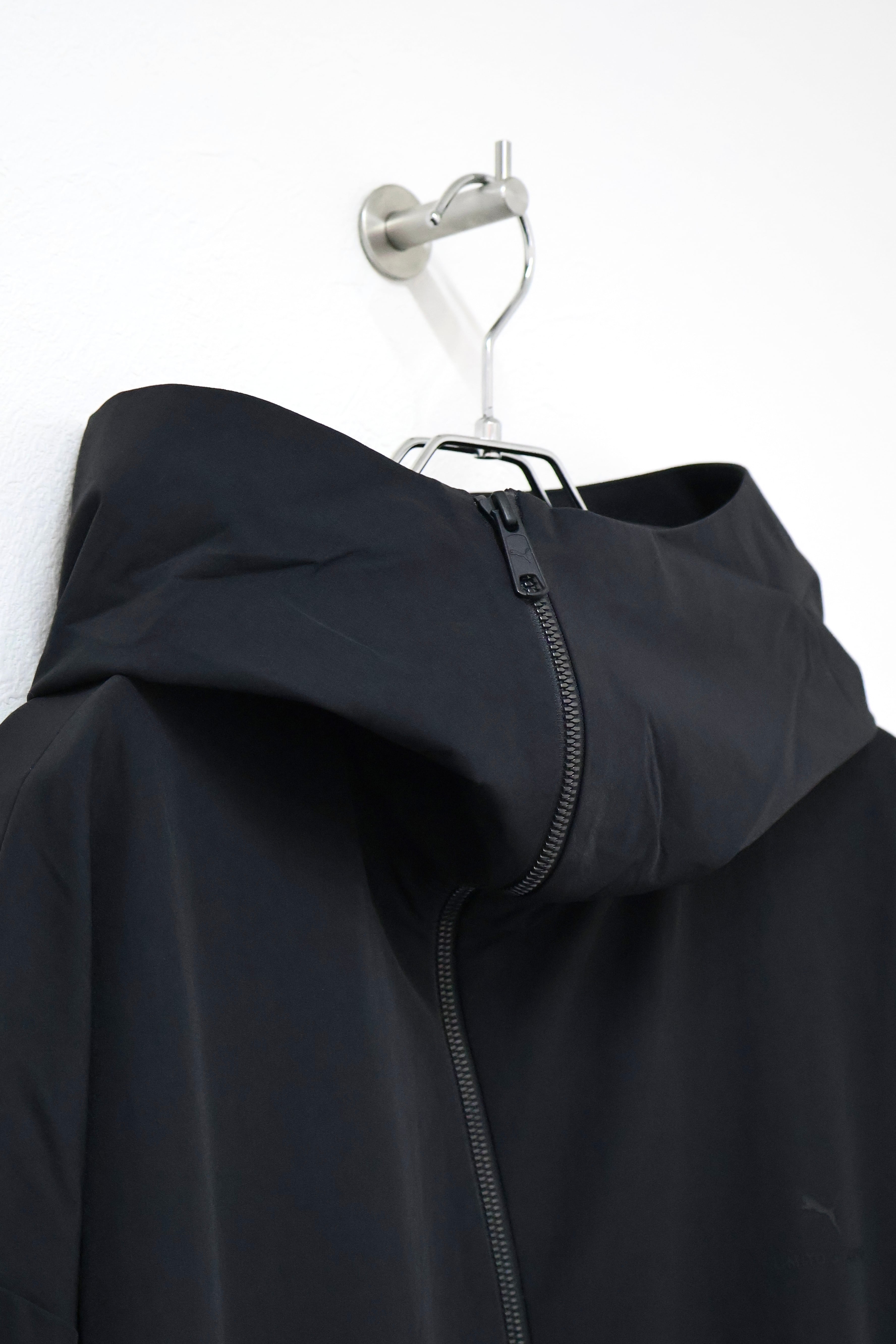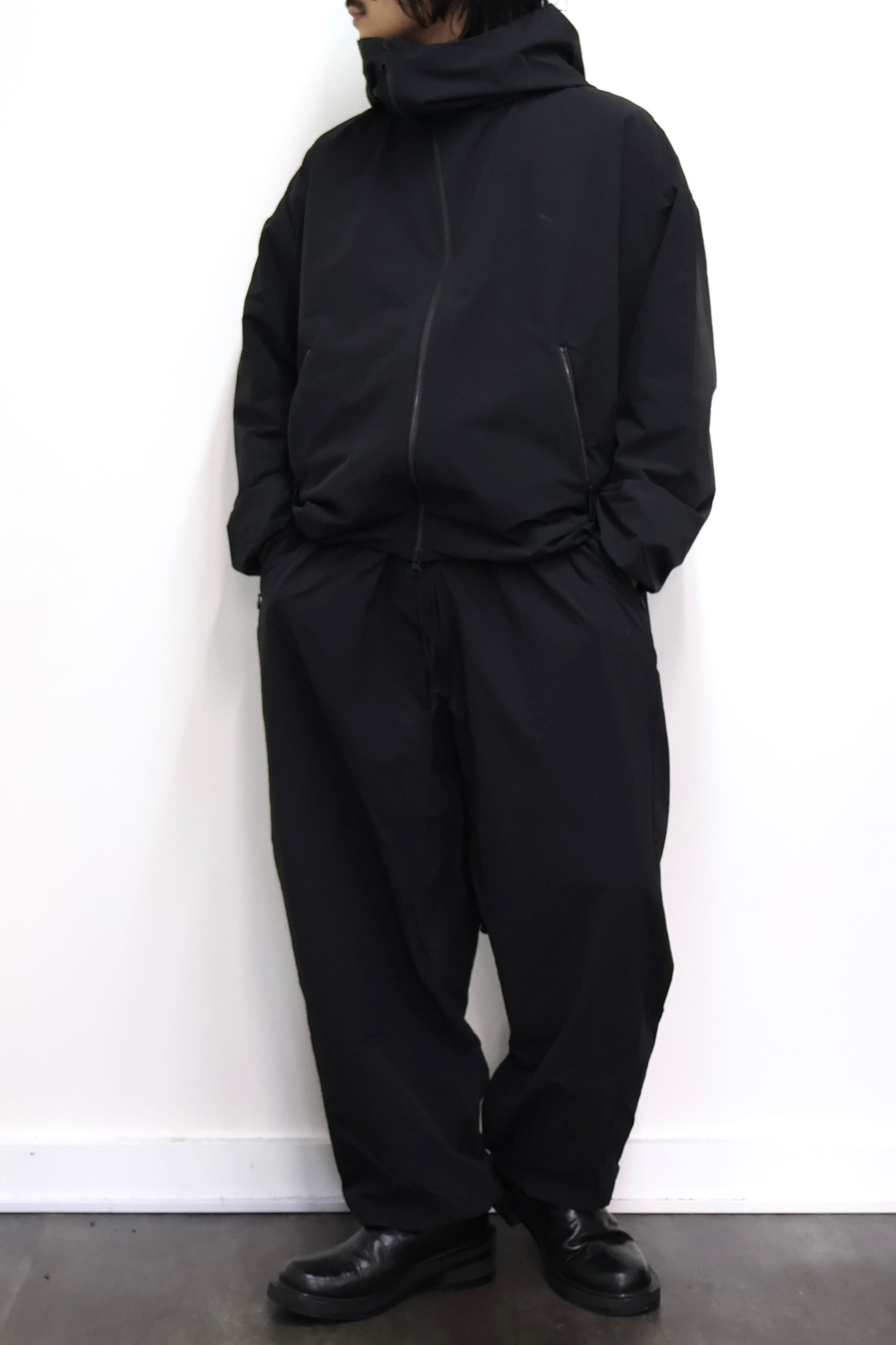 PUMAとのコラボレーション。快適性を考慮したアシンメトリーなファスナー明き。袖口と裾はエアリーな雰囲気を狙った特殊なシャーリング仕様。裏地とポケット袋布は温かみのあるライトなフリースを使用。左胸にPUMAのプリント。PUMA Baggy Slacksとセットアップで着用可能。