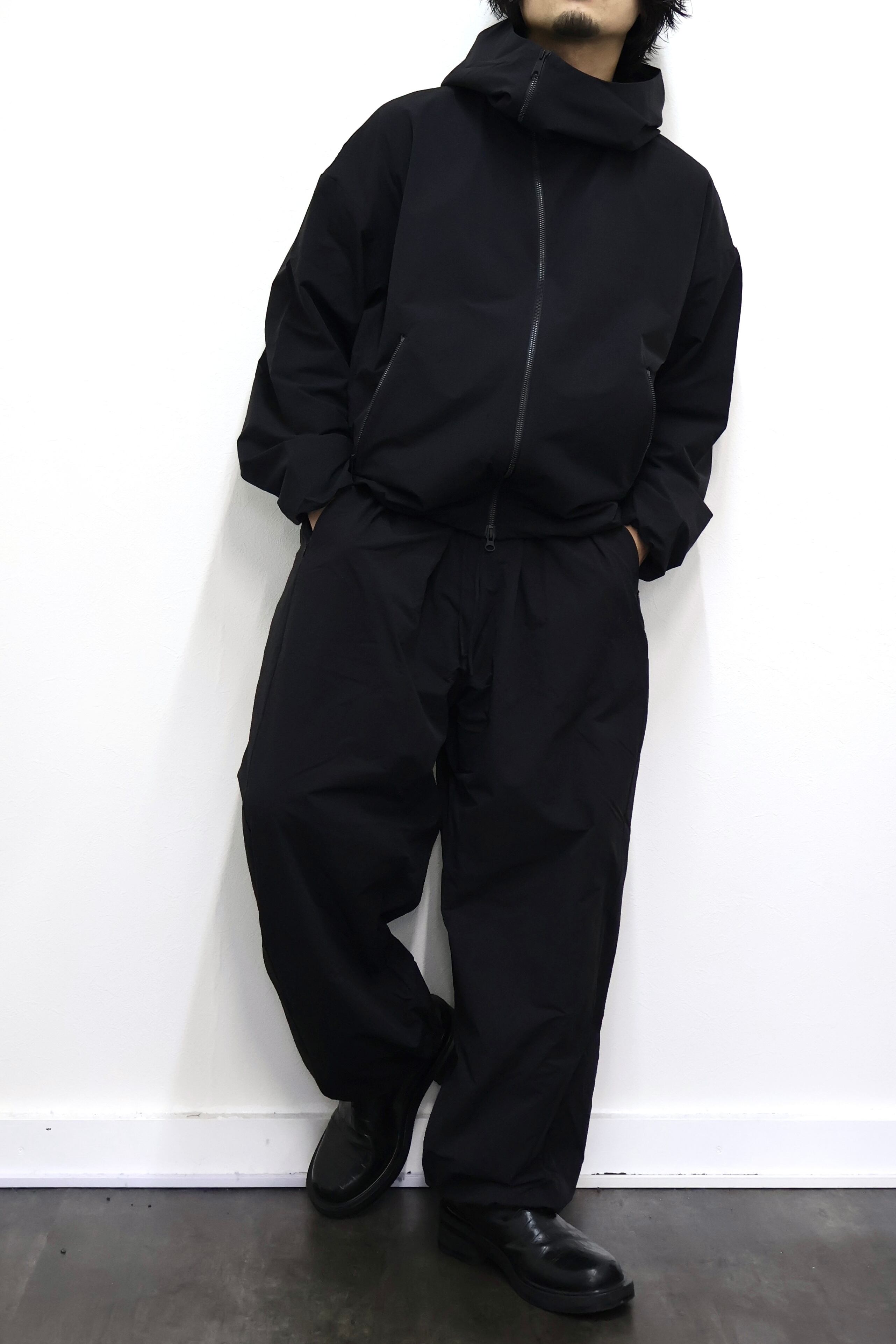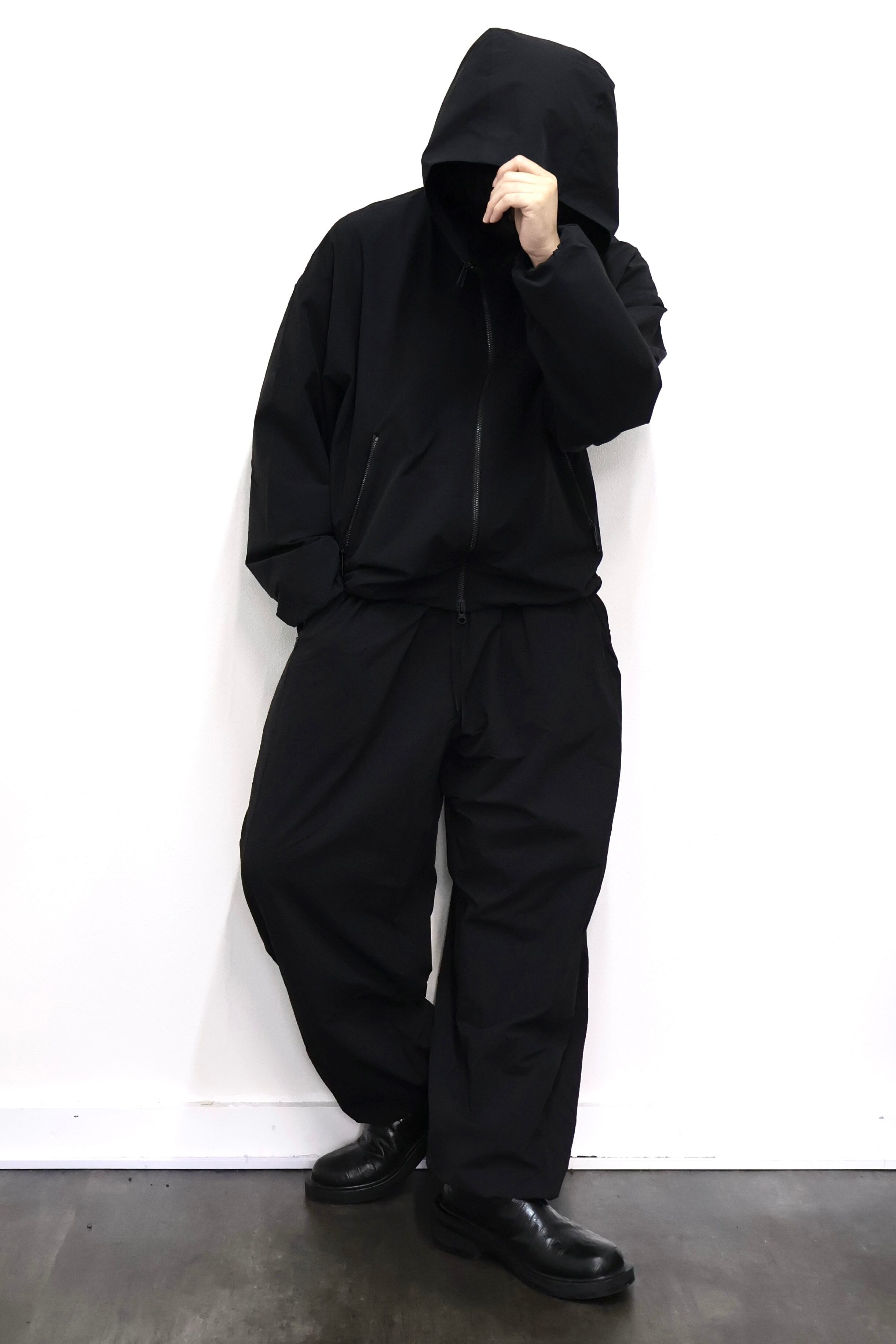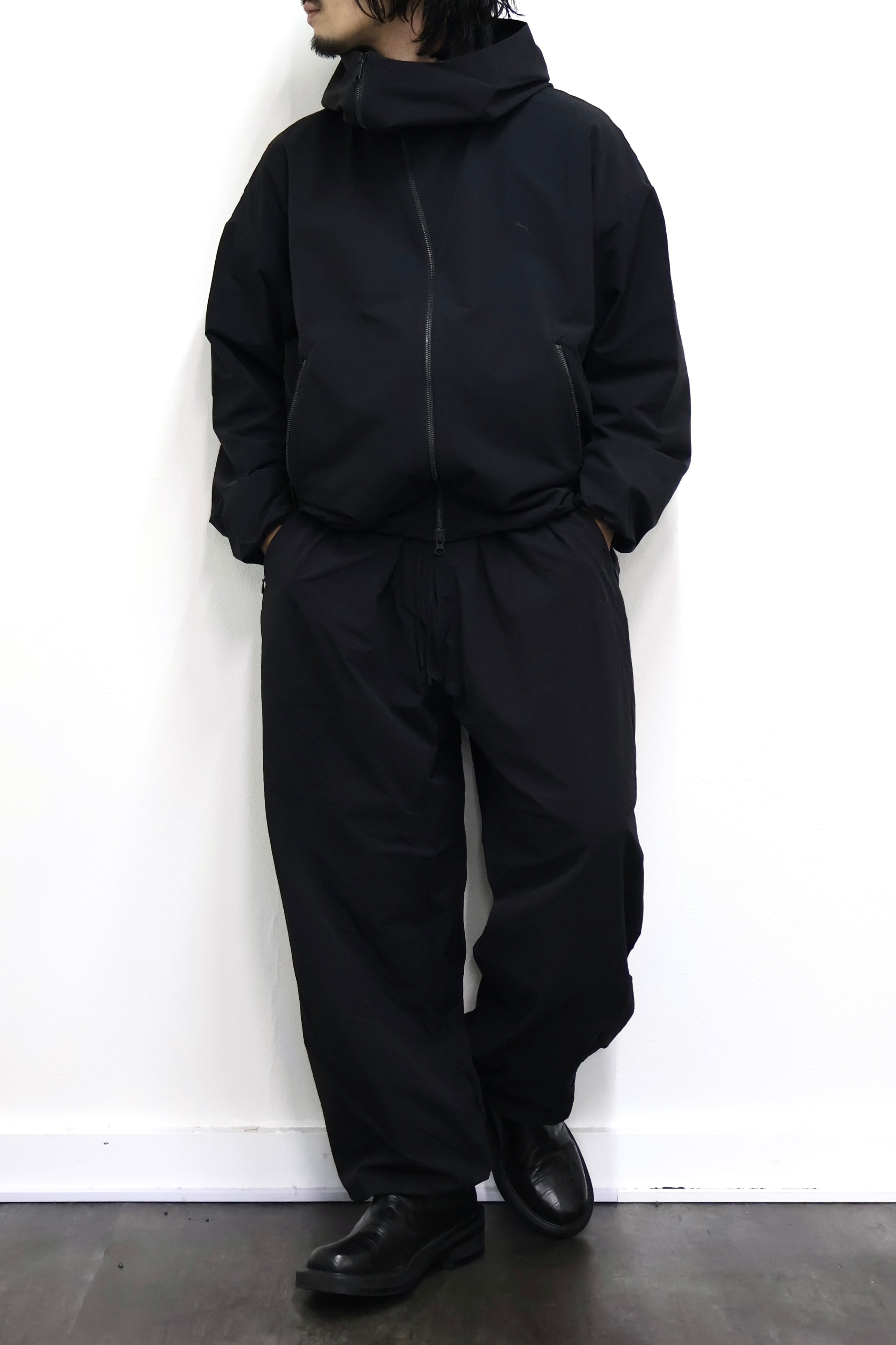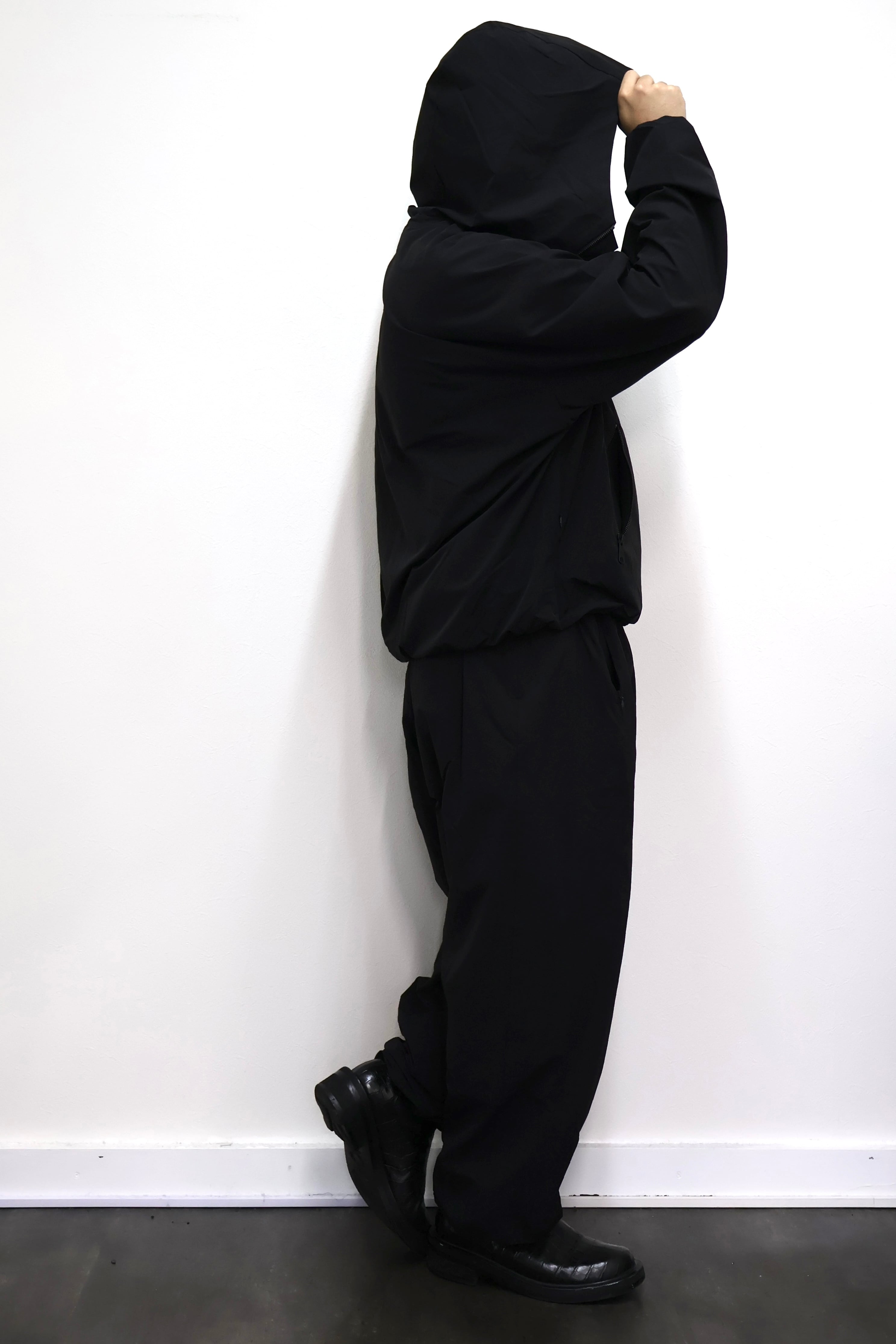 PUMAとのコラボレーション。快適性を考慮したアシンメトリーなファスナー明き。袖口と裾はエアリーな雰囲気を狙った特殊なシャーリング仕様。裏地とポケット袋布は温かみのあるライトなフリースを使用。左胸にPUMAのプリント。PUMA Baggy Slacksとセットアップで着用可能。