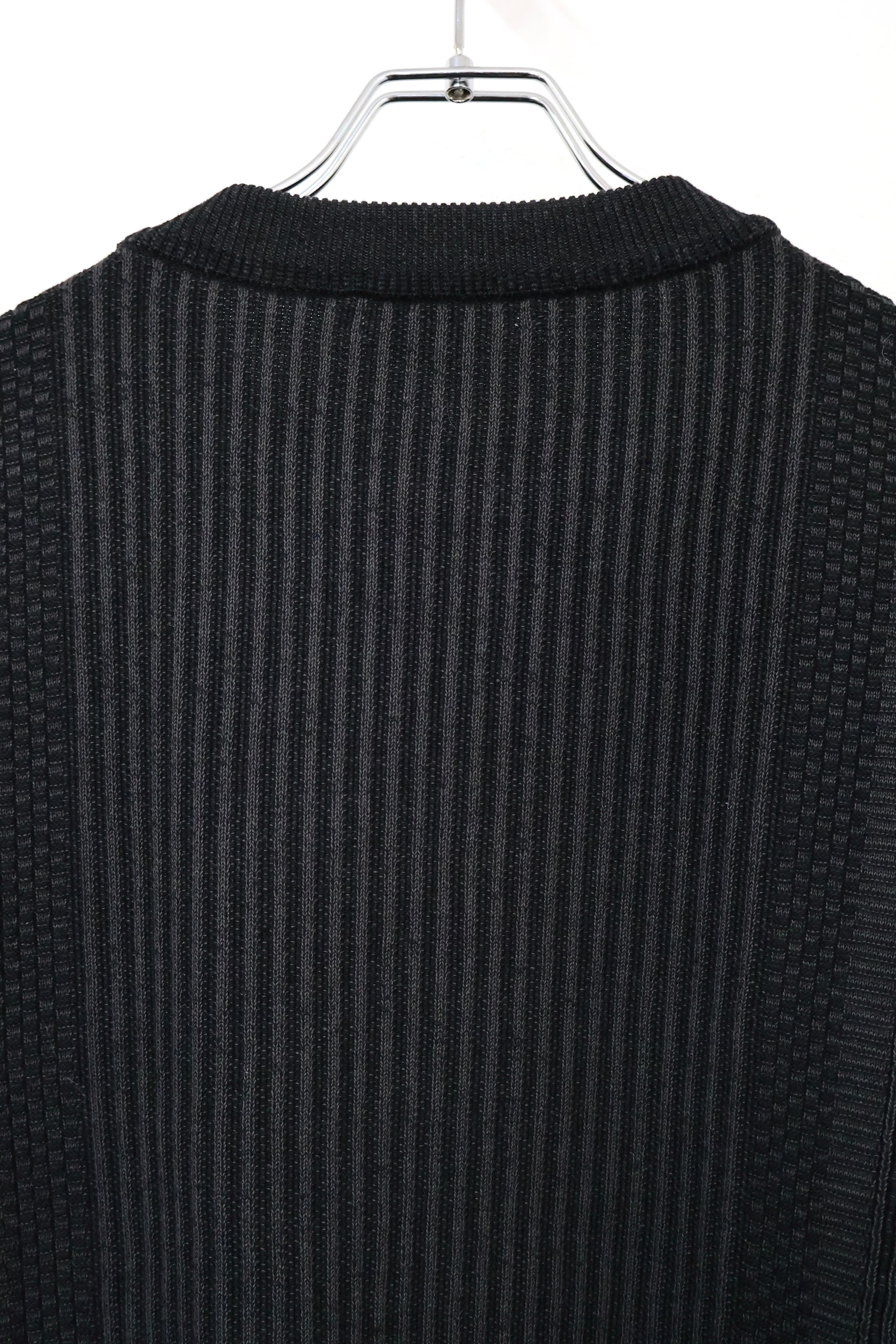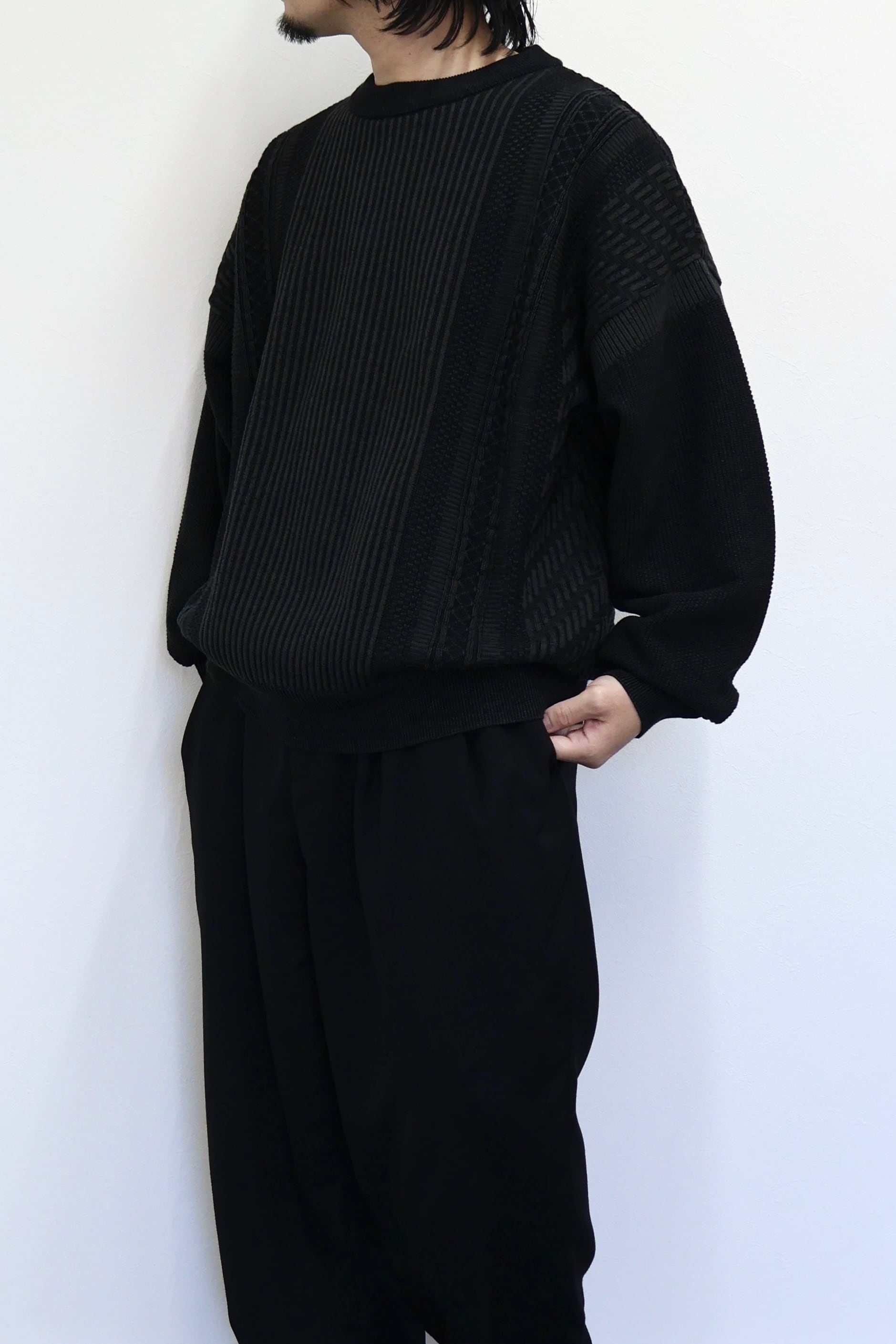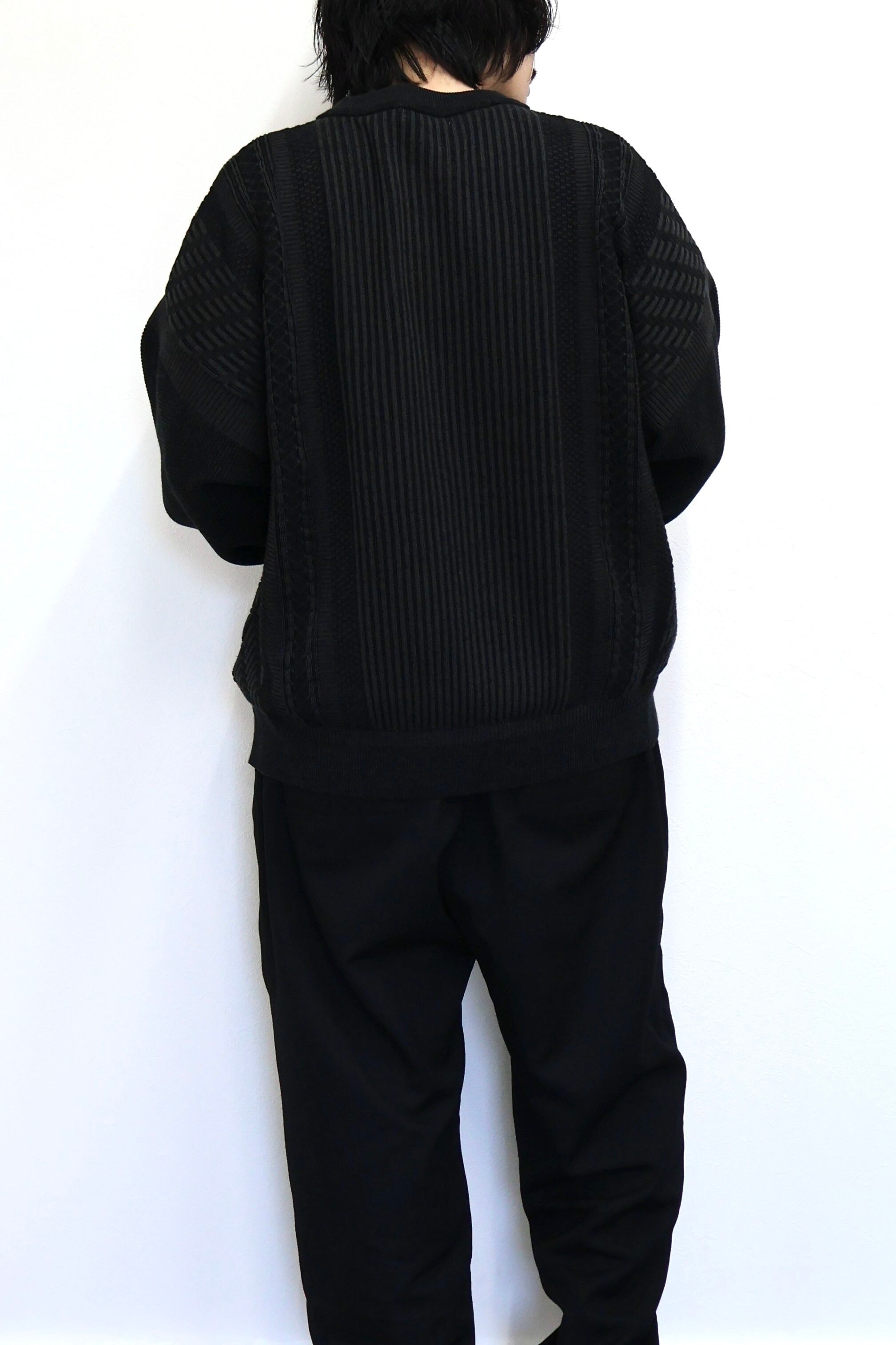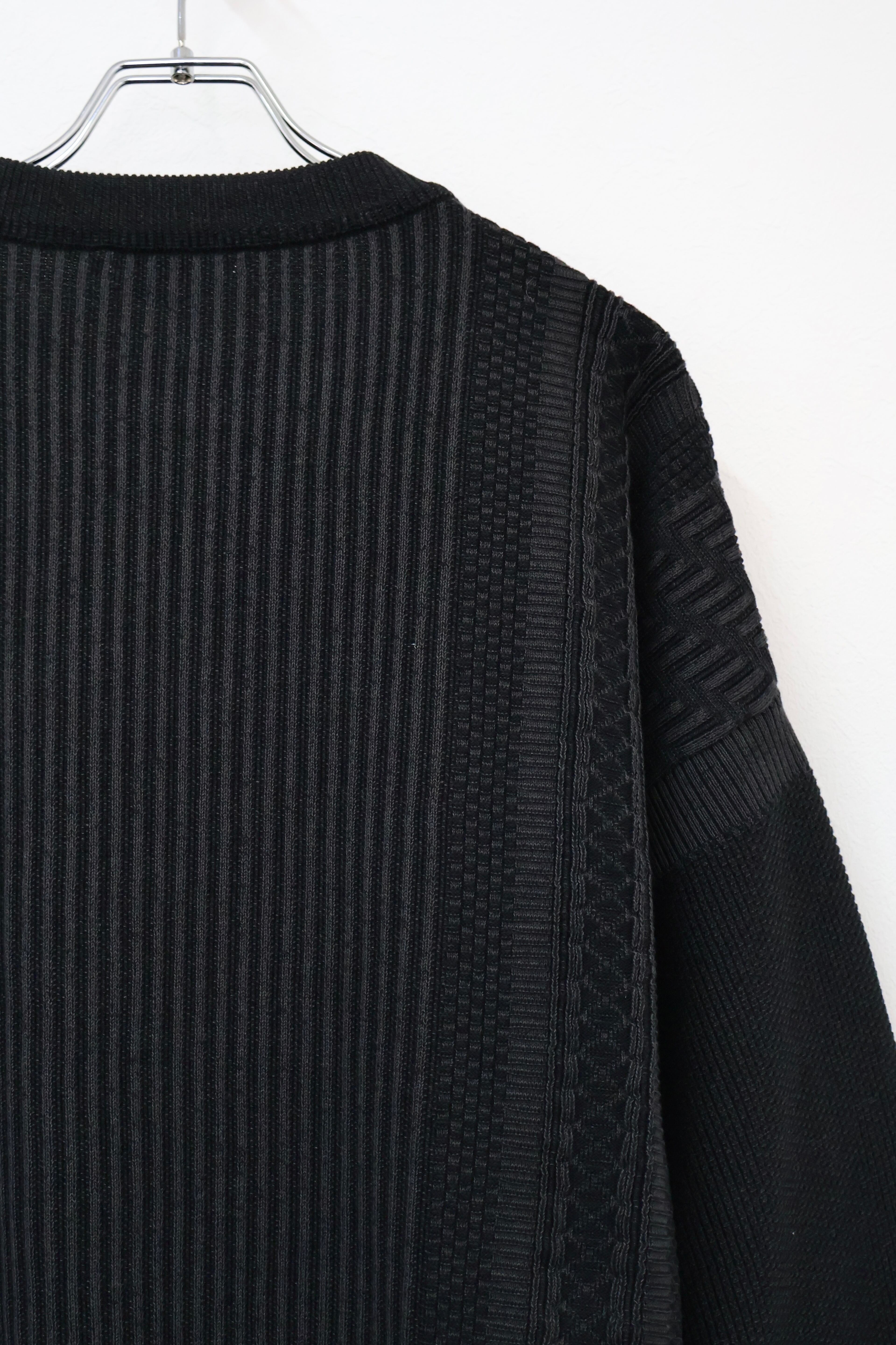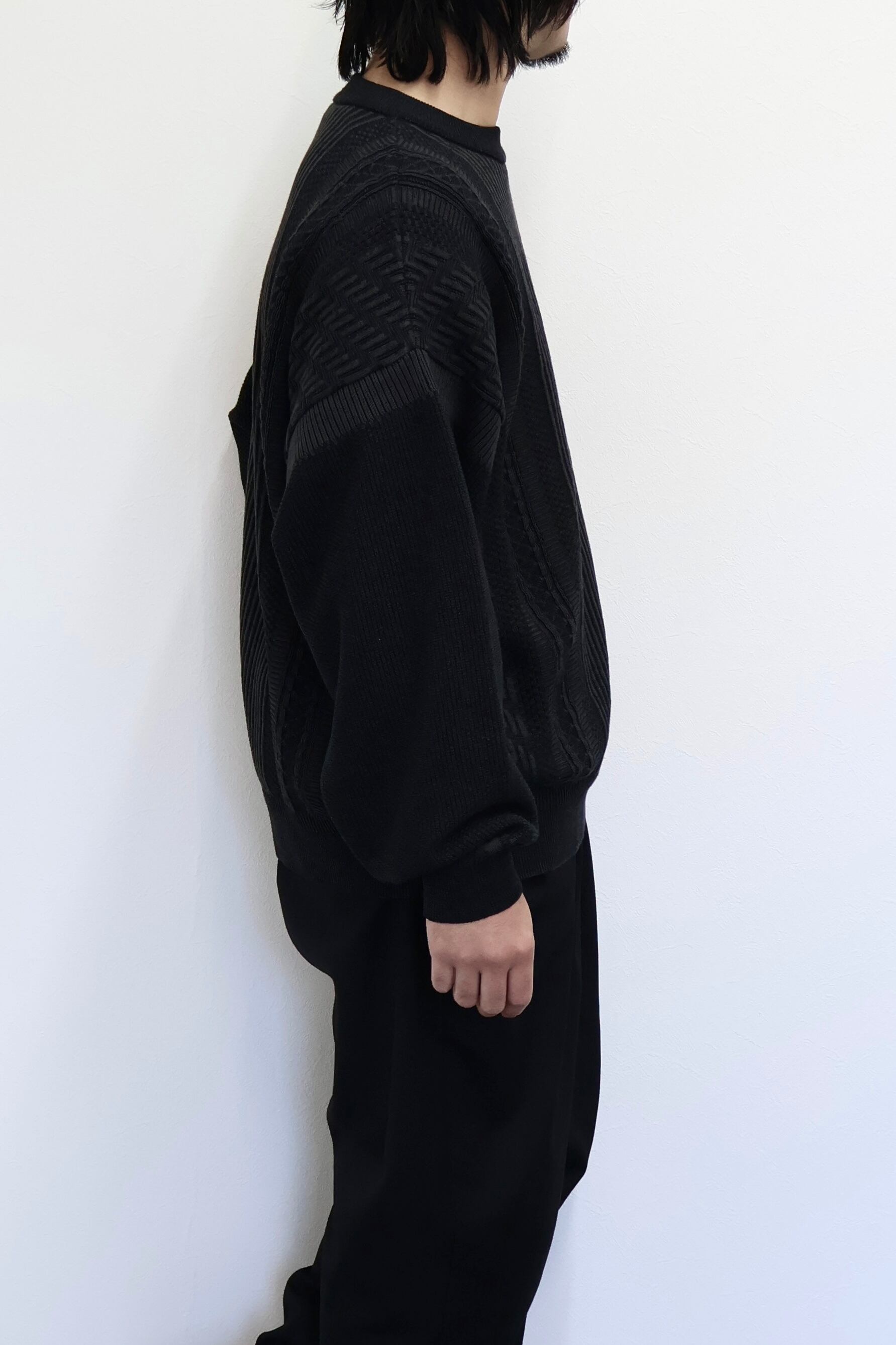 プレーティング編みと言われる表日側と裏日側で異なる糸を編む技法を使用し、表と裏で糸の色を変えて、2色で編むことで奥行きのある表情に。