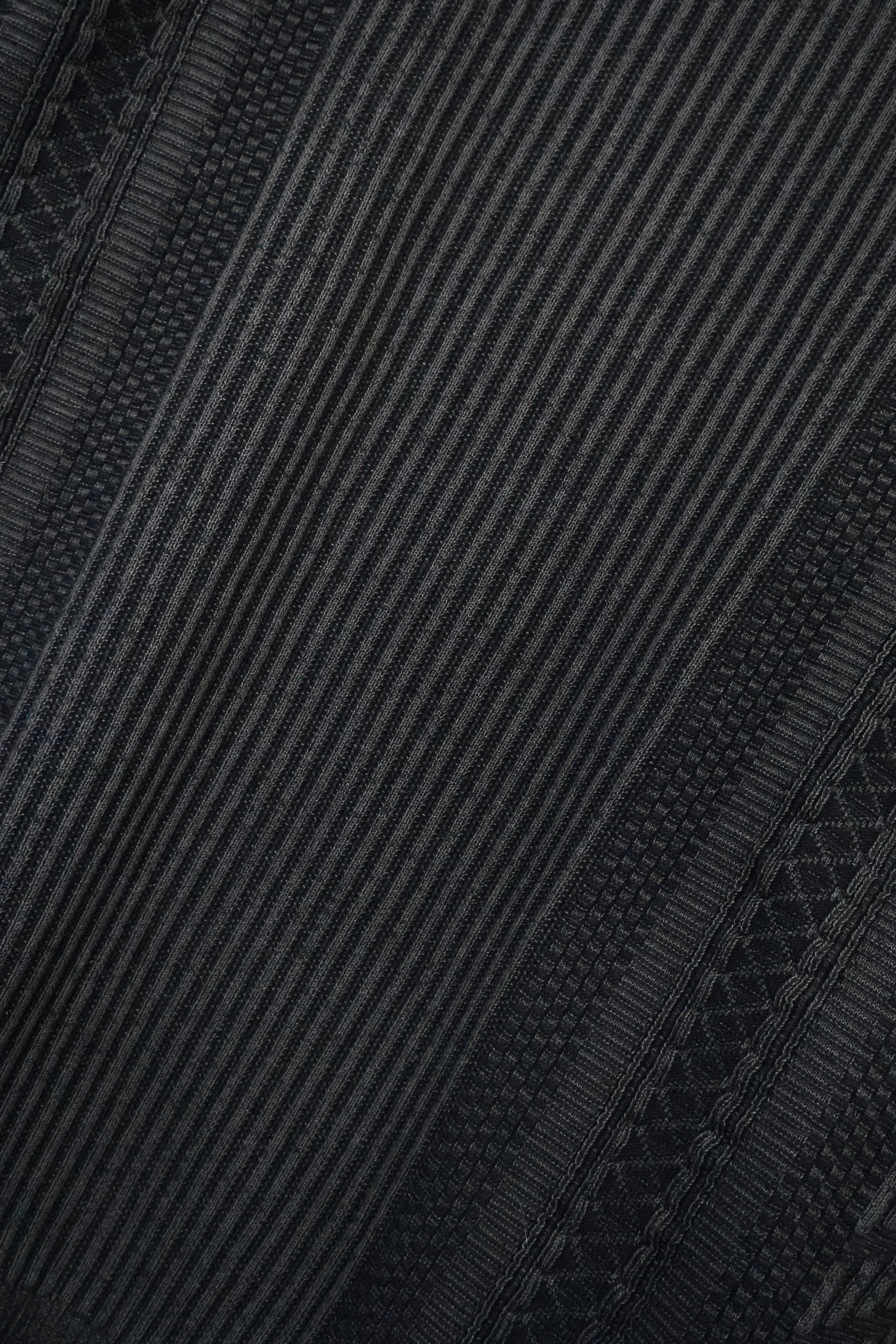 身頃の肩部分から裾にかけての柄は雪や氷を表し 身頃脇の柄で雪が解けて流れる様を表しています。身頃中央の縦線柄で豊かに流れる手取川を表しています。神の鹿の子編みの細かな凹凸で冬の終わりのザラついた細かな氷の様な雪を表しています。