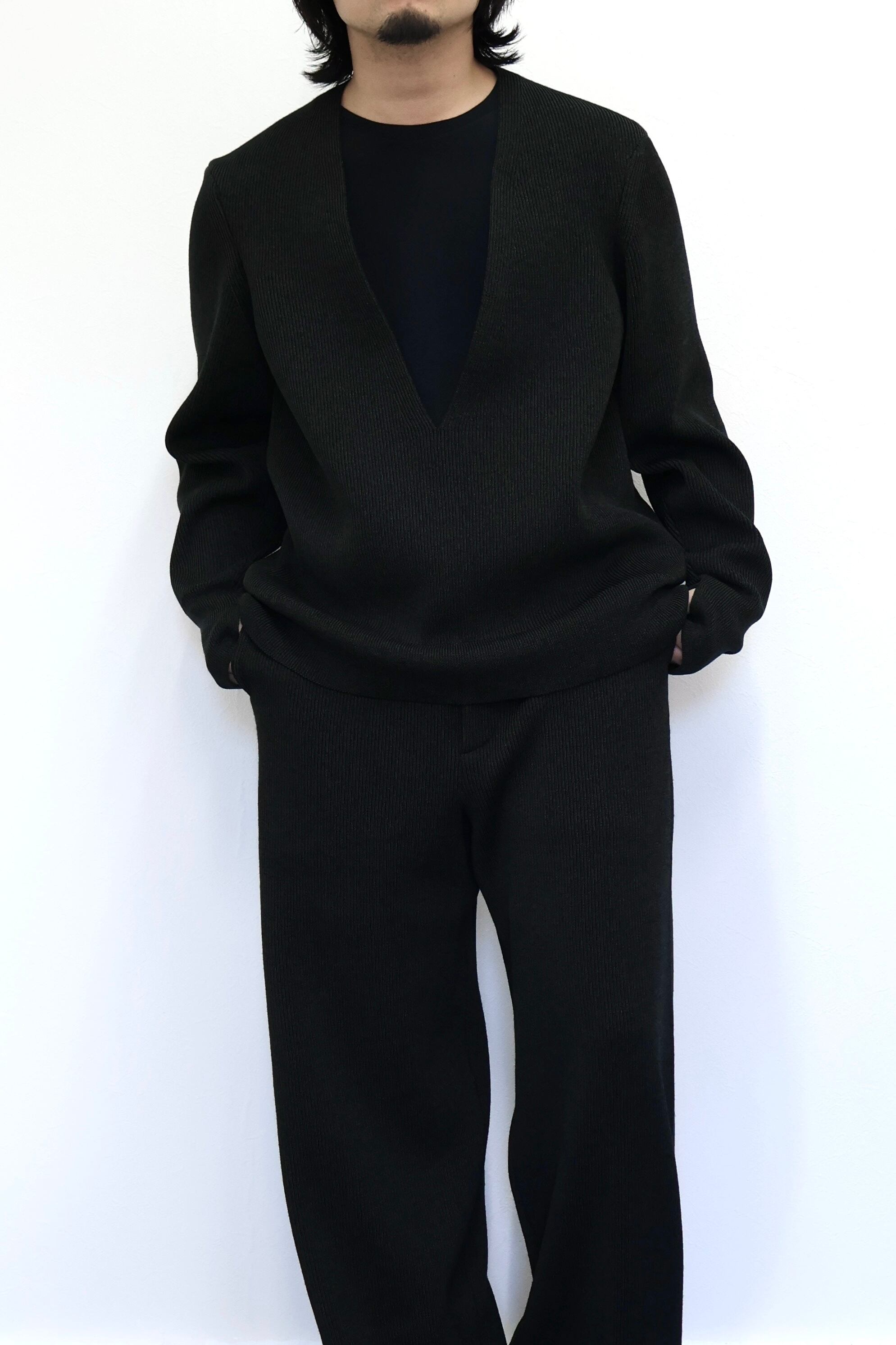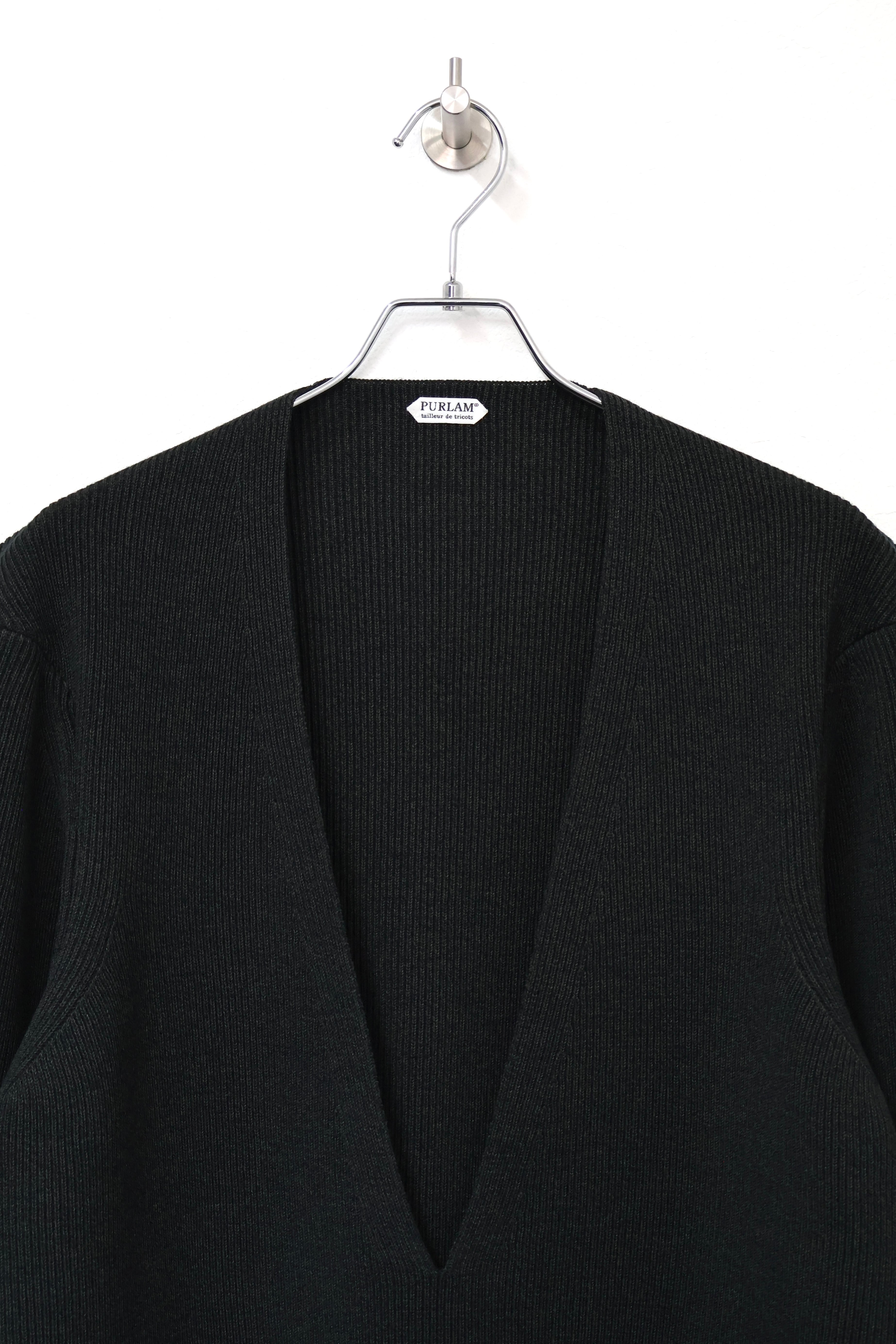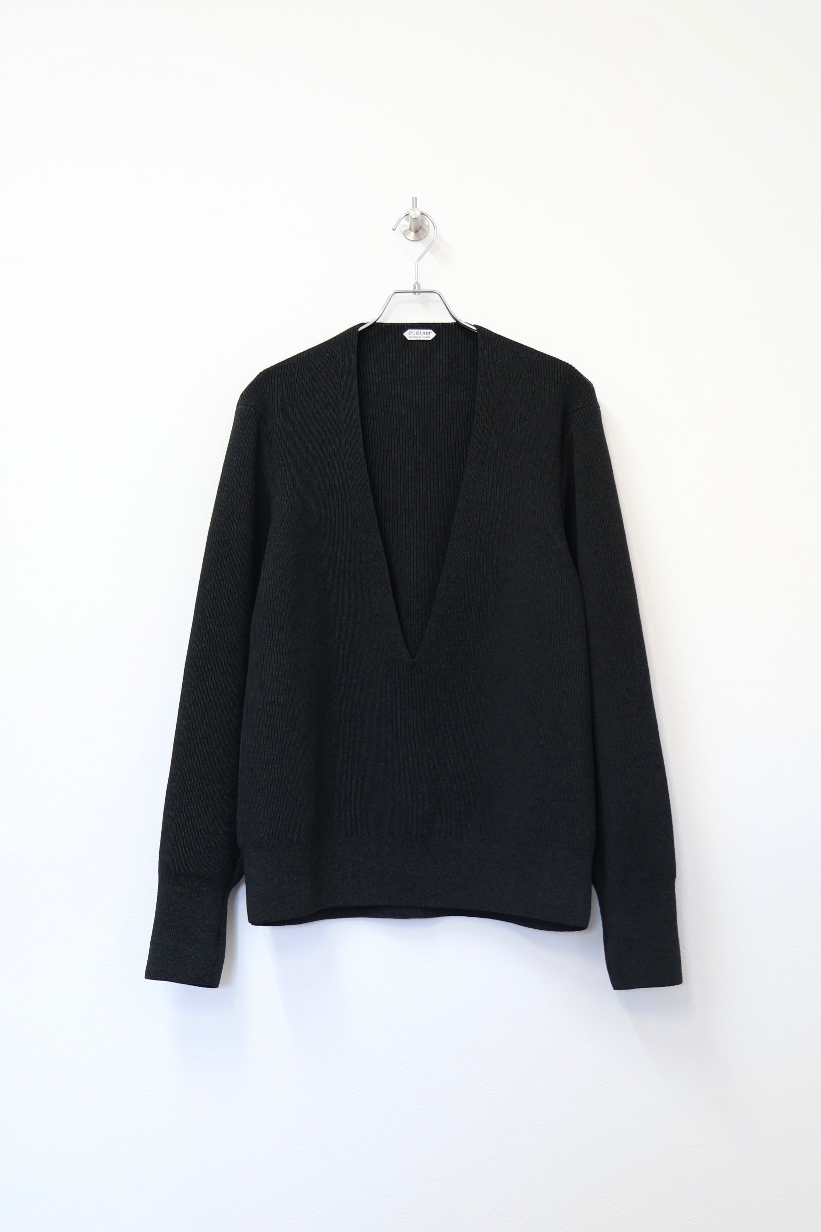 PURLAM WOOL-POLY Middle-gauge AZE Deep-Vneck L/S Pullover -CHARCOAL-