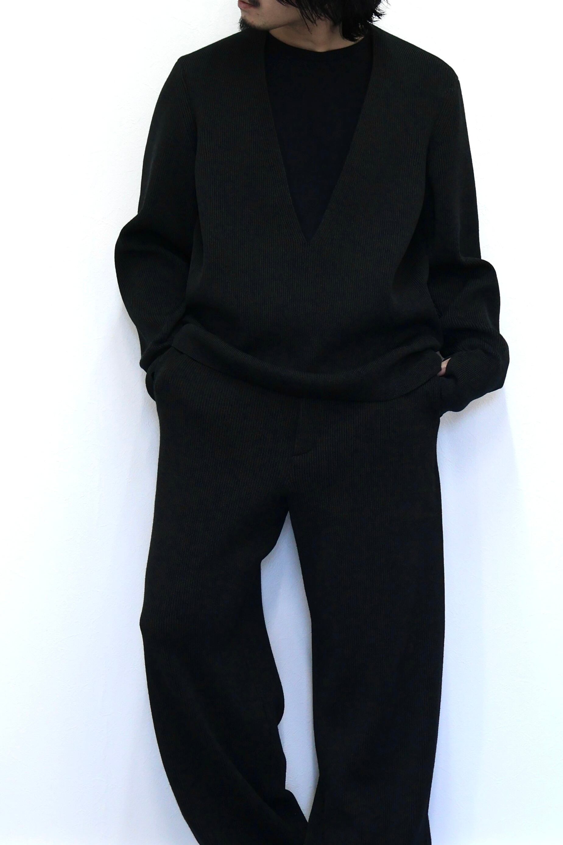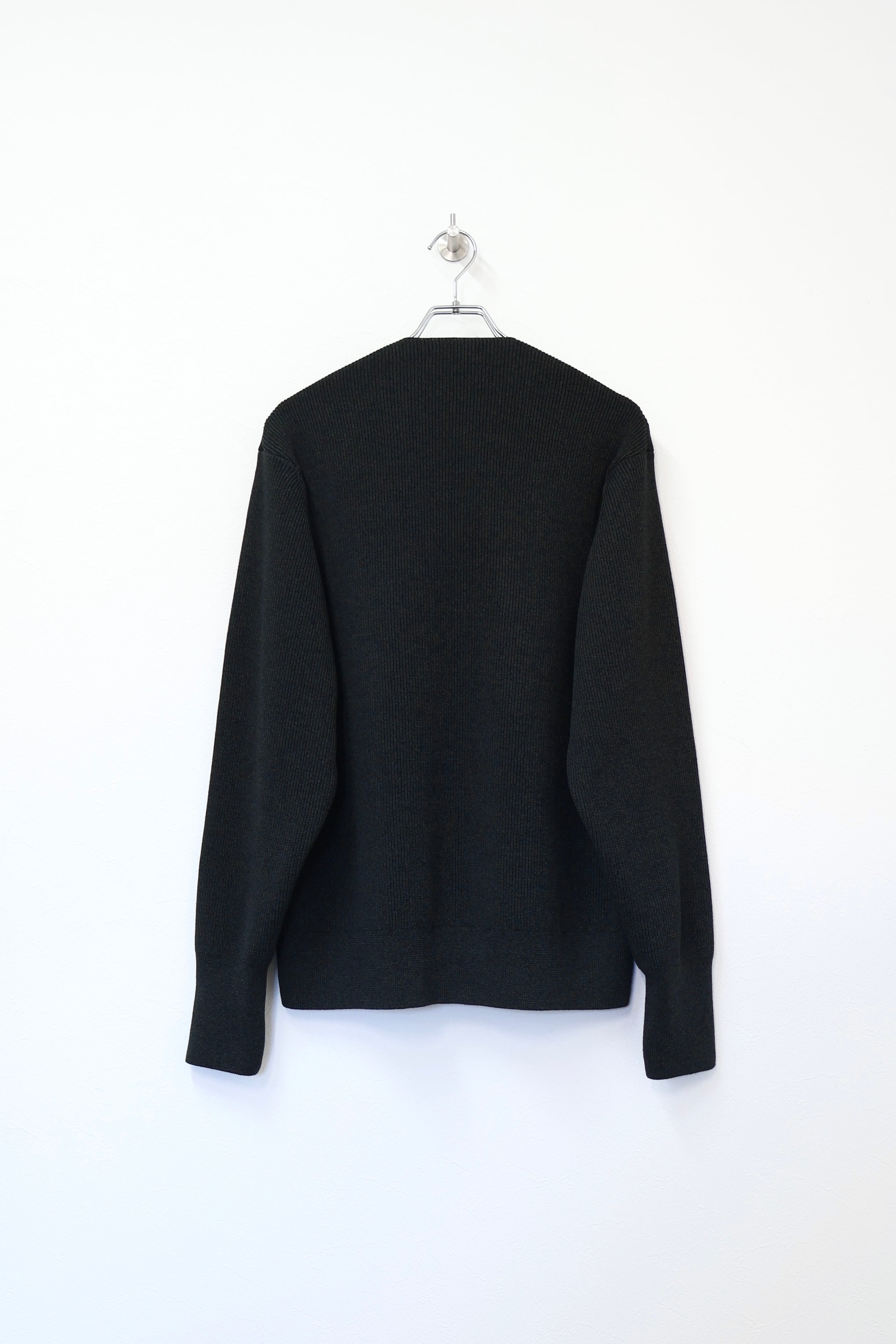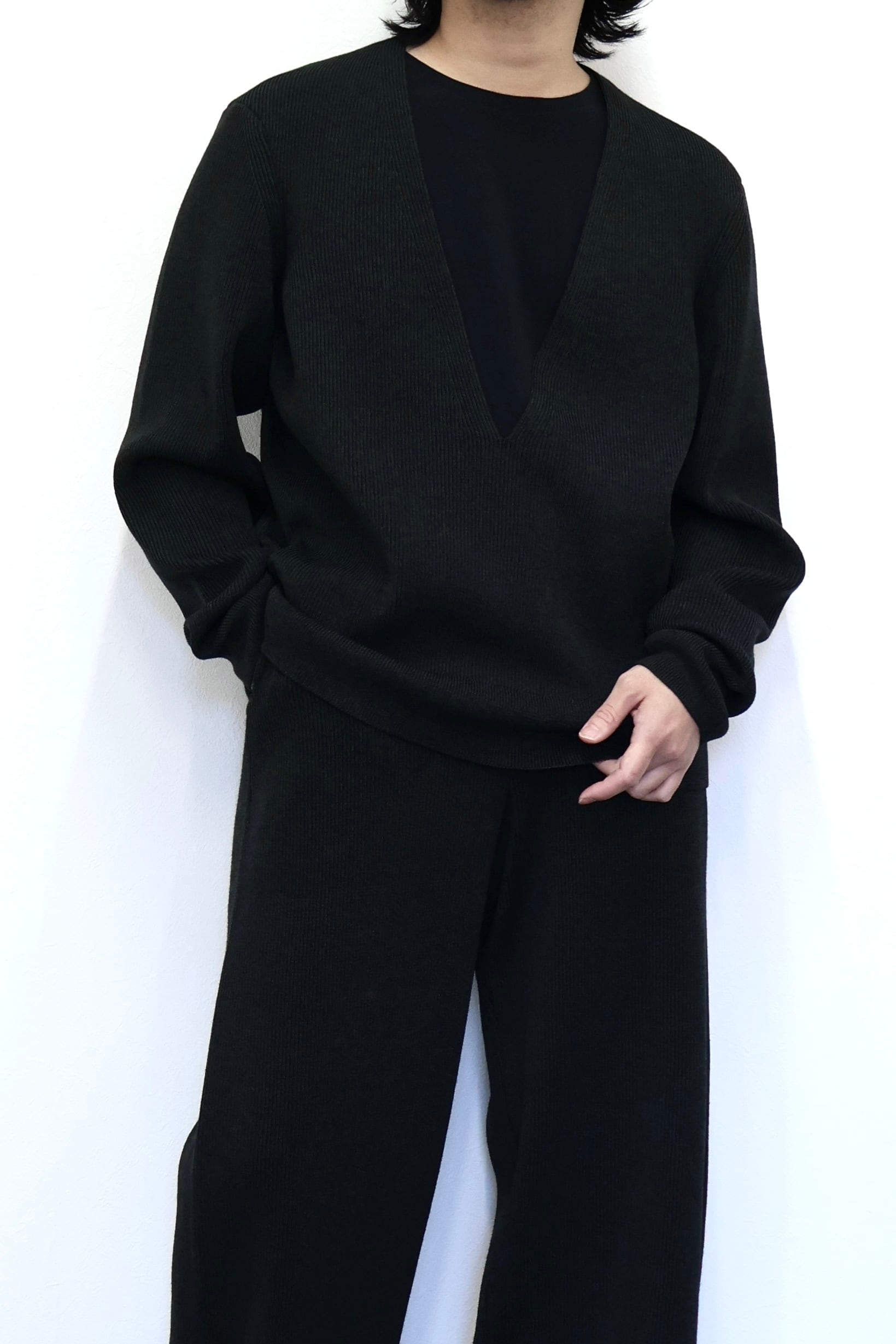 PURLAM WOOL-POLY Middle-gauge AZE Deep-Vneck L/S Pullover -CHARCOAL-