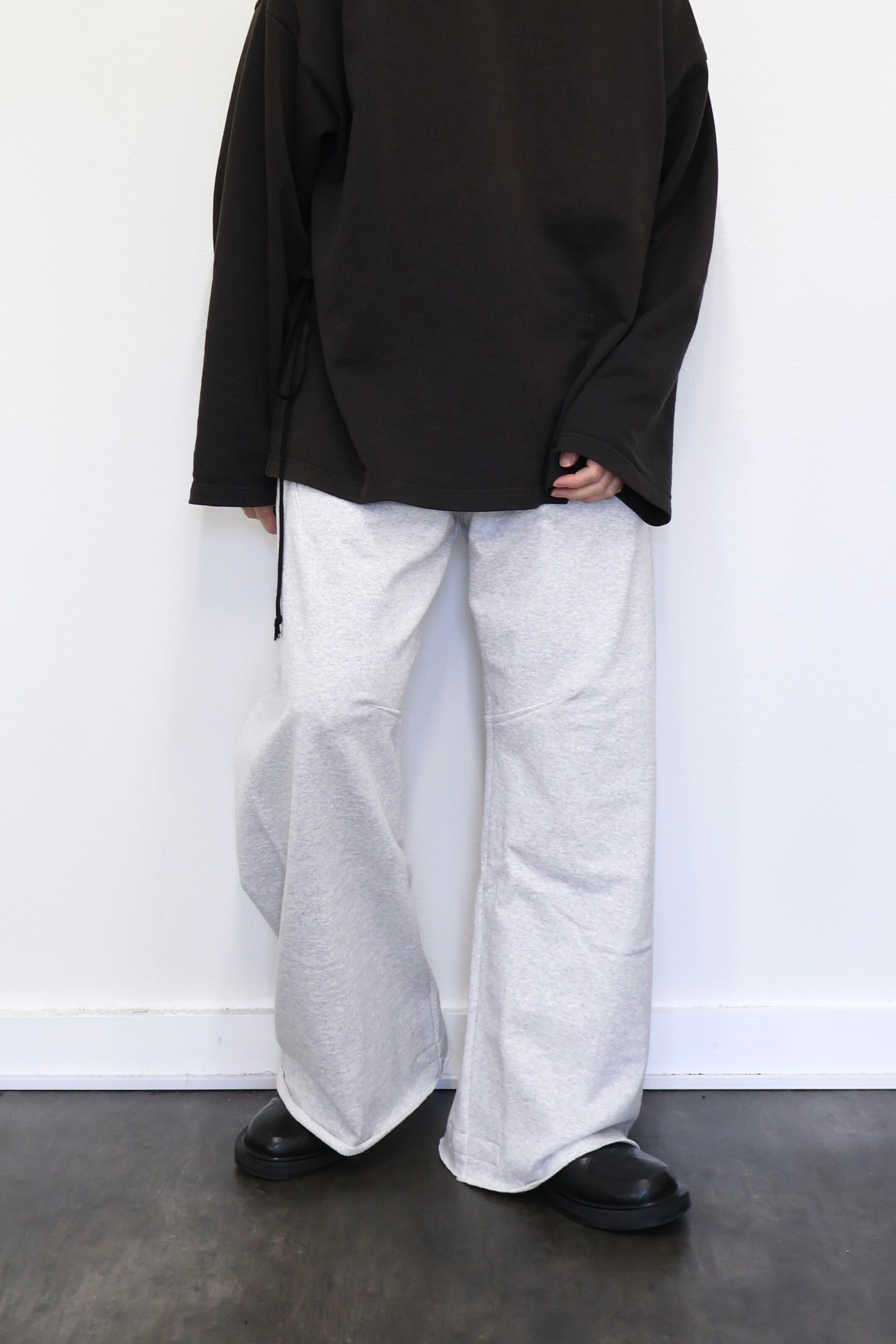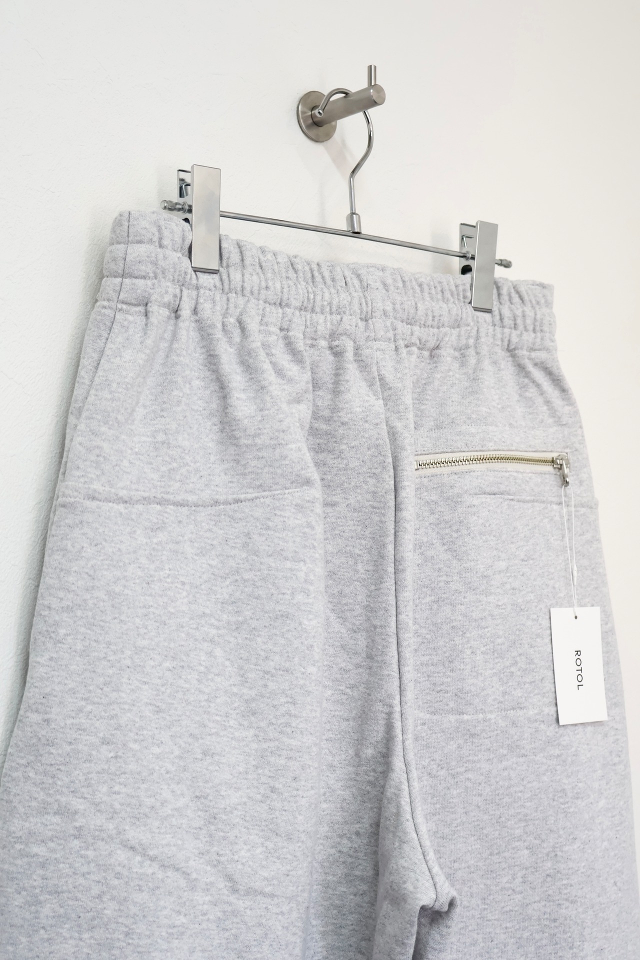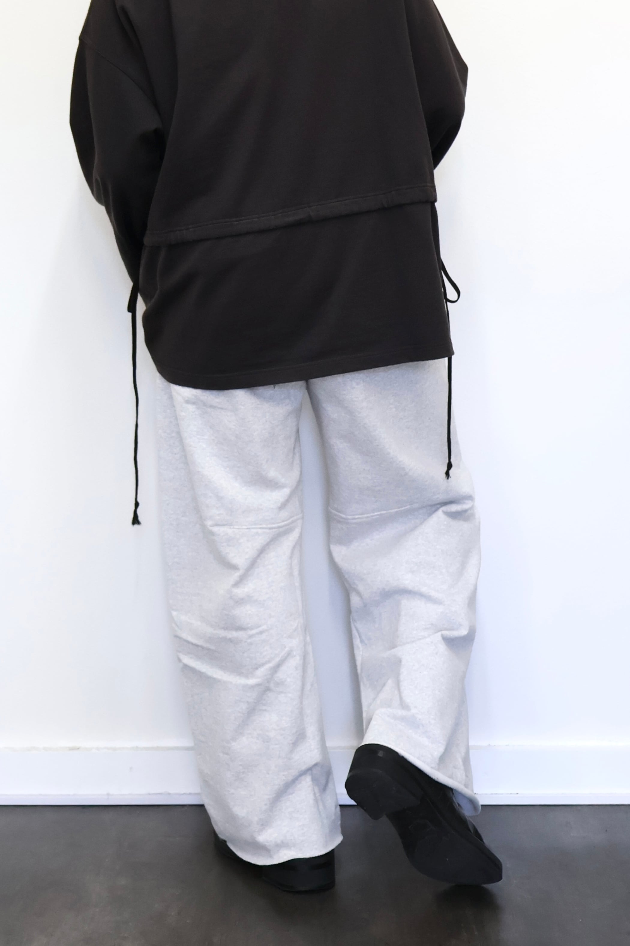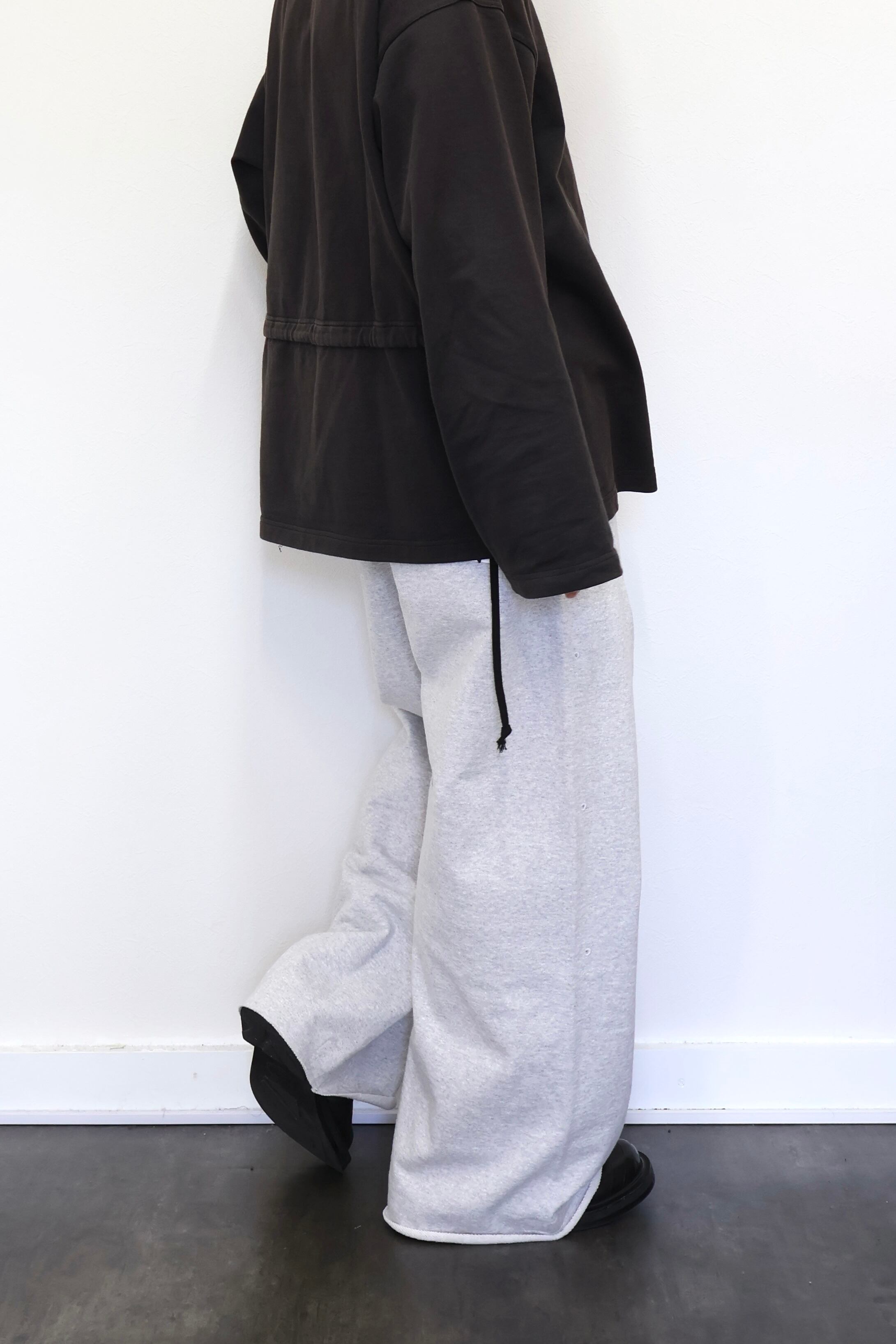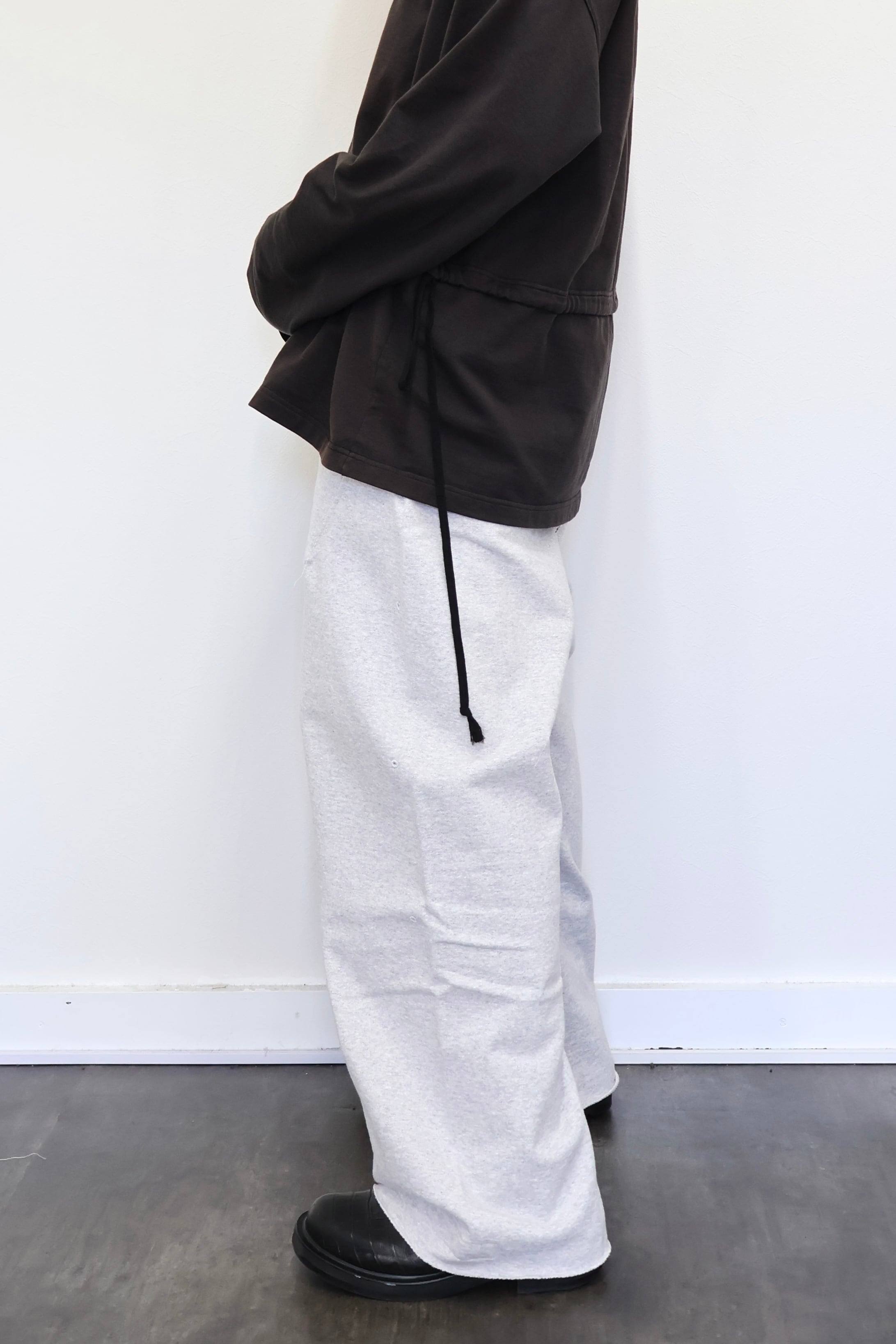 ウエストベルトの折り返しで着用アレンジが可能なスウェットパンツ。ハリ感のある薄手のオリジナル裏毛素材を使用。脇線のないミニマルな構造に、断ち切り仕様の裾とドットボタンを配備し、裾幅の調整が可能。