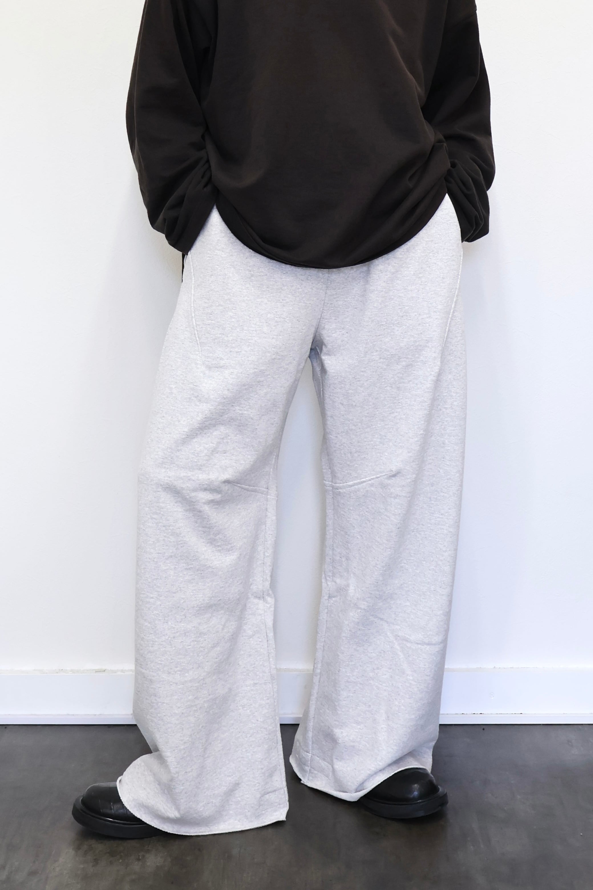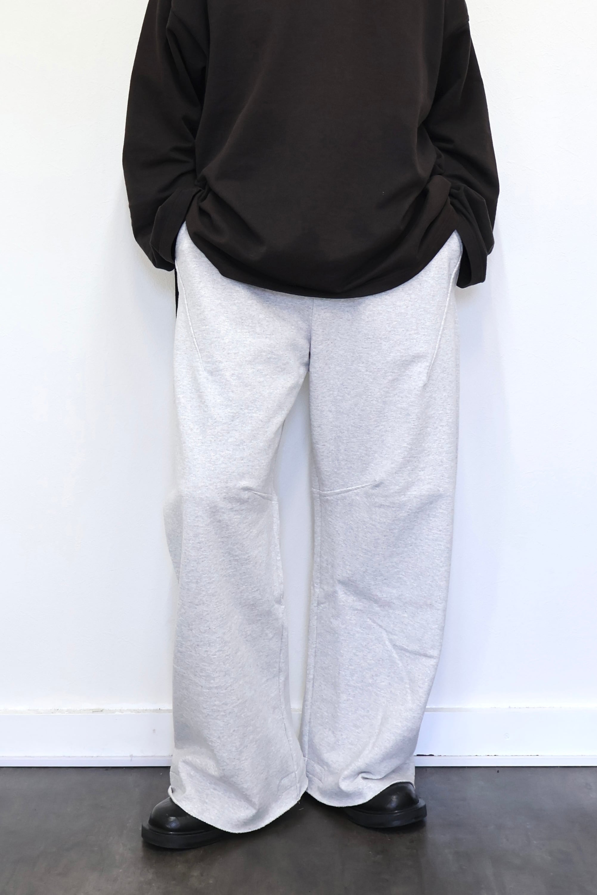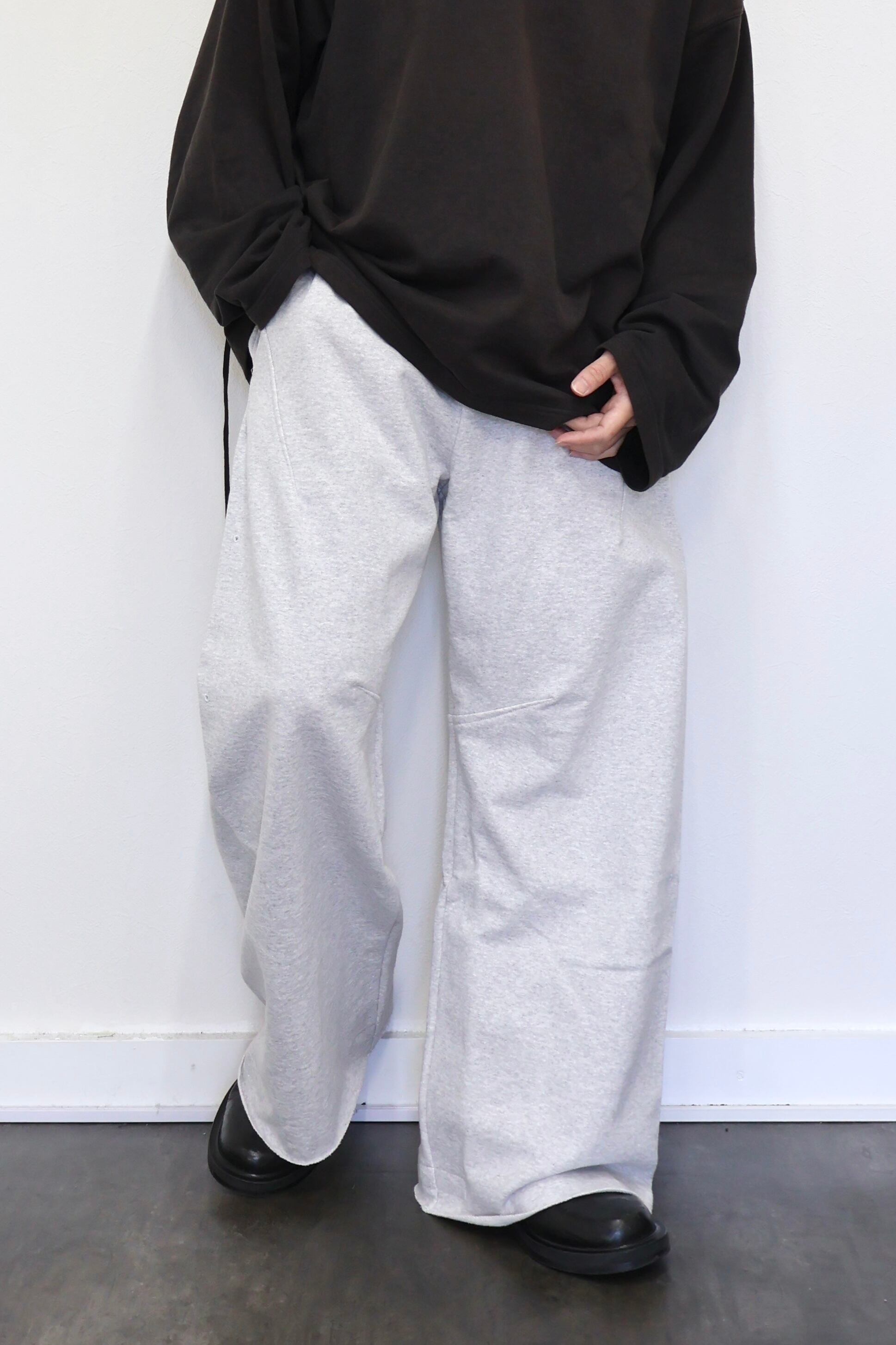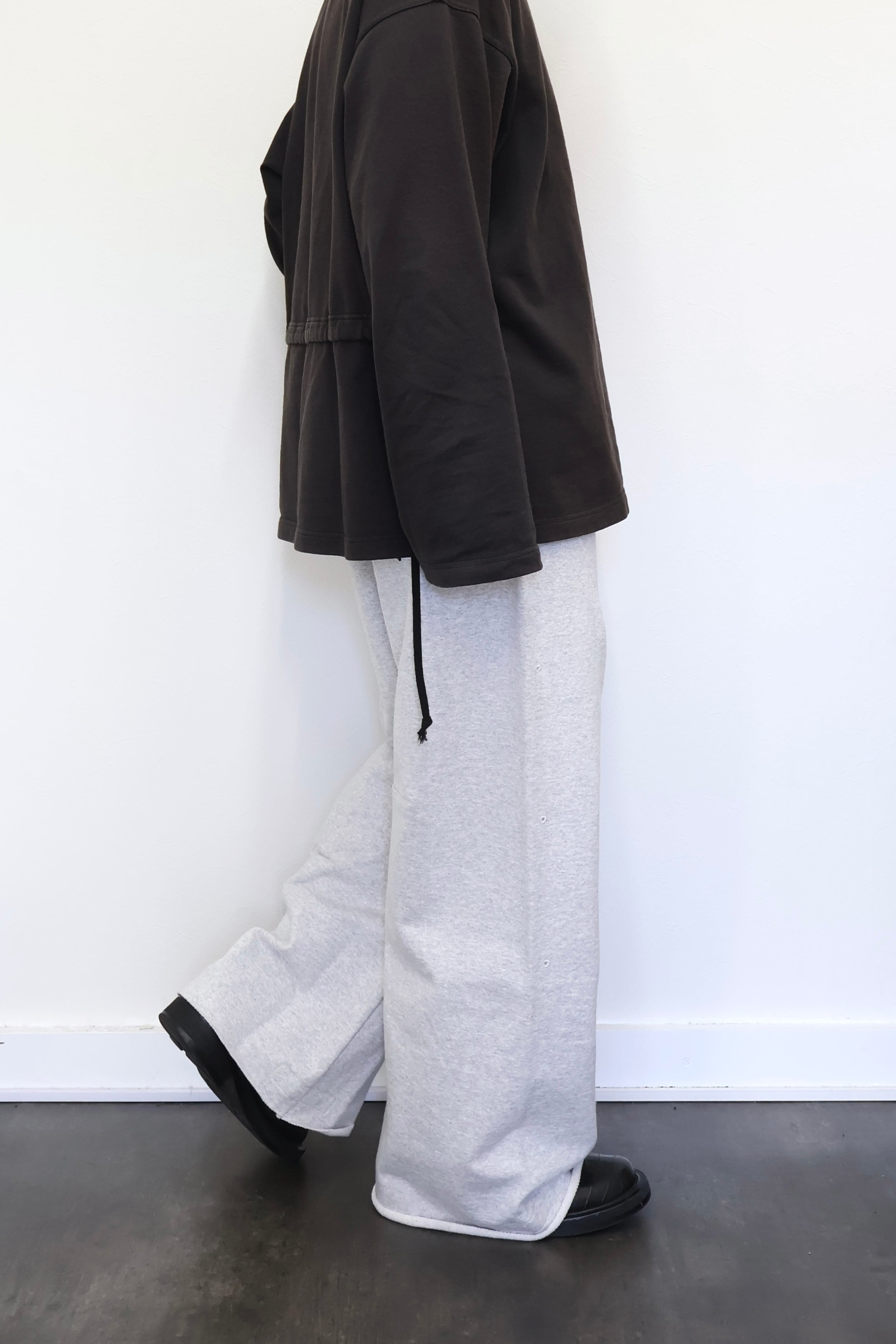 ウエストベルトの折り返しで着用アレンジが可能なスウェットパンツ。ハリ感のある薄手のオリジナル裏毛素材を使用。脇線のないミニマルな構造に、断ち切り仕様の裾とドットボタンを配備し、裾幅の調整が可能。