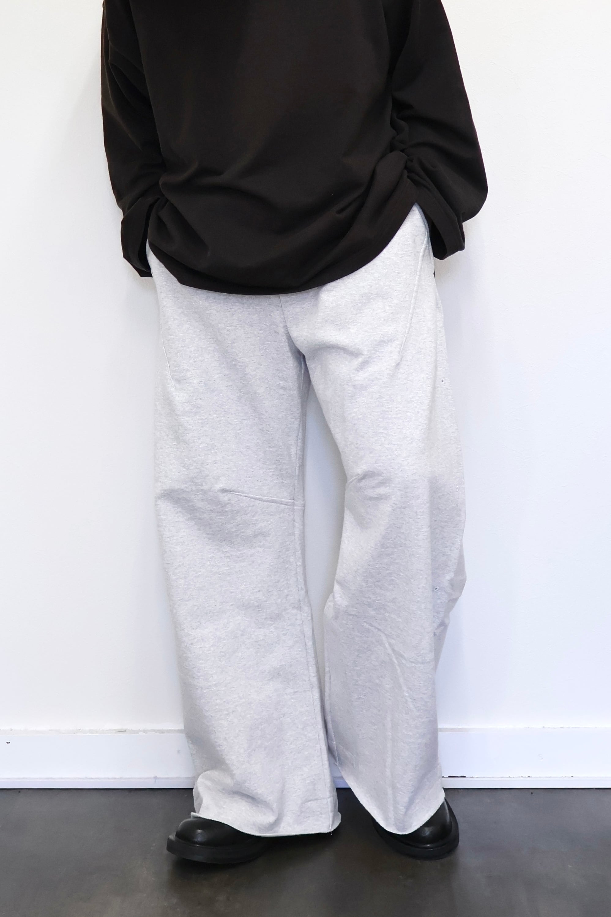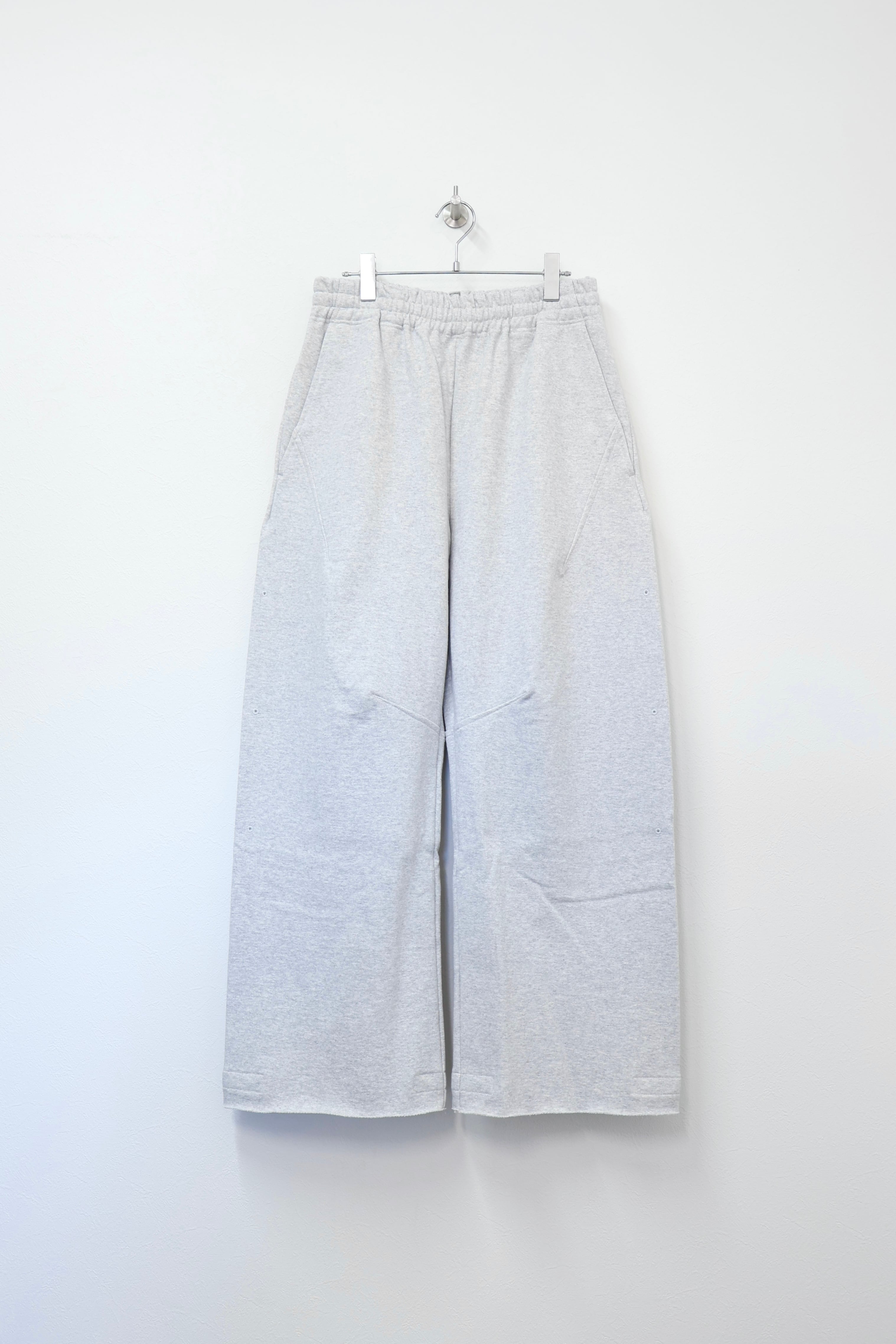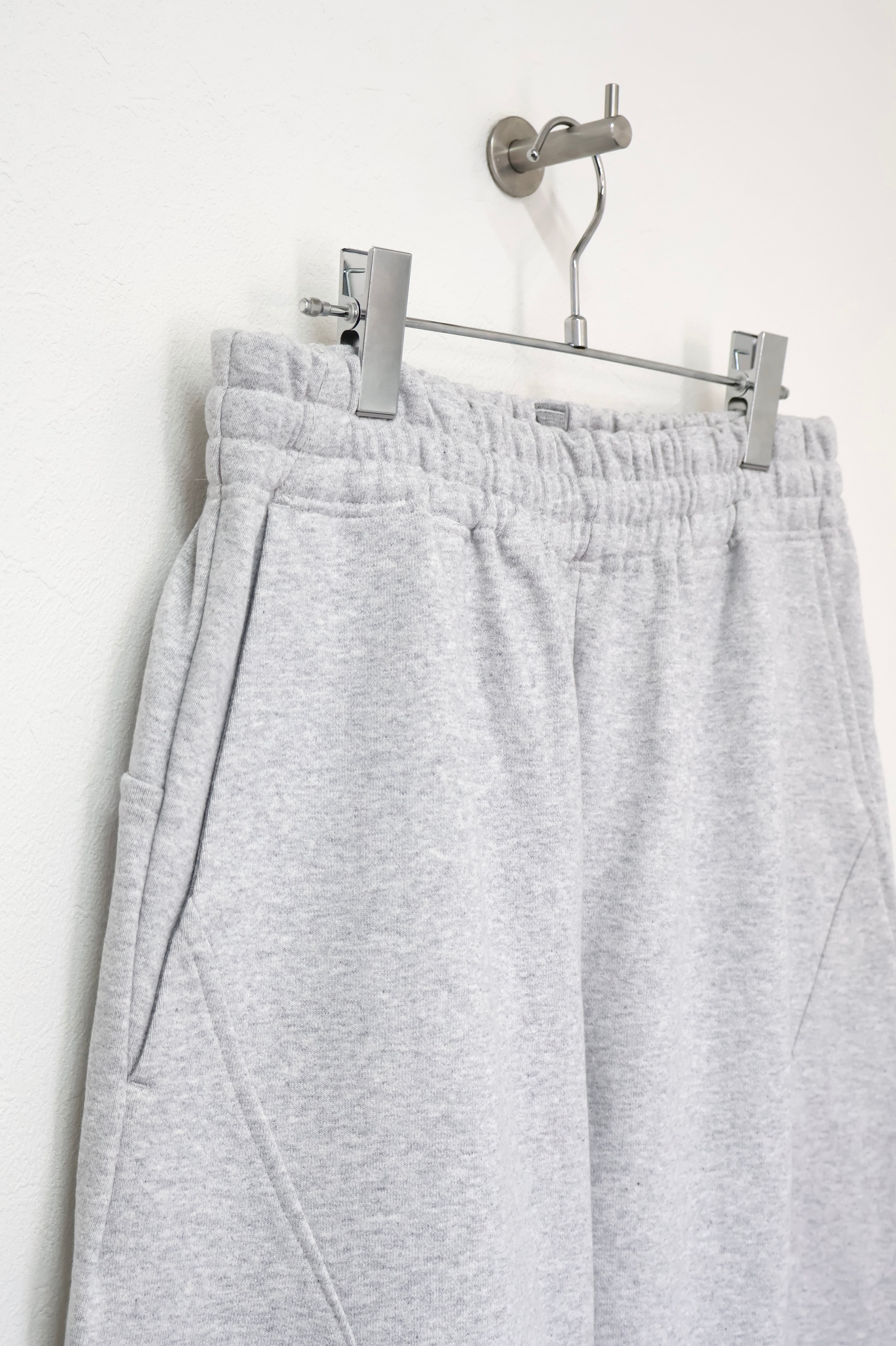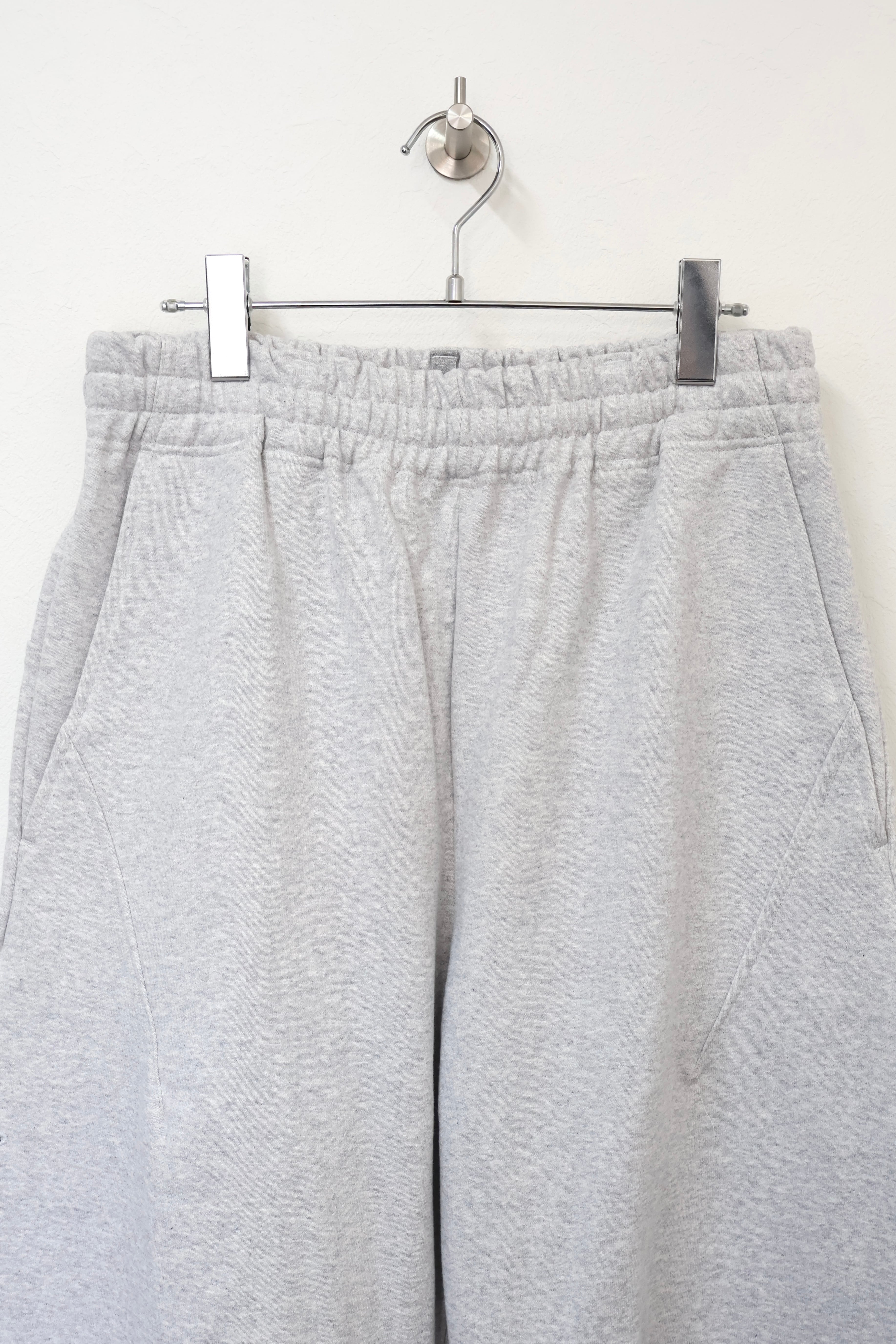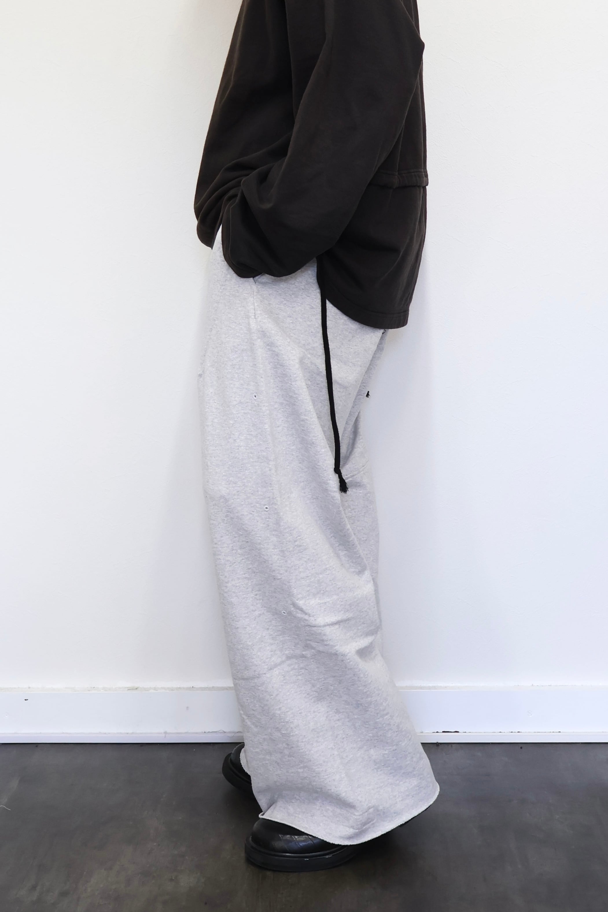 ウエストベルトの折り返しで着用アレンジが可能なスウェットパンツ。ハリ感のある薄手のオリジナル裏毛素材を使用。脇線のないミニマルな構造に、断ち切り仕様の裾とドットボタンを配備し、裾幅の調整が可能。