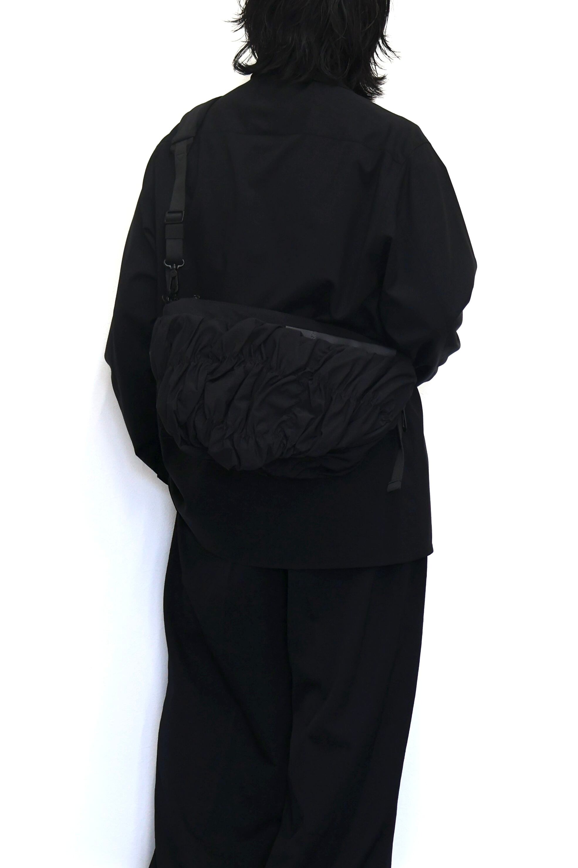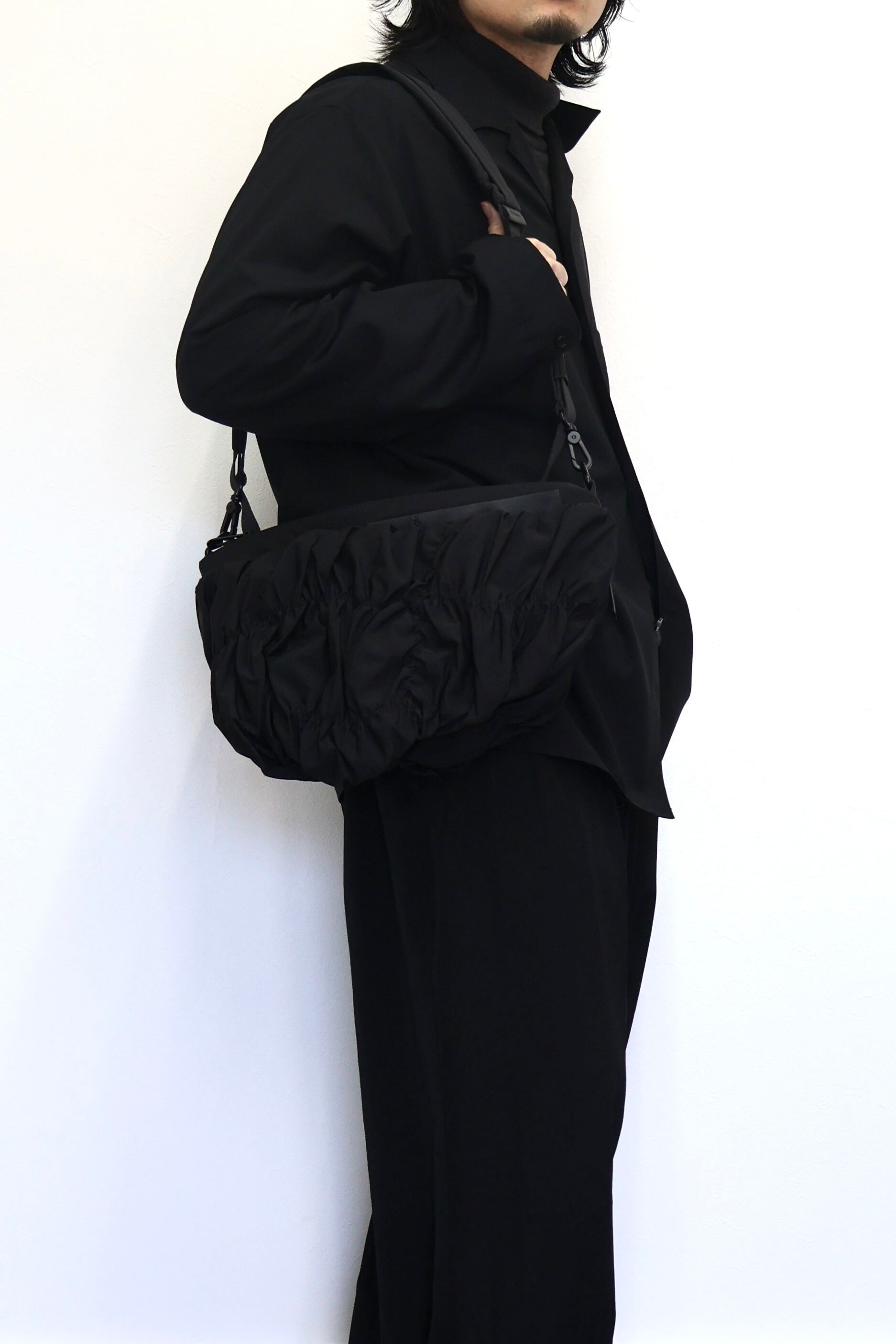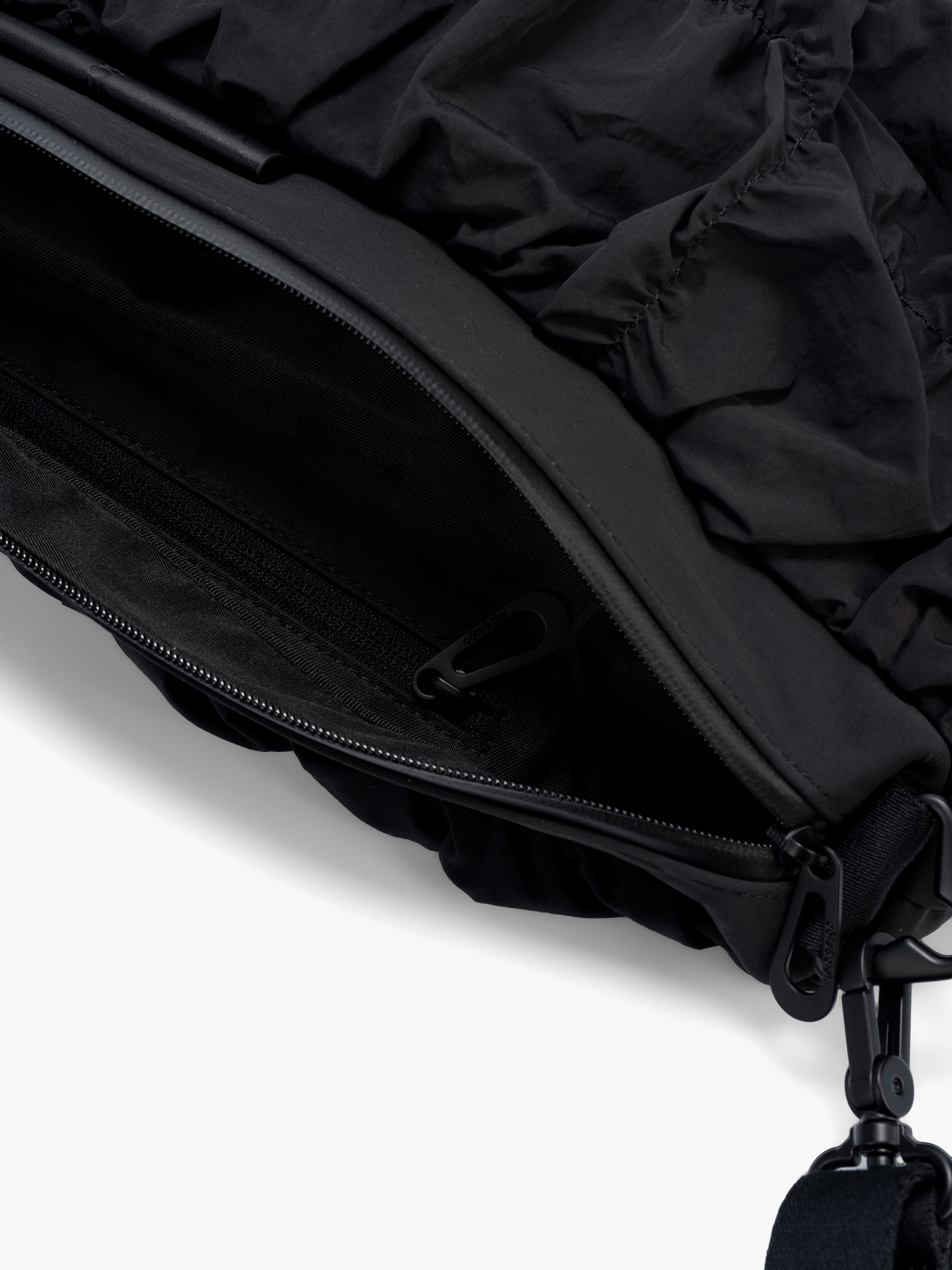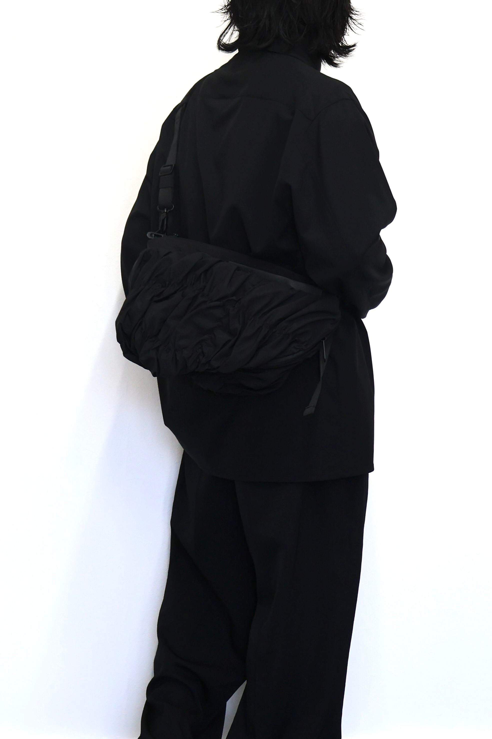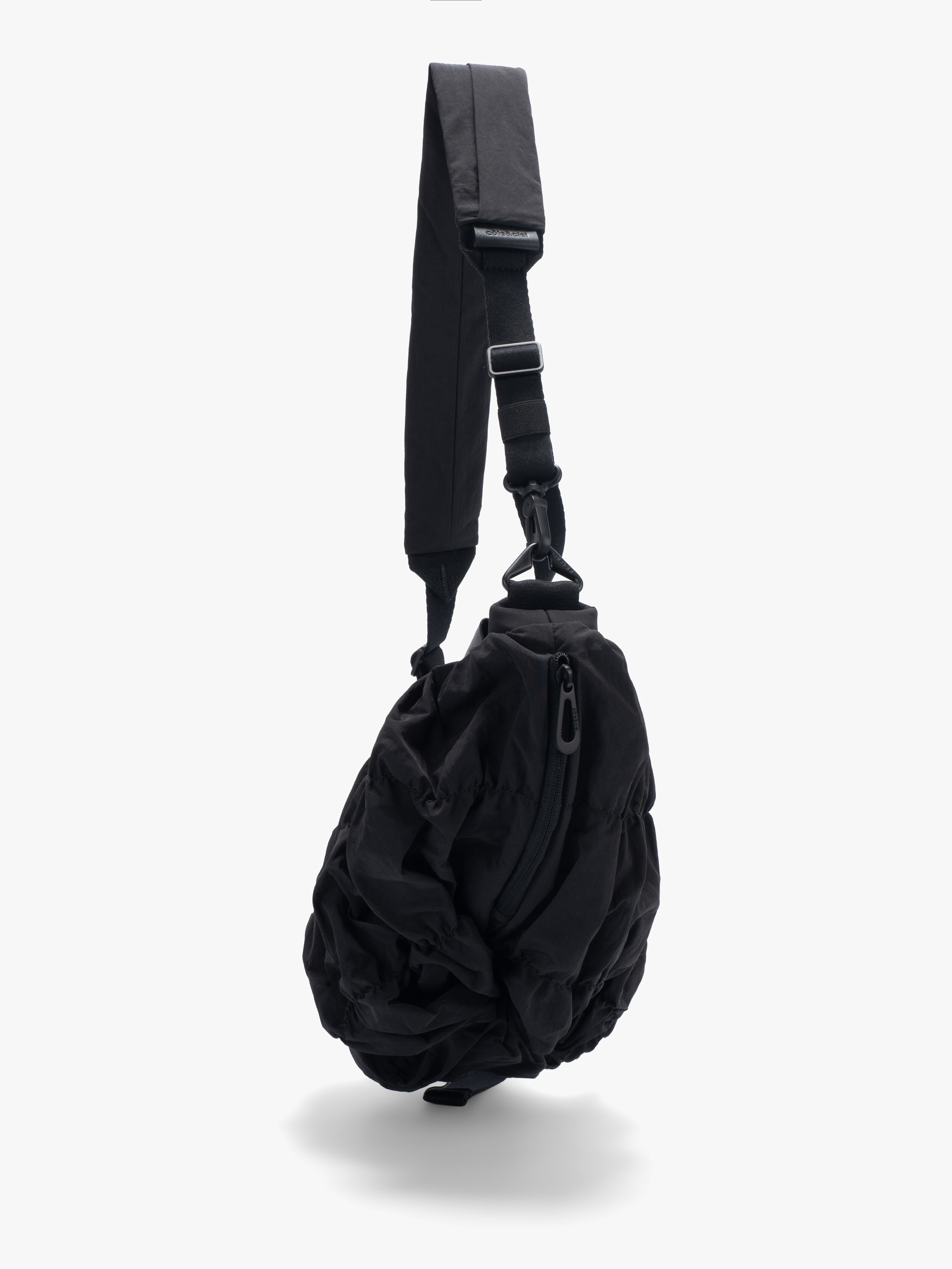「ORNE」は身体の動きに調和するように設計されておりその彫刻的なシルエットが自然に身体のラインに寄り添います。滑らかなナイロンを使用した「Gathered Black」の素材は柔らかく折り目を寄せることで流動的で質感豊かな表情を作り出しています。バッグの底部に施されたわずかな「ひねり」が躍動感を強調。フォルム全体に立体的な奥行きを与えています。メインコンパートメントには撥水ファスナーを採用。外側のレザータグにはcôte&cielのブランドロゴが型押し。また取り外し可能なファスナー付きの「ADDA」ショルダーストラップは単体でミニマルなクロスボディバッグとしてもお使いいただけます。