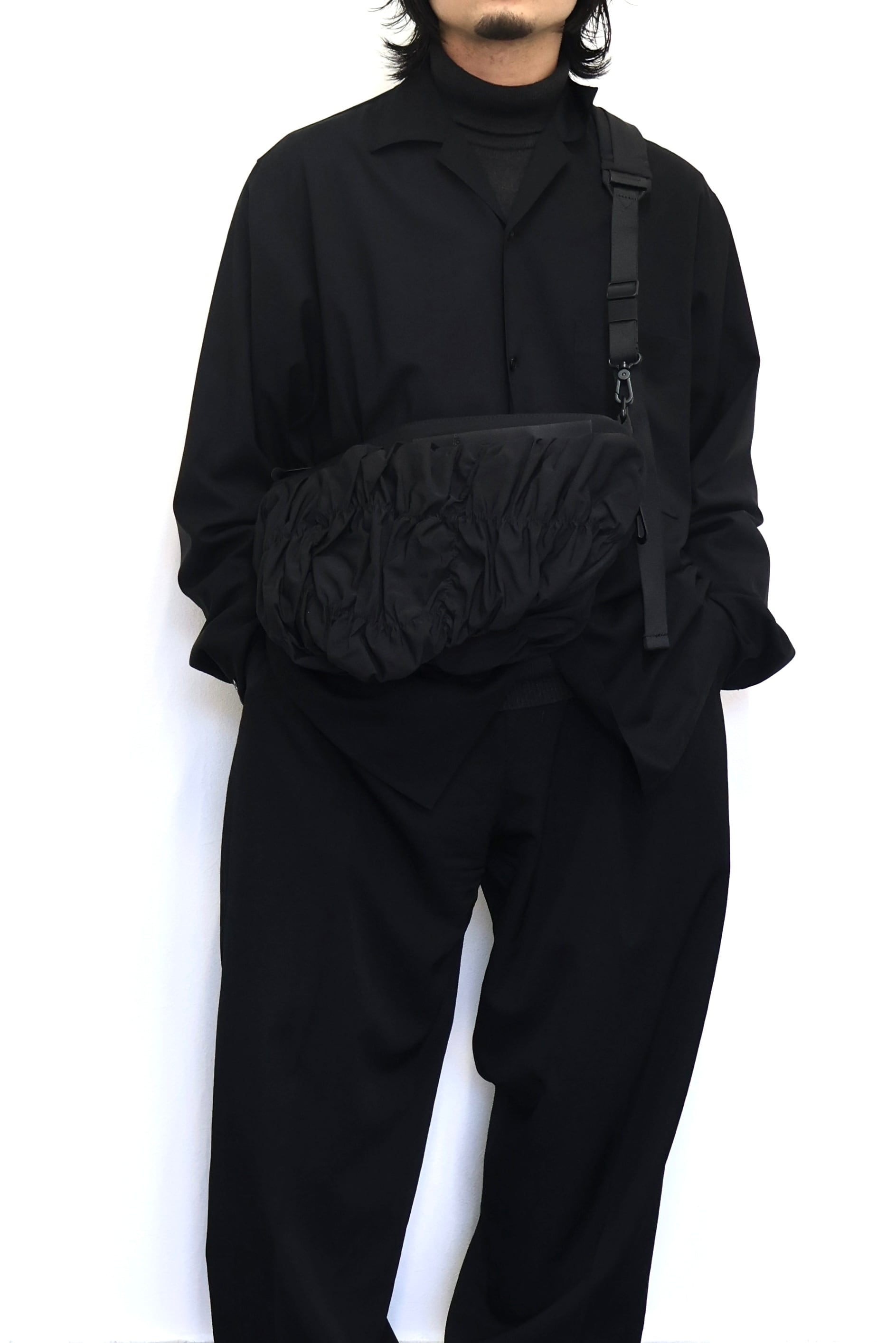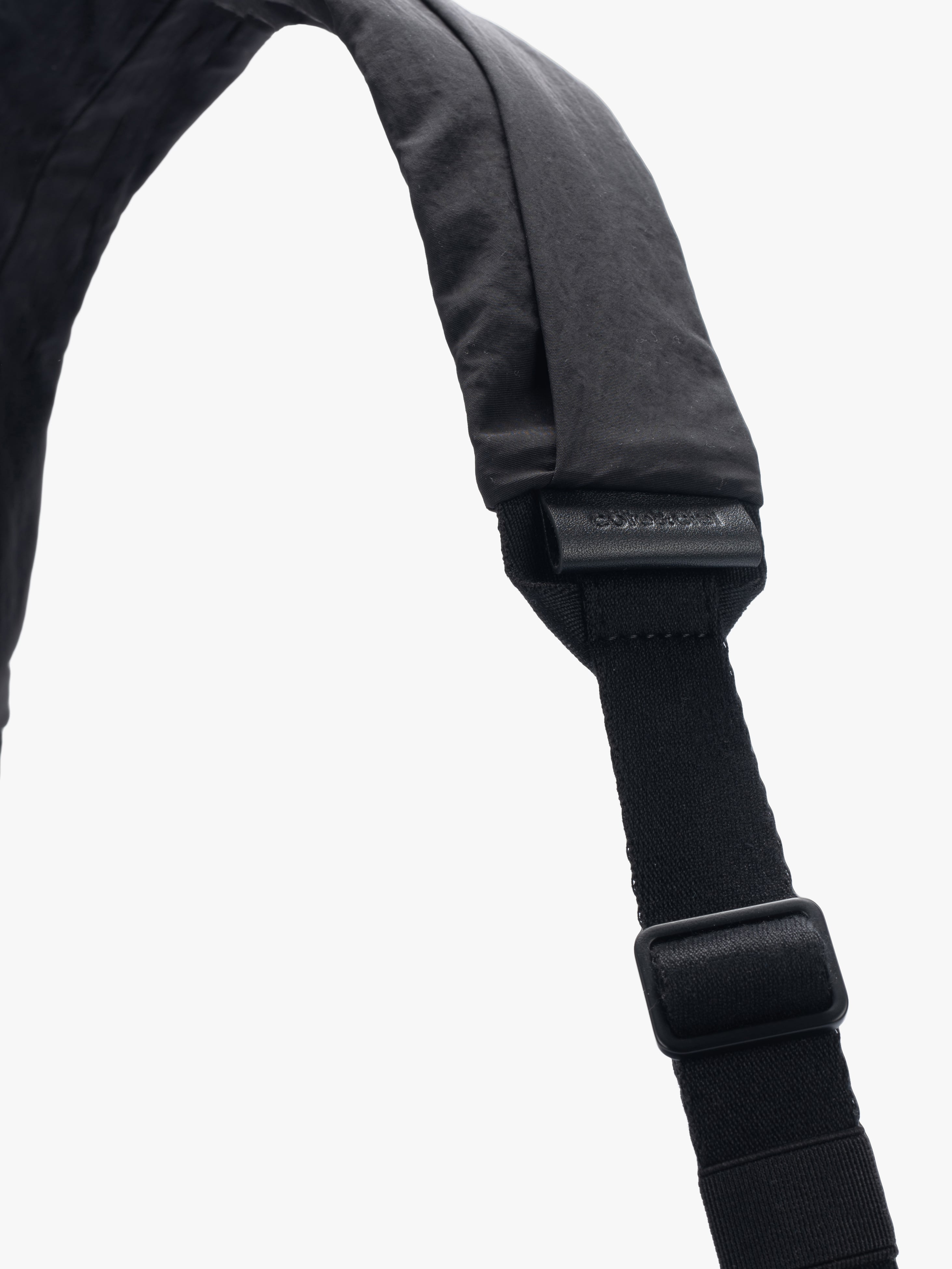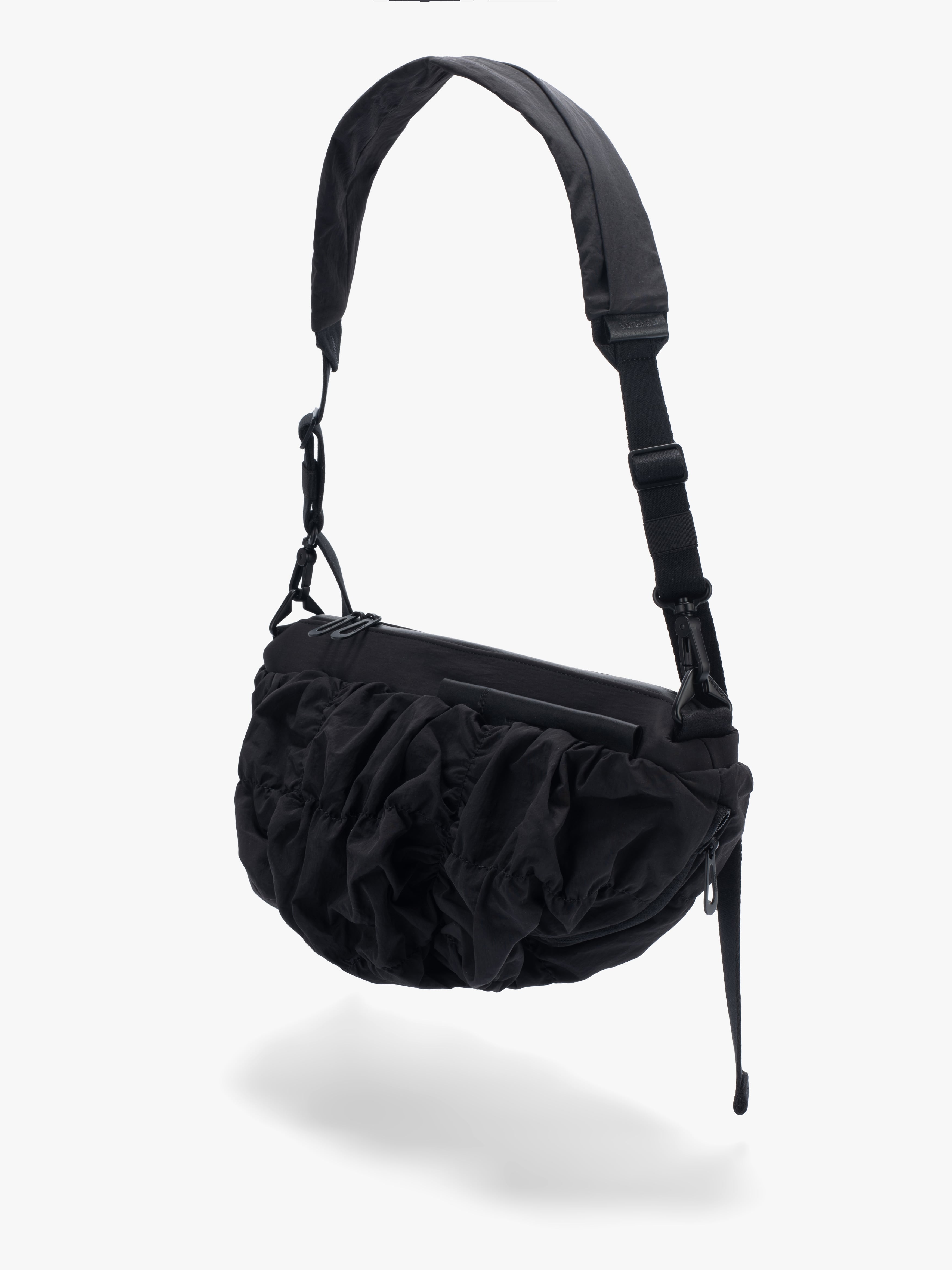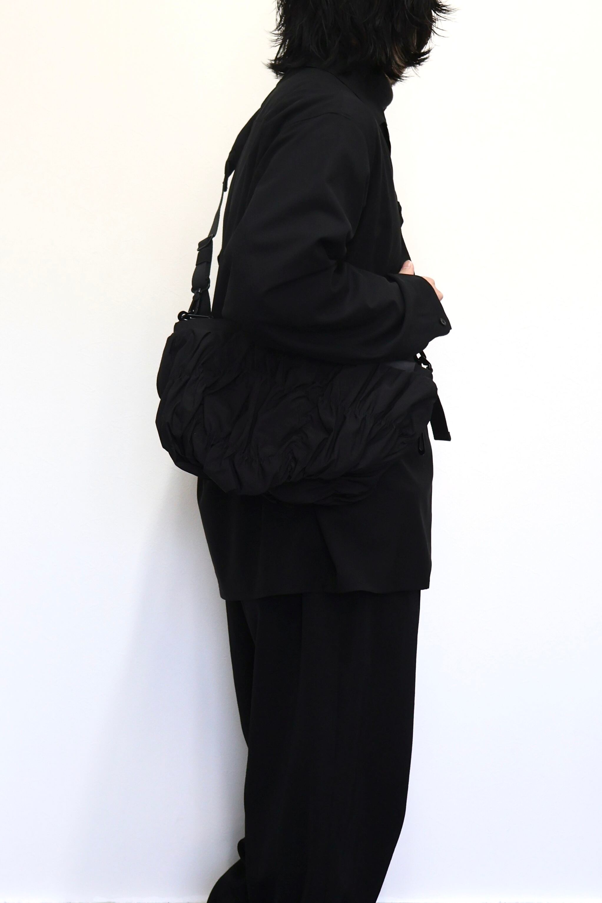 「ORNE」は身体の動きに調和するように設計されておりその彫刻的なシルエットが自然に身体のラインに寄り添います。滑らかなナイロンを使用した「Gathered Black」の素材は柔らかく折り目を寄せることで流動的で質感豊かな表情を作り出しています。バッグの底部に施されたわずかな「ひねり」が躍動感を強調。フォルム全体に立体的な奥行きを与えています。メインコンパートメントには撥水ファスナーを採用。外側のレザータグにはcôte&cielのブランドロゴが型押し。また取り外し可能なファスナー付きの「ADDA」ショルダーストラップは単体でミニマルなクロスボディバッグとしてもお使いいただけます。