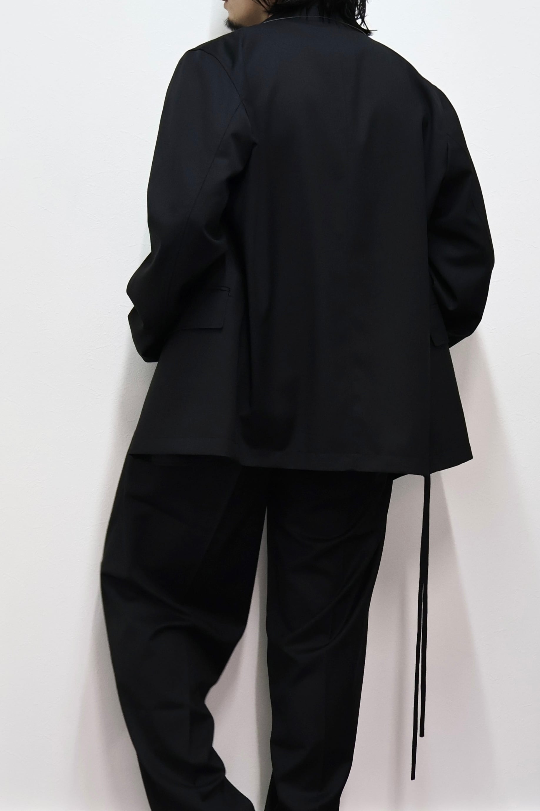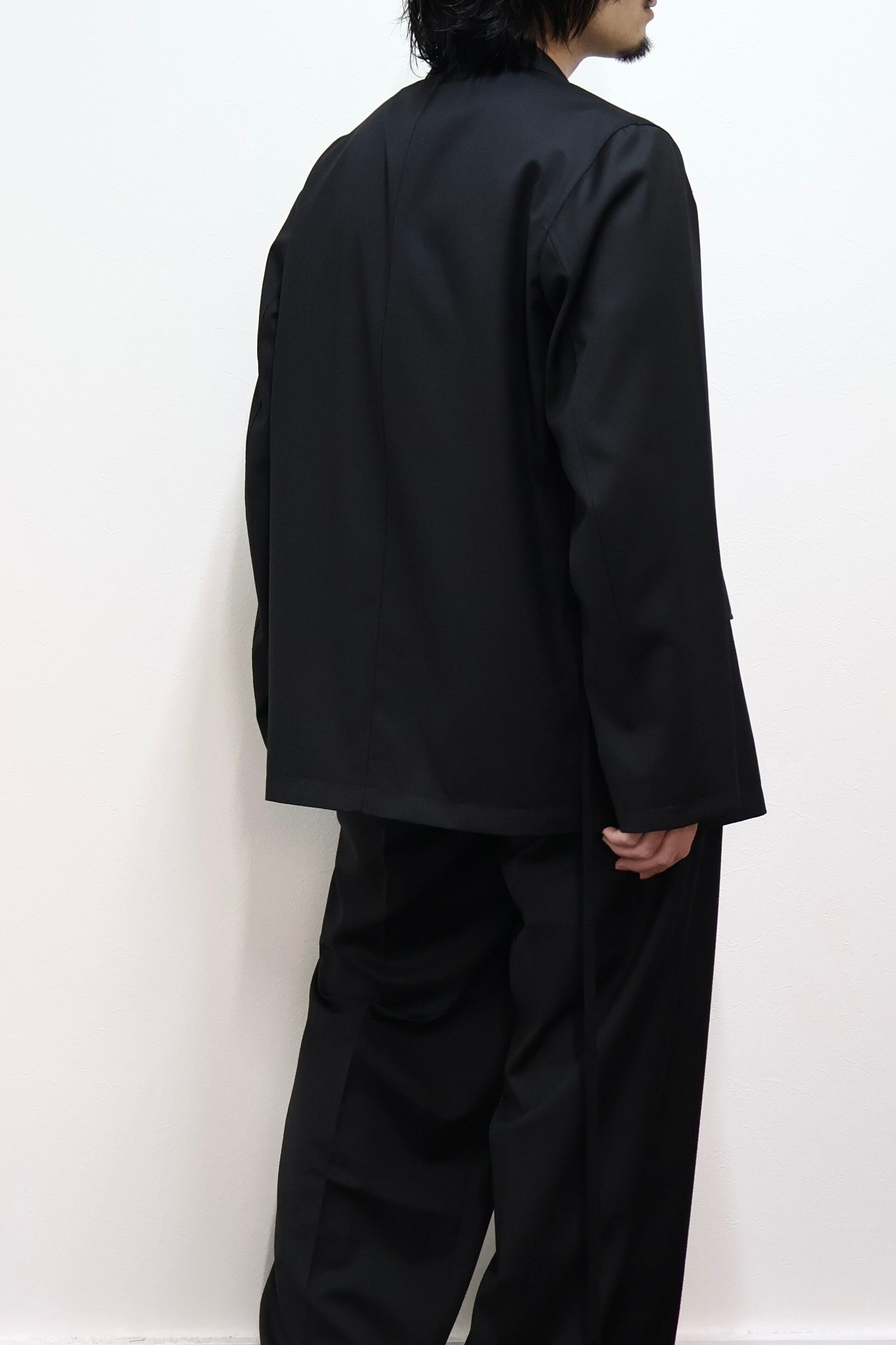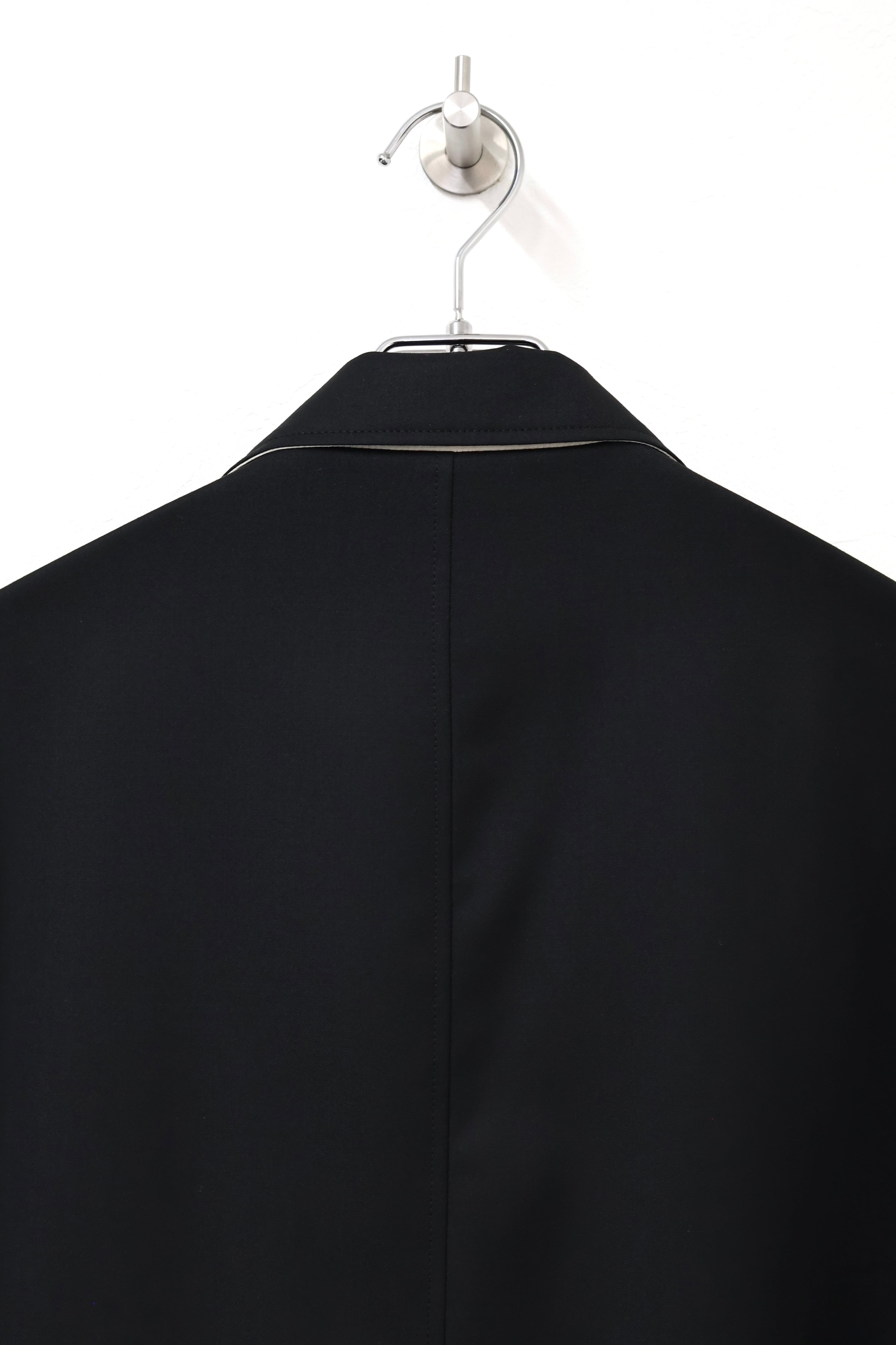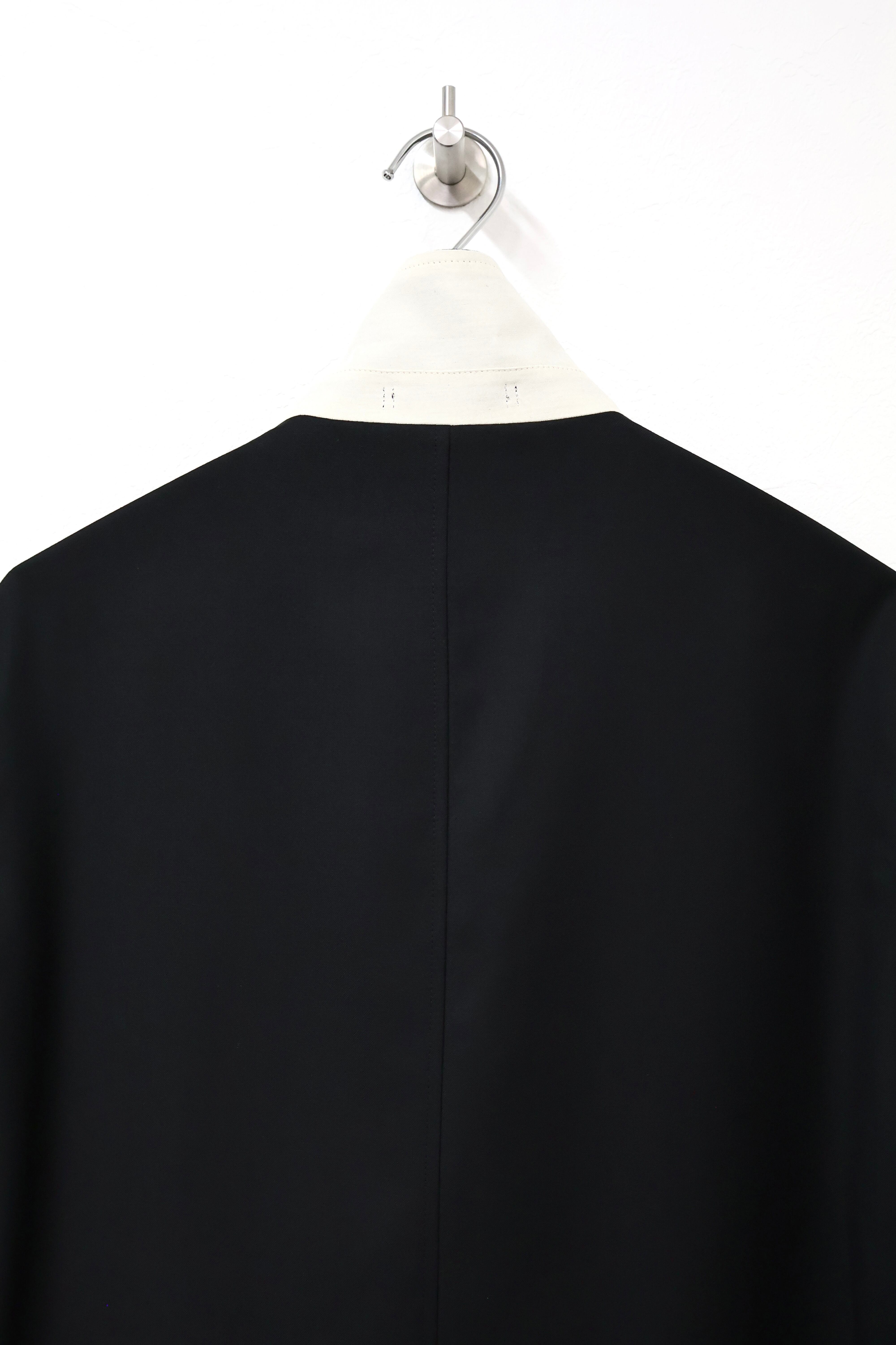 サイズ感は少し肩を落としつつ、身幅広めにとったのリラックスフィット。ソフト感を重視し、芯は極力薄いものを採用。肩パットや雪わたも排除して制作しており羽織のような雰囲気に。