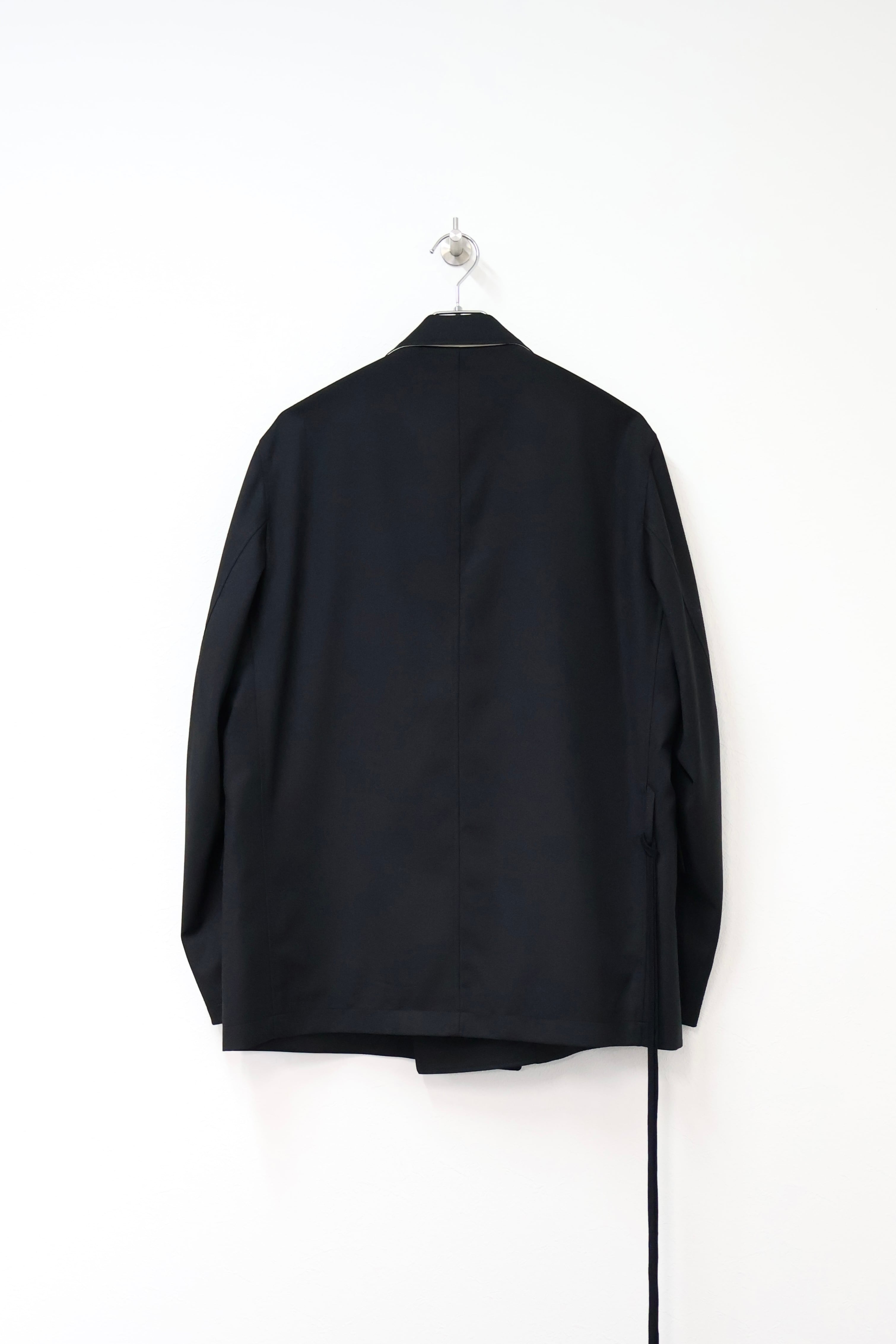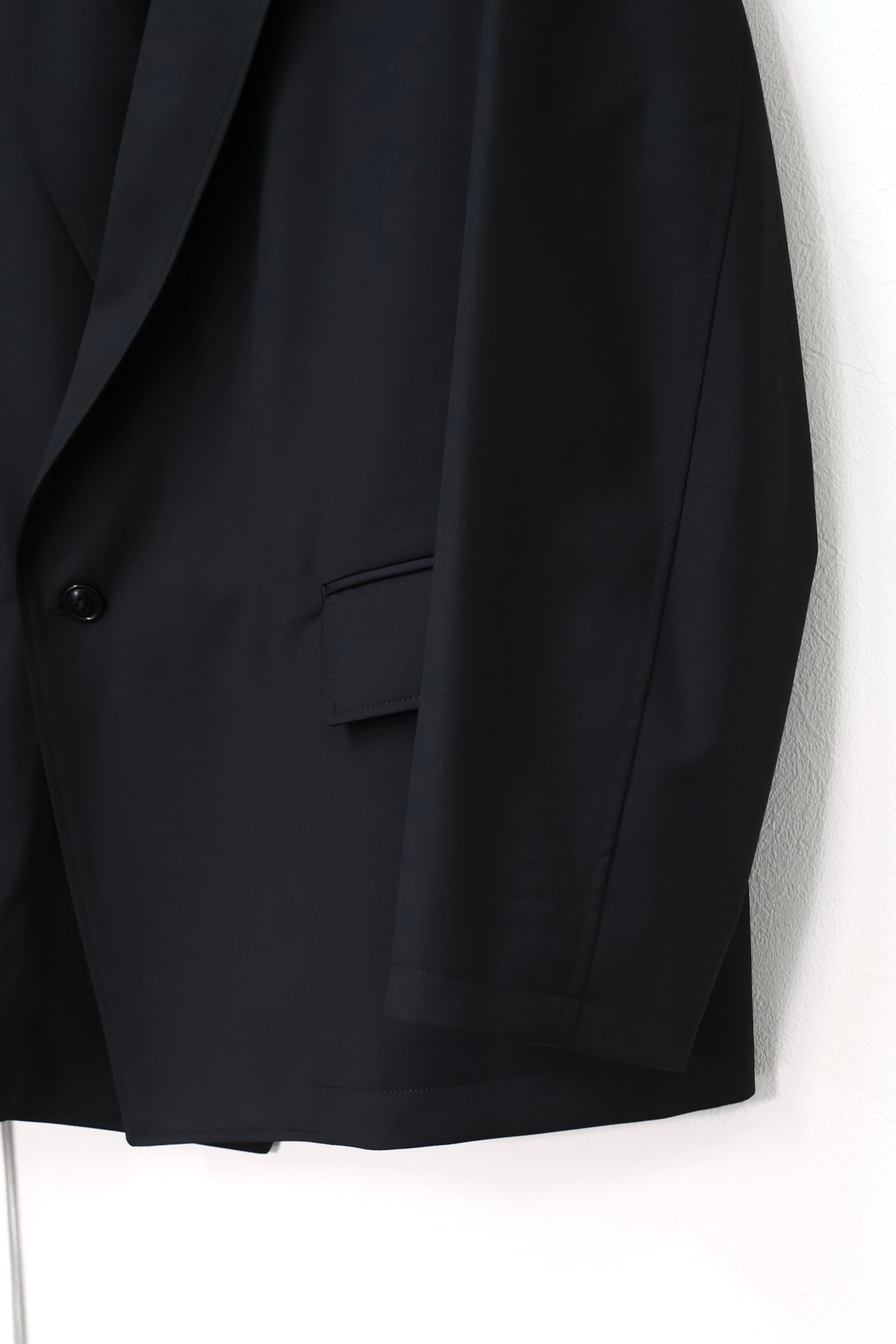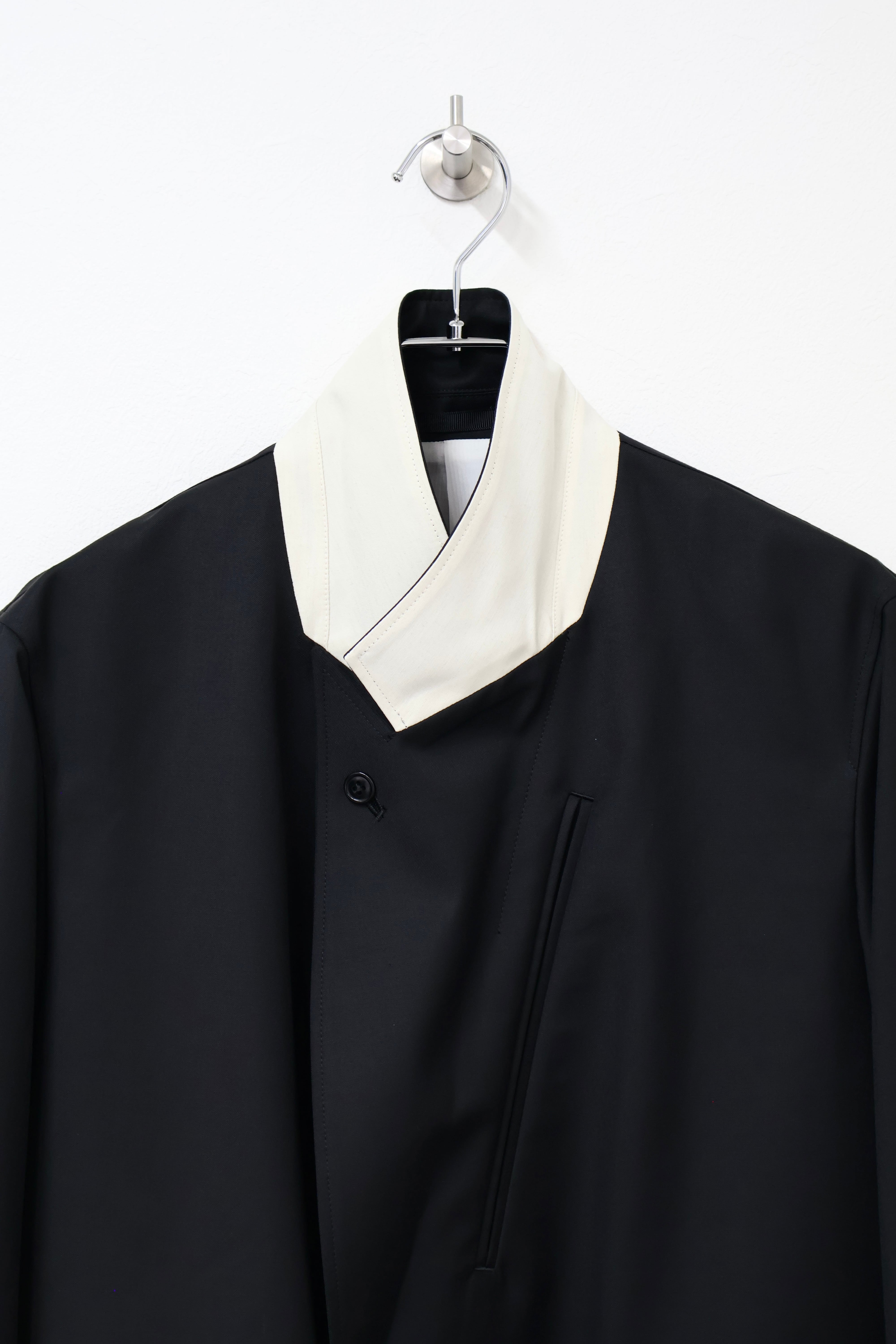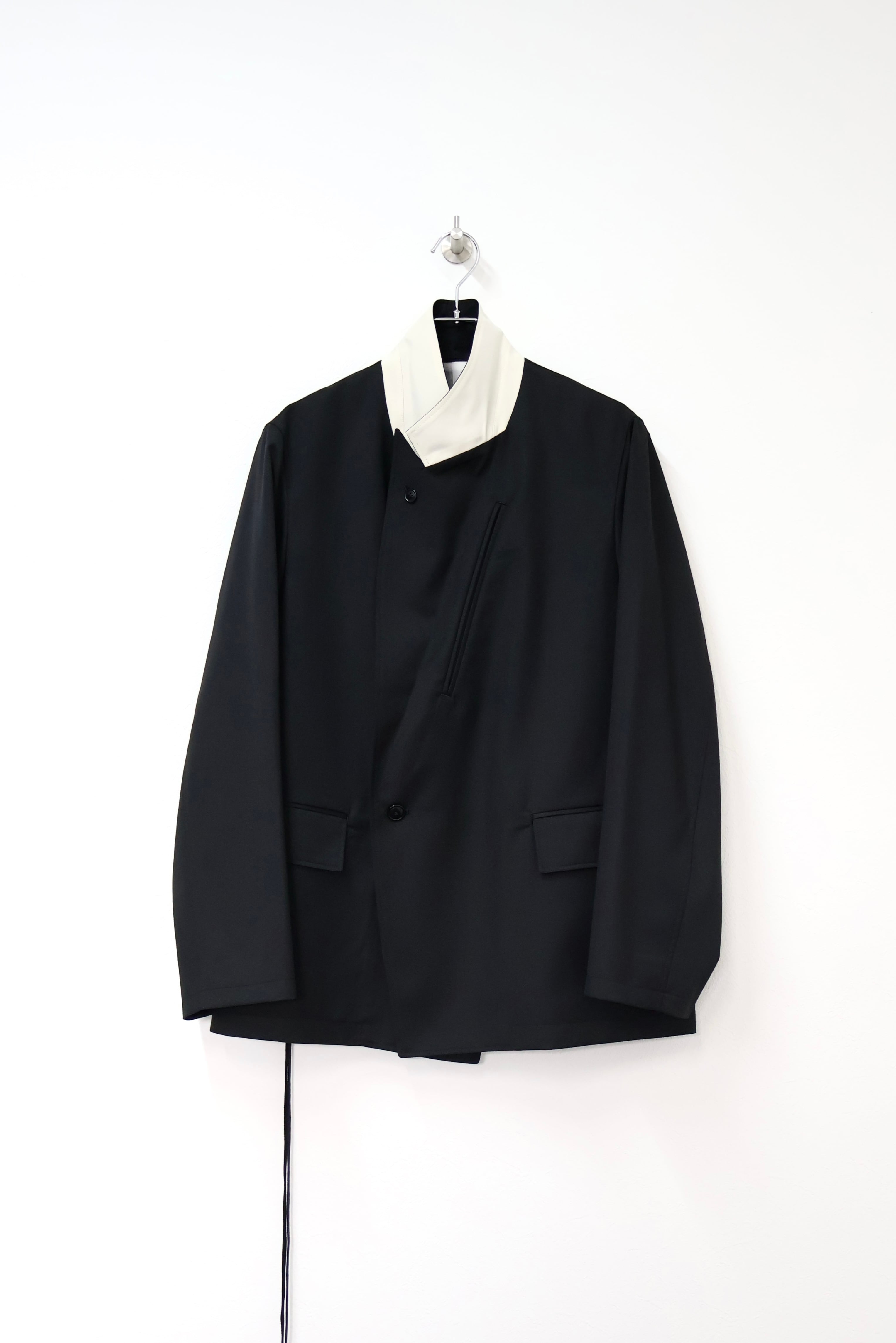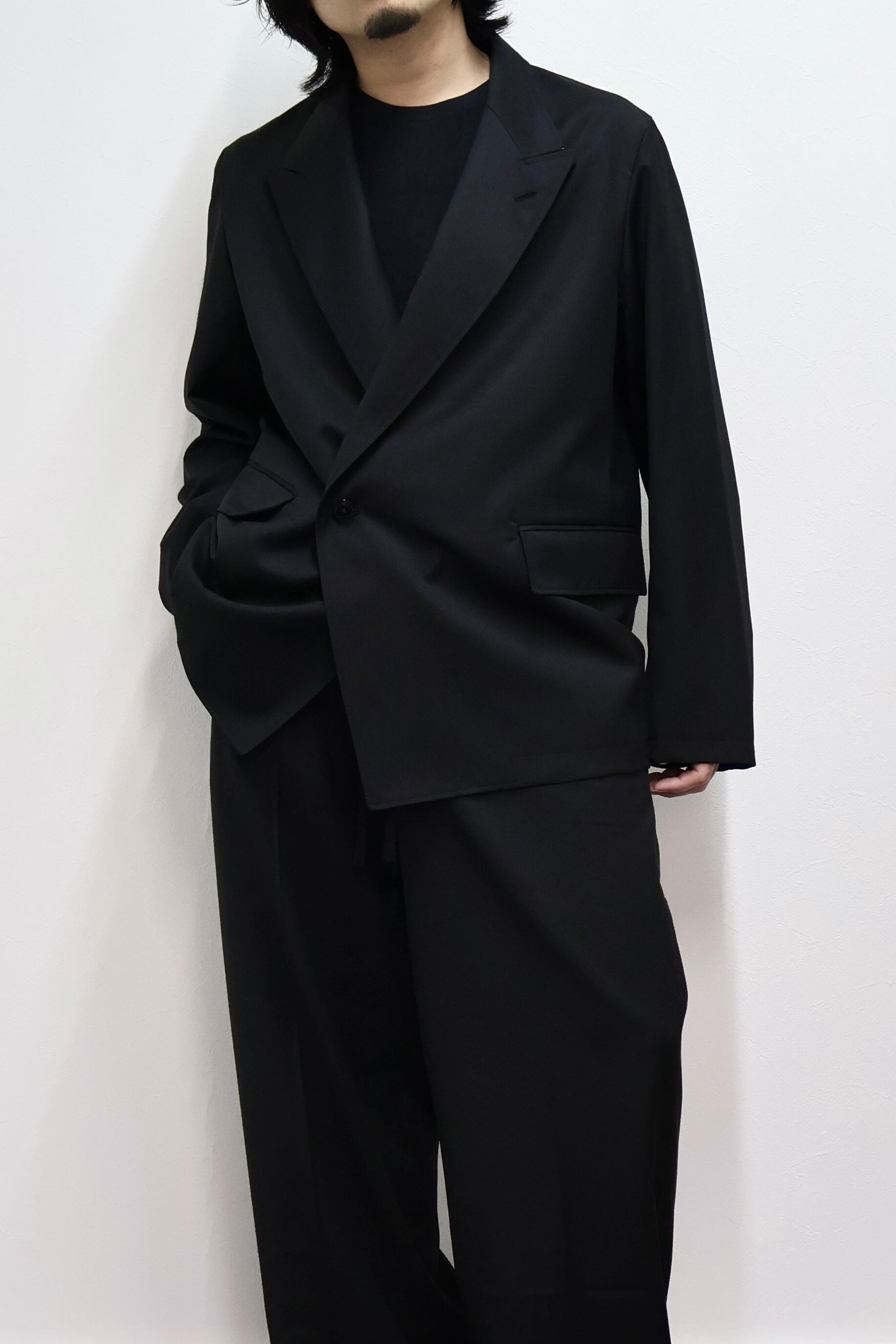 サイズ感は少し肩を落としつつ、身幅広めにとったのリラックスフィット。ソフト感を重視し、芯は極力薄いものを採用。肩パットや雪わたも排除して制作しており羽織のような雰囲気に。