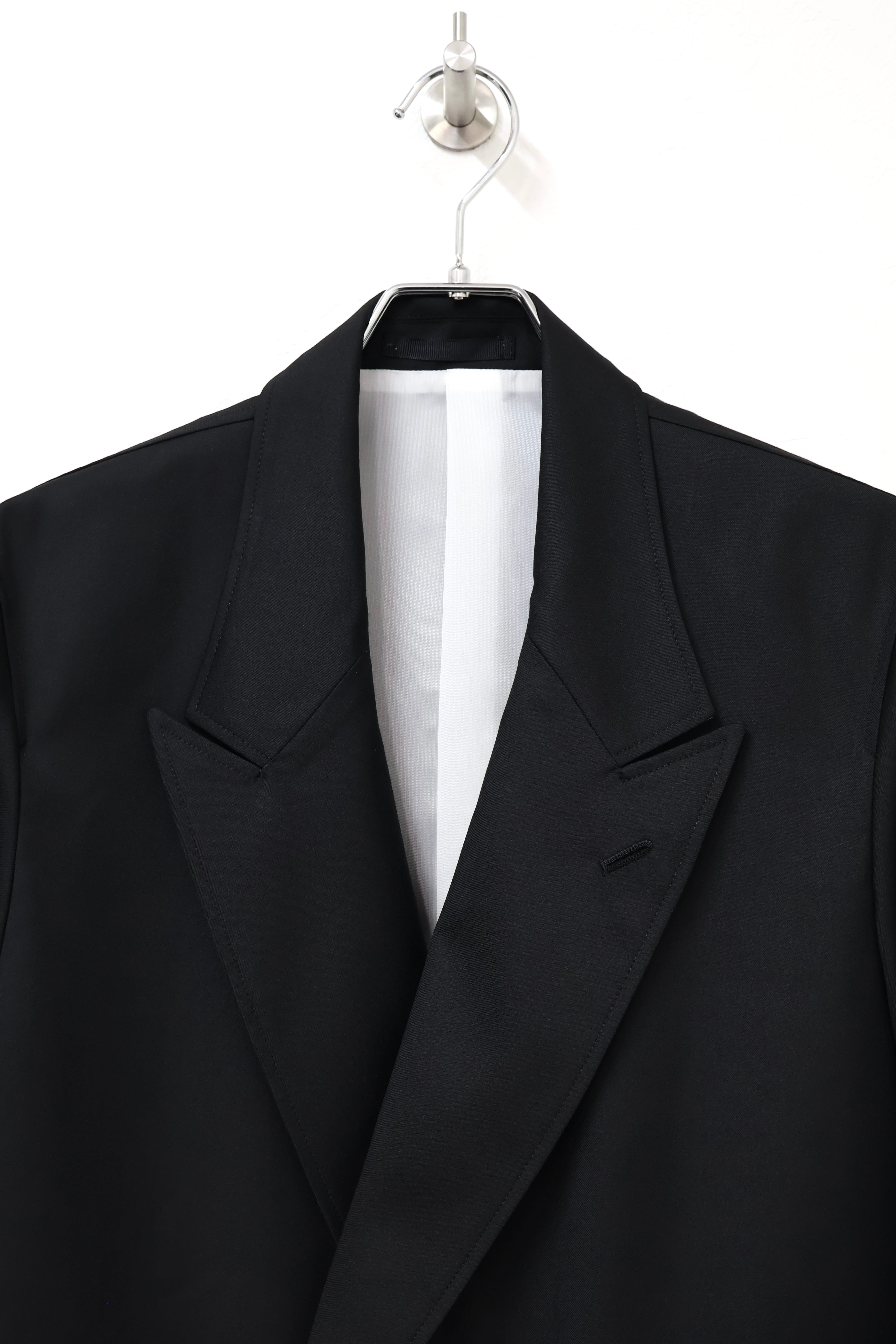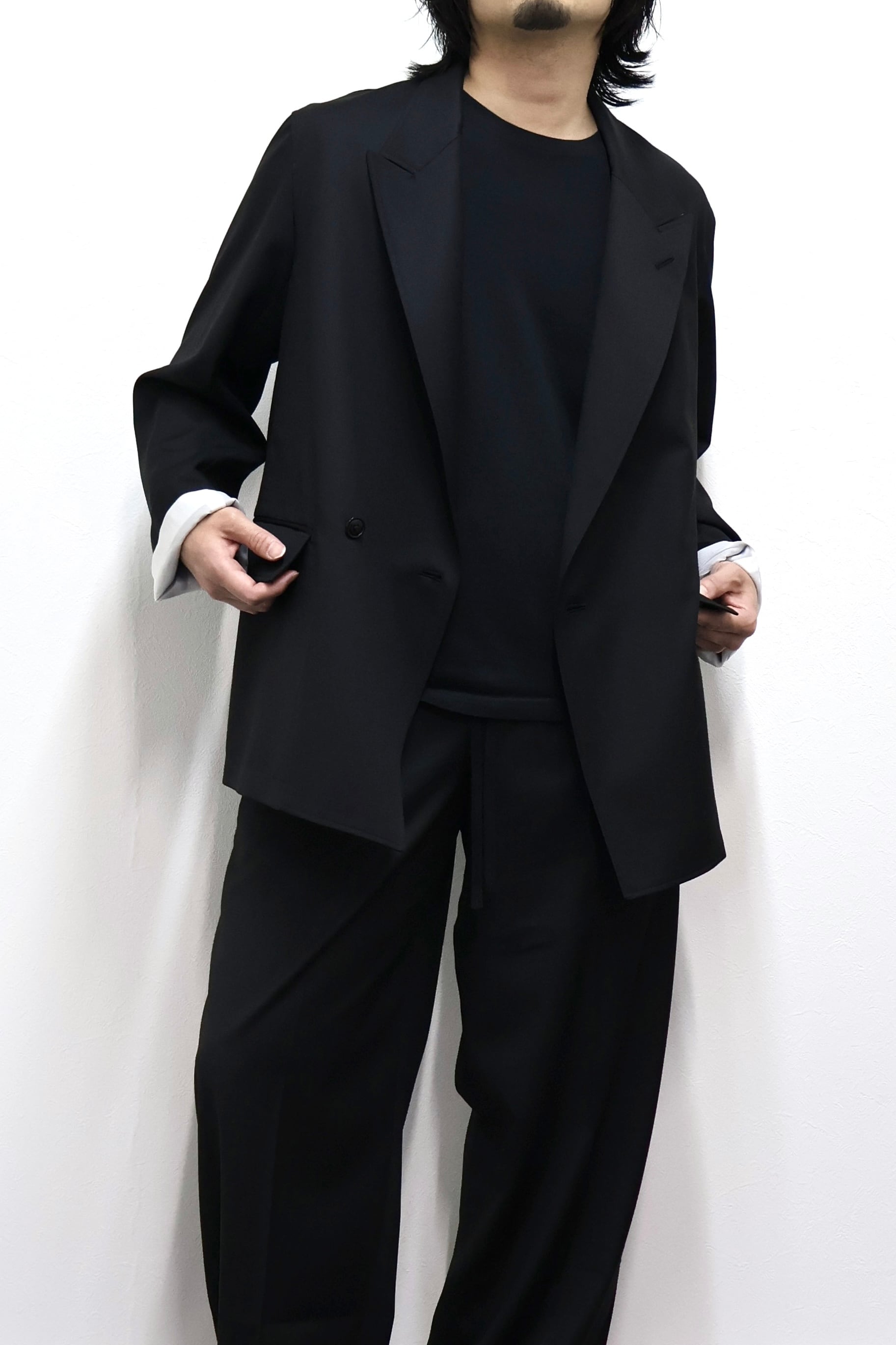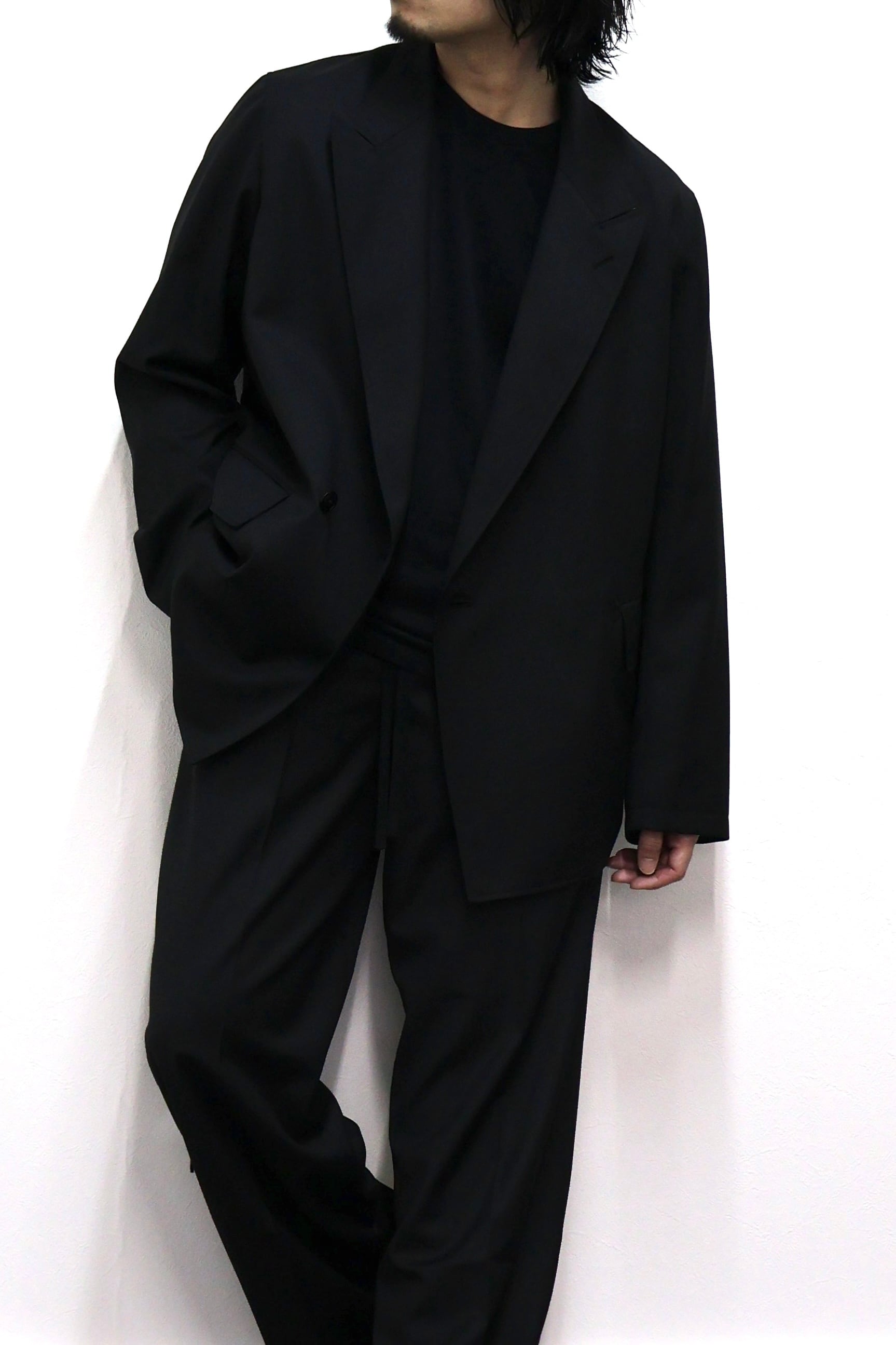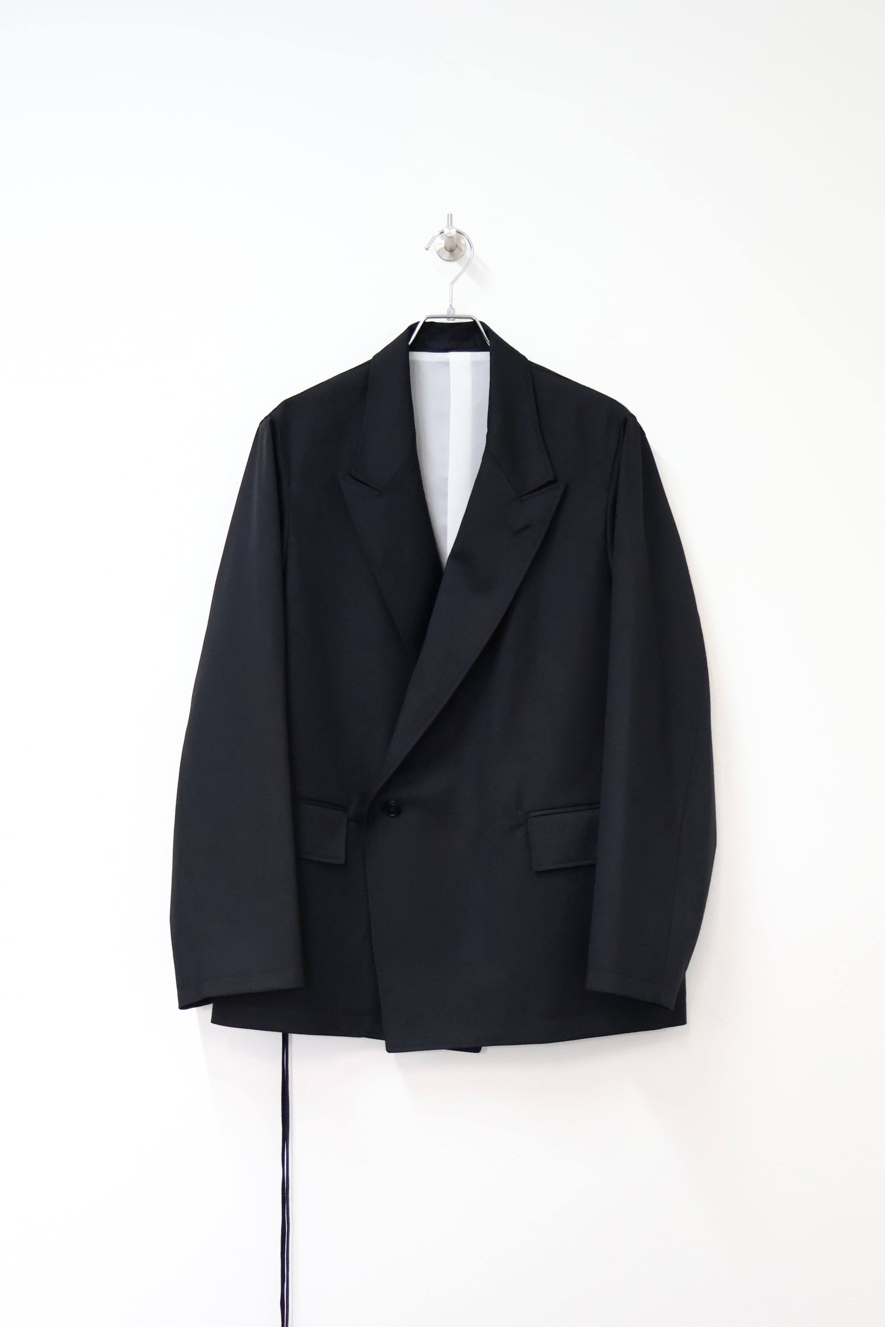 サイズ感は少し肩を落としつつ、身幅広めにとったのリラックスフィット。ソフト感を重視し、芯は極力薄いものを採用。肩パットや雪わたも排除して制作しており羽織のような雰囲気に。