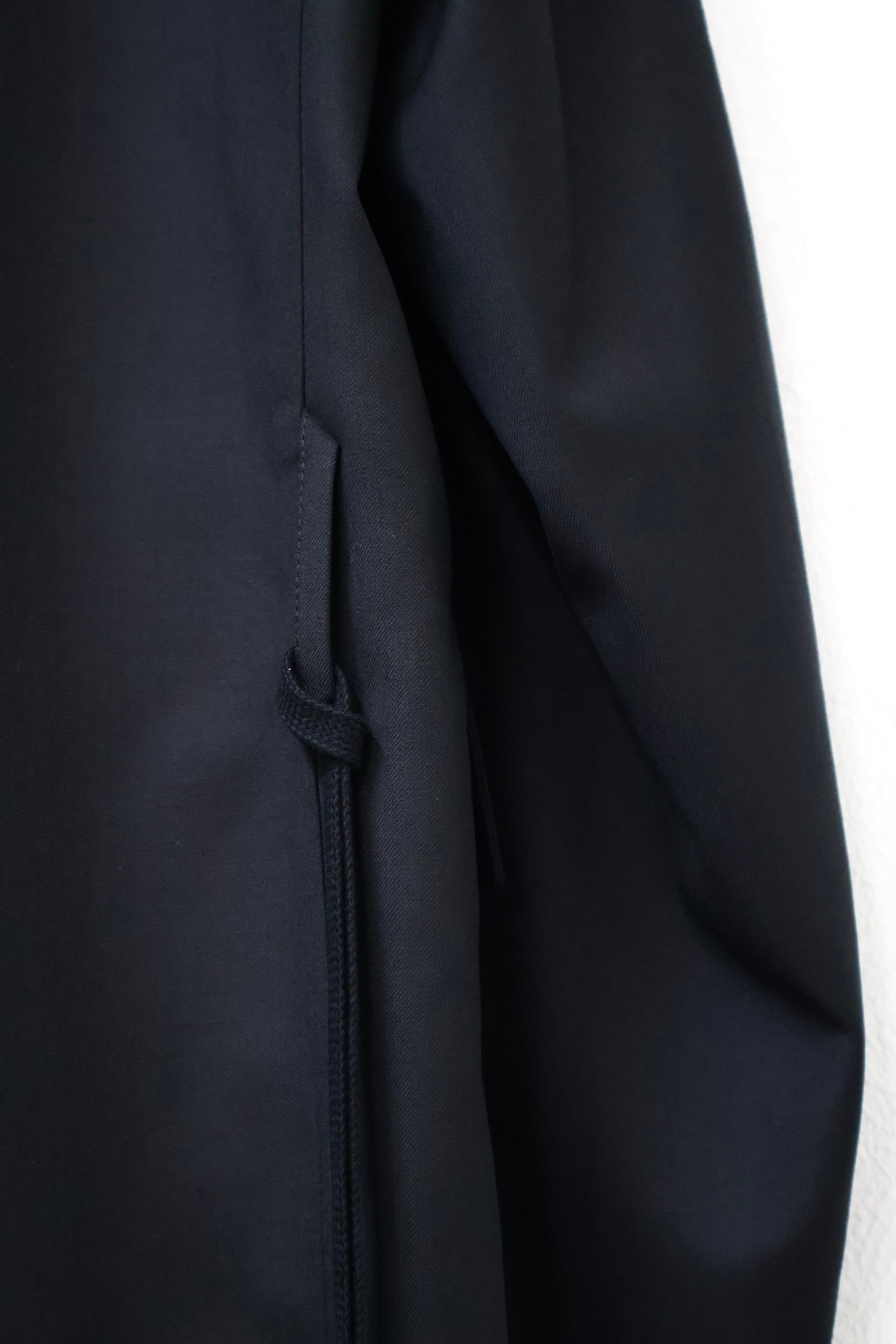 生地はウールにポリエステルとレーヨンを組み合わせて織り上げたテクニカルツイルを採用。ウールの質感にポリエステルの高機能を組み合わせた通年着用可能なイージーケア素材です。