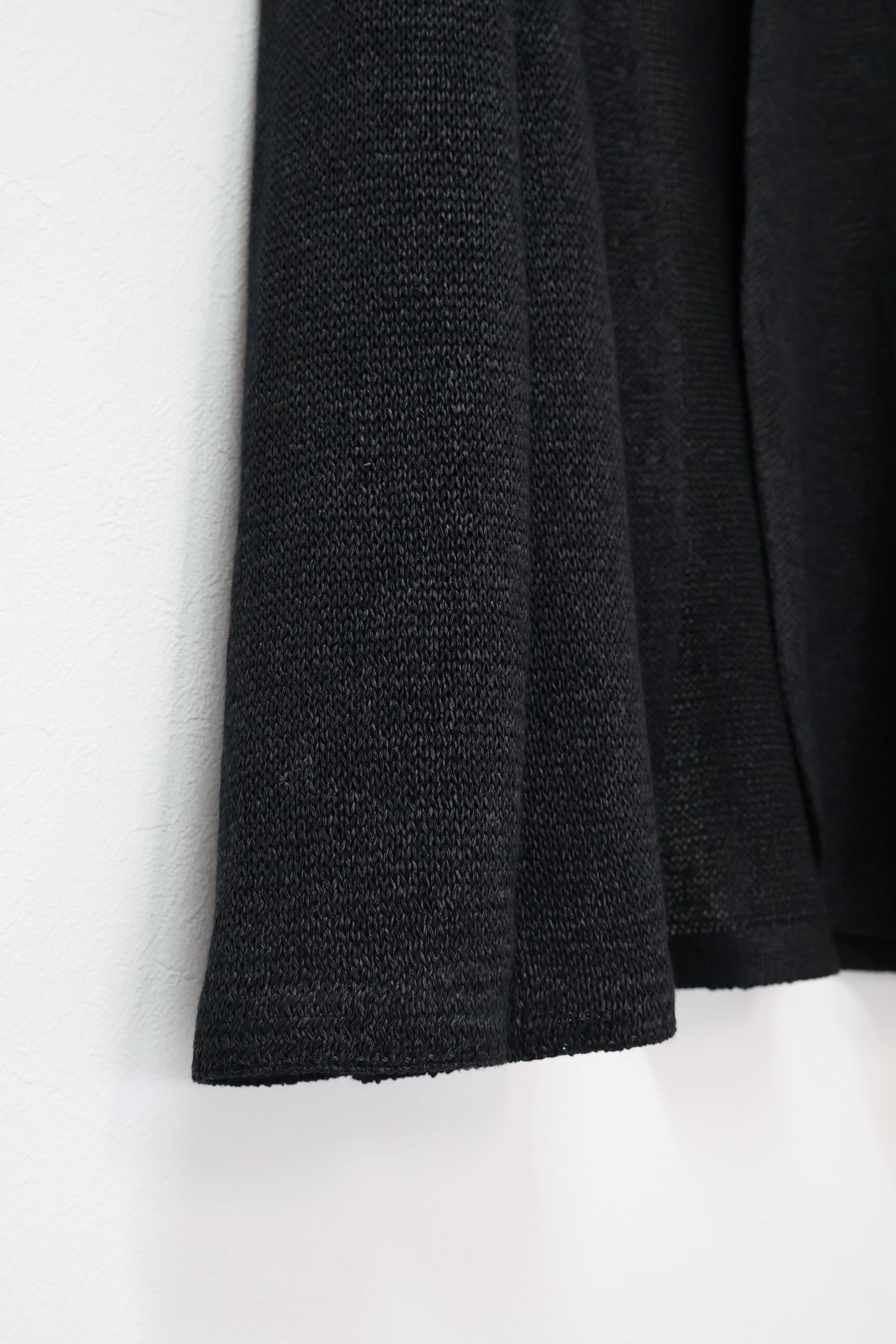 パルプ原料の” 和紙” と木材パルプ原料の “モダール” レーヨンを撚糸した ECO と上品な顔を両立させた和紙素材。 適度なハリ感と少しの落ち感、光沢感の美しさに加え、手洗いでのイージー ケアも可能。ローゲージ天竺ニット。シンプルなノーカラージャケットは、 ボタンレスでも首、肩回りが抜けにくく、美しく見えるパターンラインで、 良い意味でニットらしくない顔に仕上がりました。