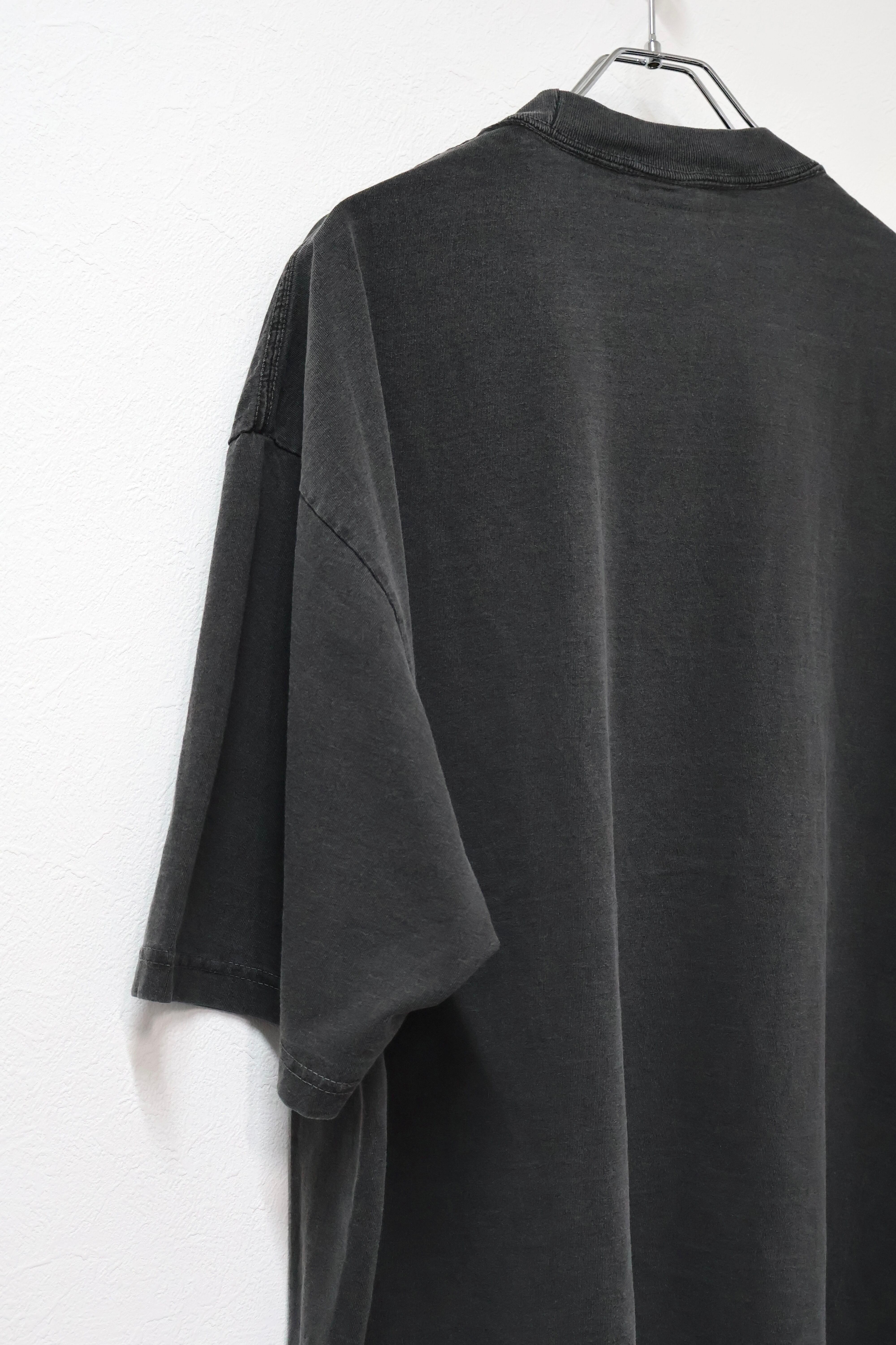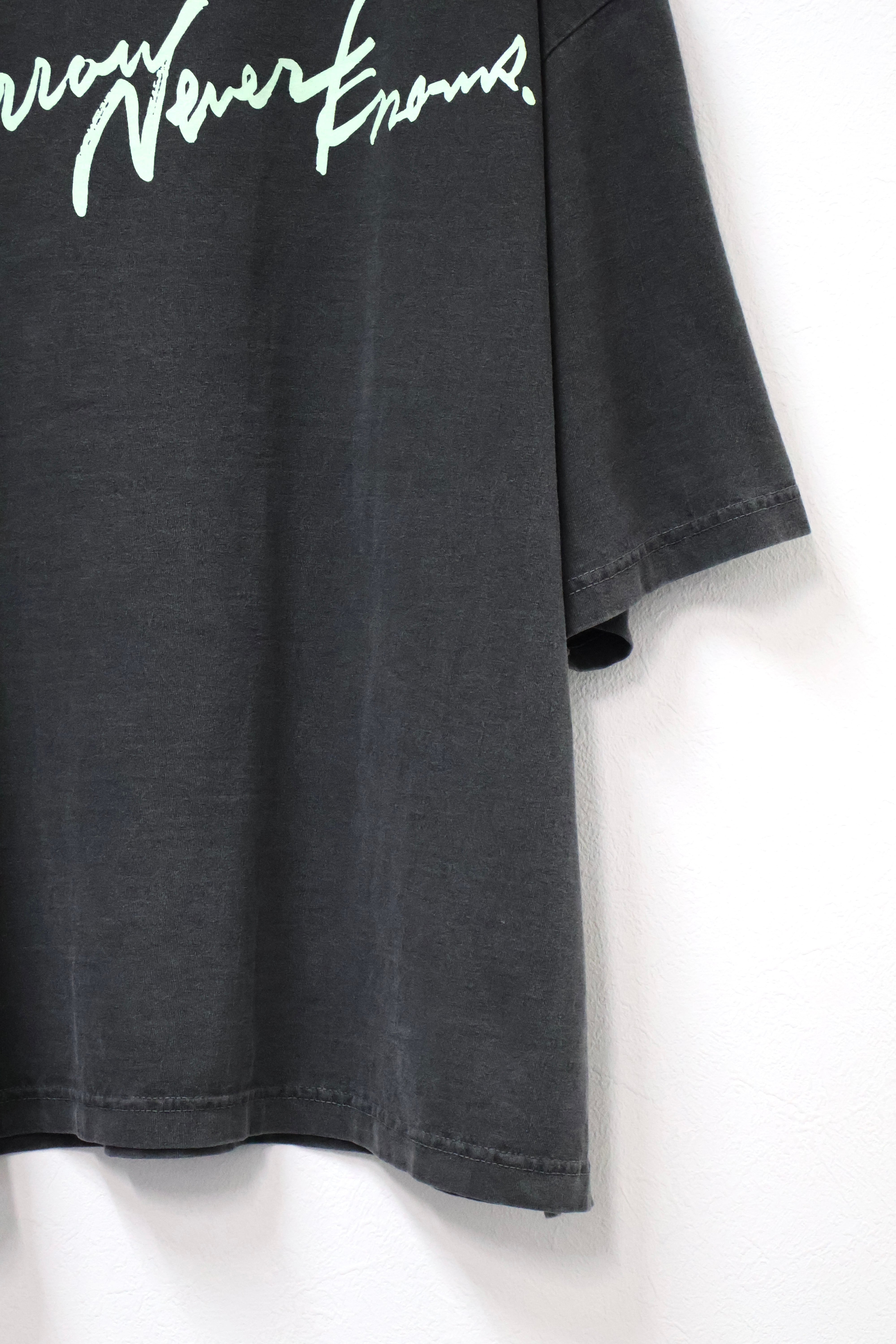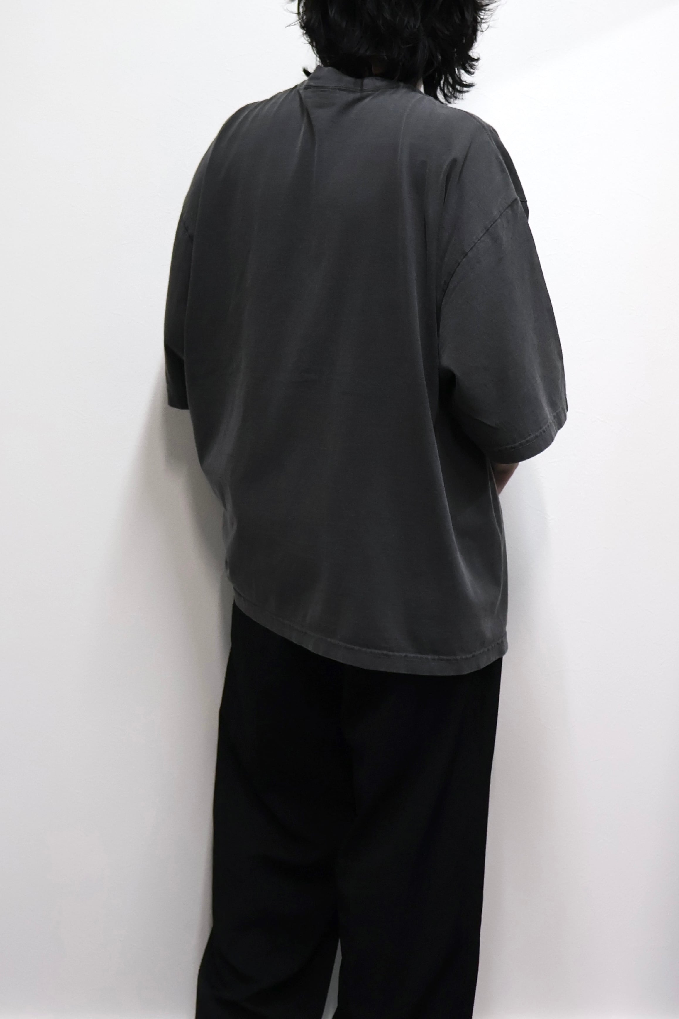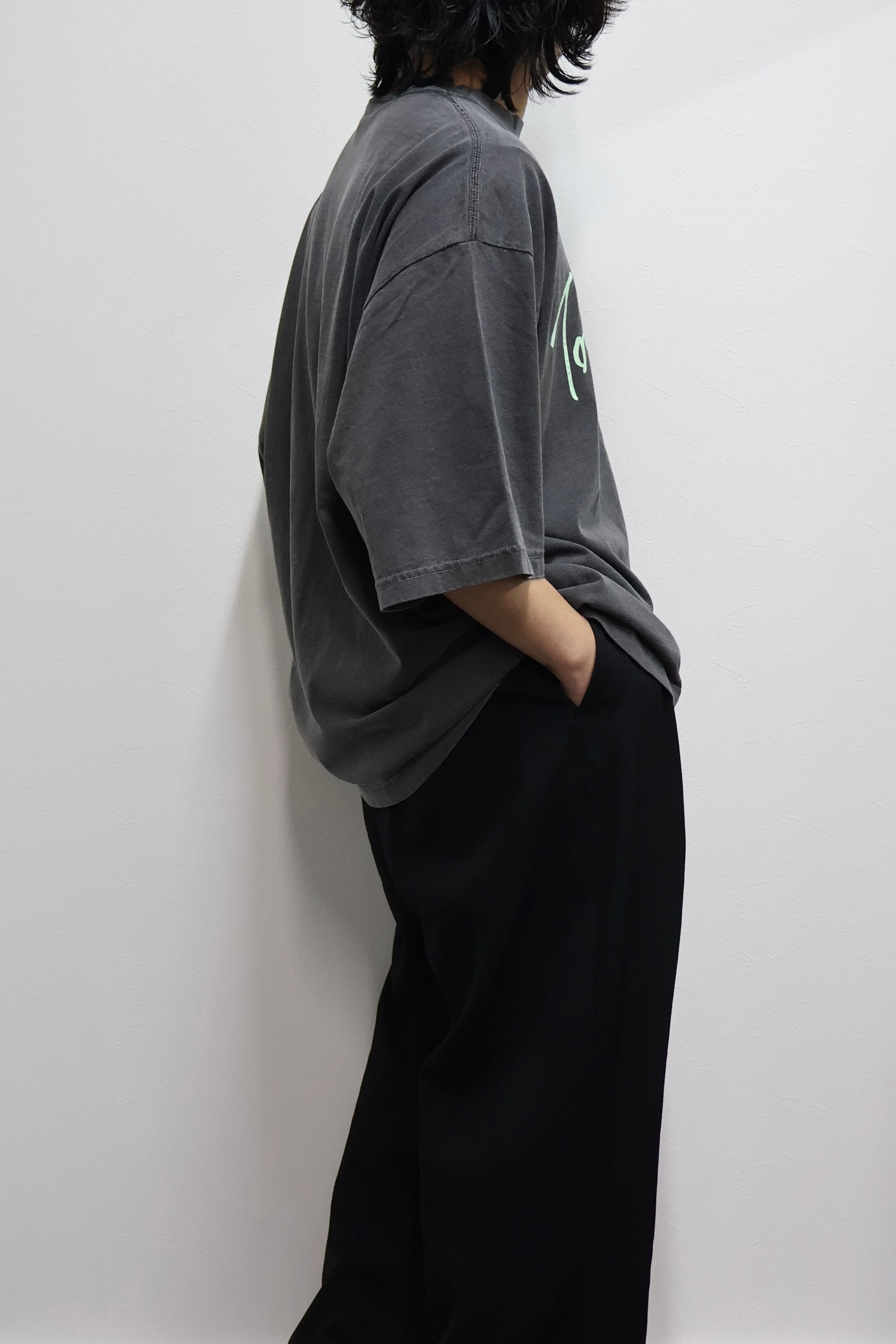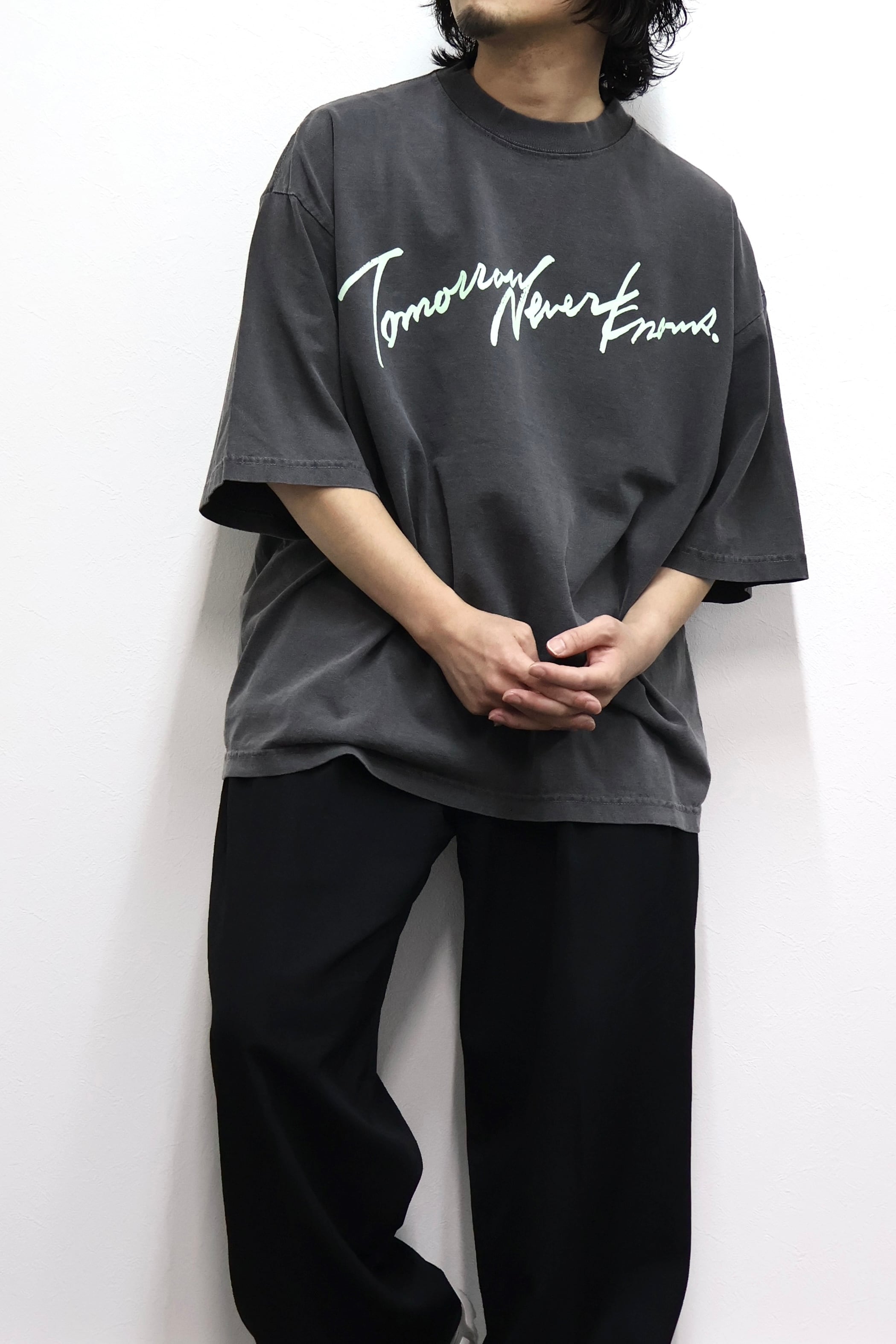 ピグメント(顔料)染料を使用した製品染めにより洗い重ねる度に退色し雰囲気の増す生地感が特徴。アンディウォーホールによって創刊されたインタビューマガジンのロゴを着想に、BEATLESの楽曲 "TOMORROW NEVER KNOWS" を掛け合わせたオリジナルデザイン。