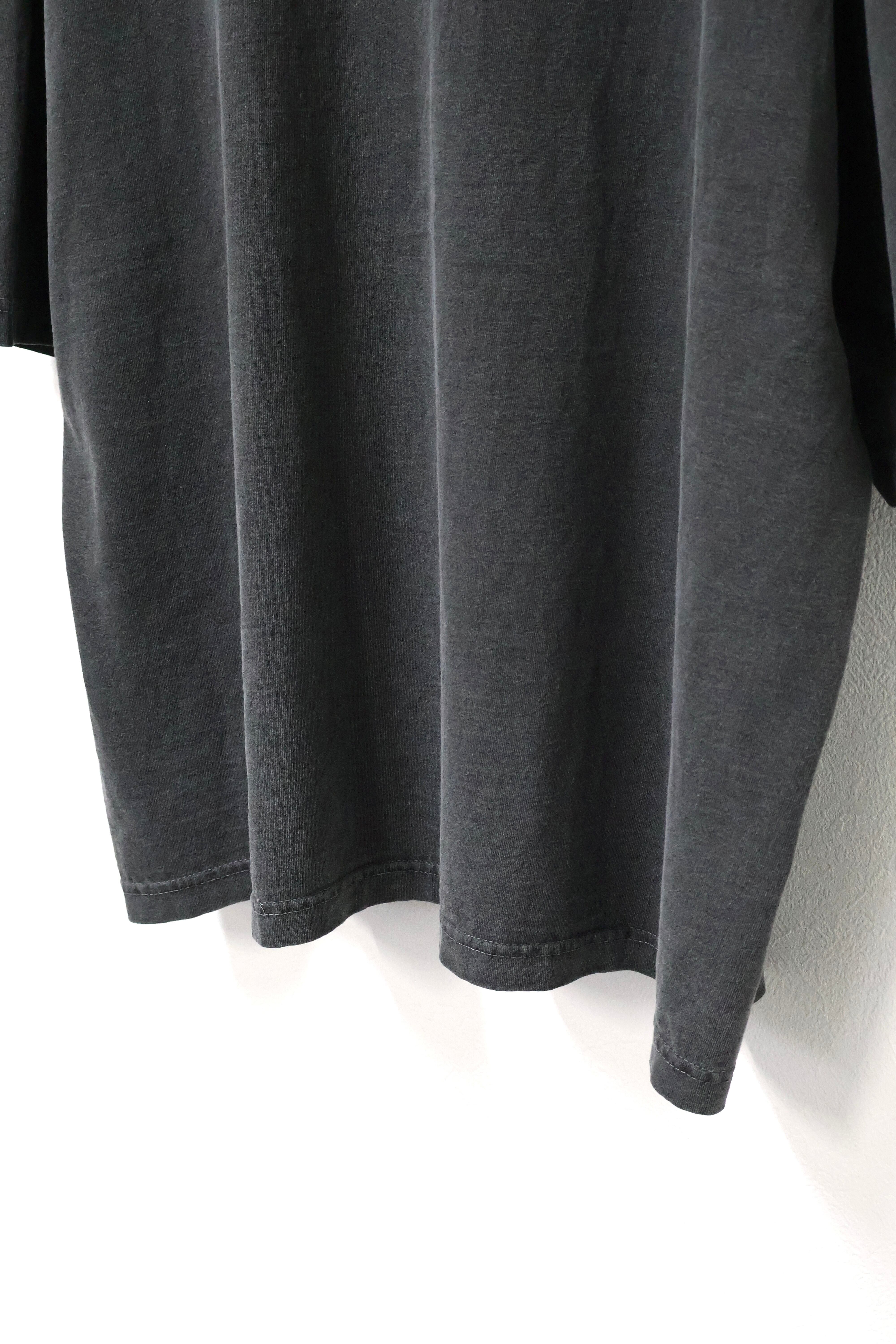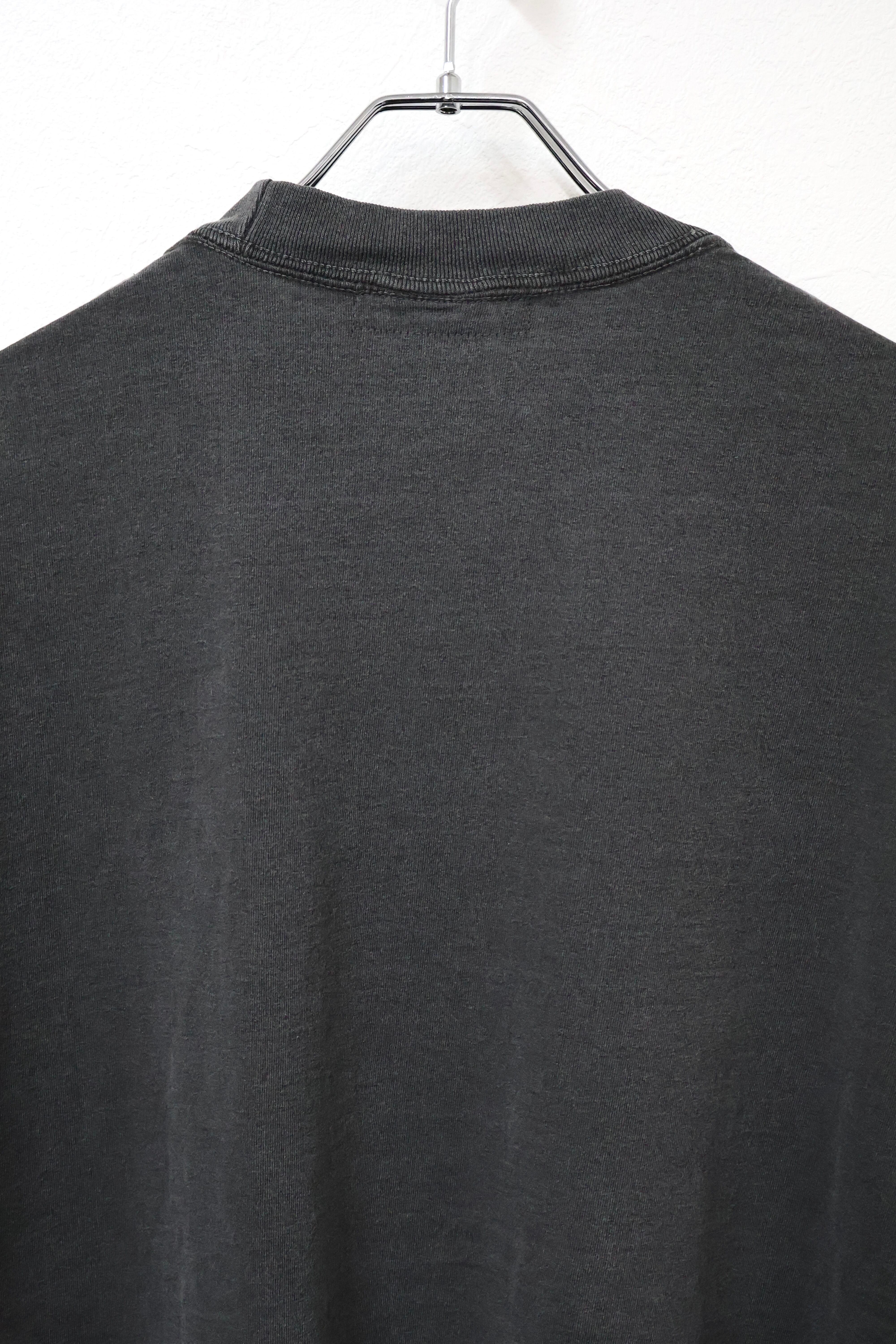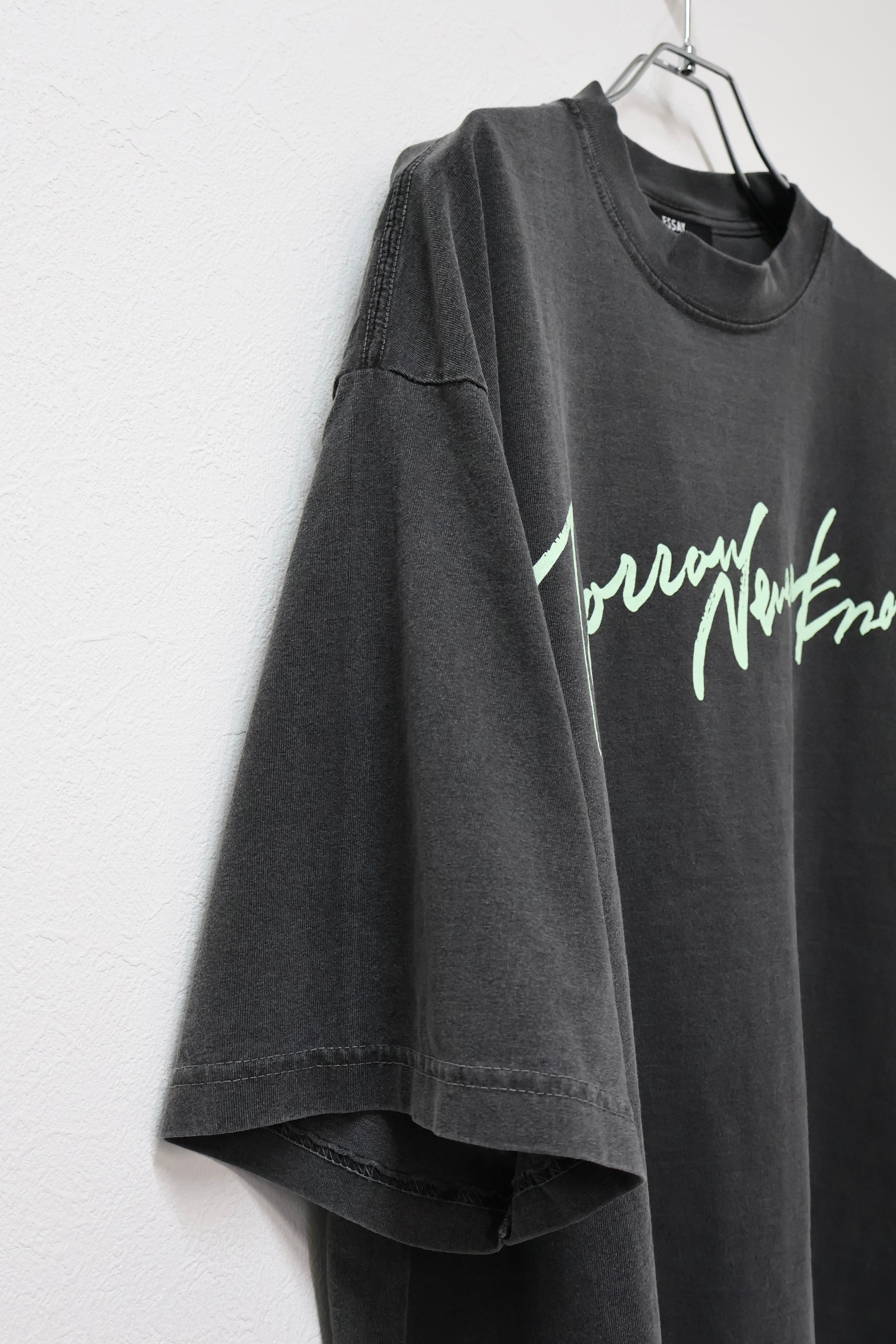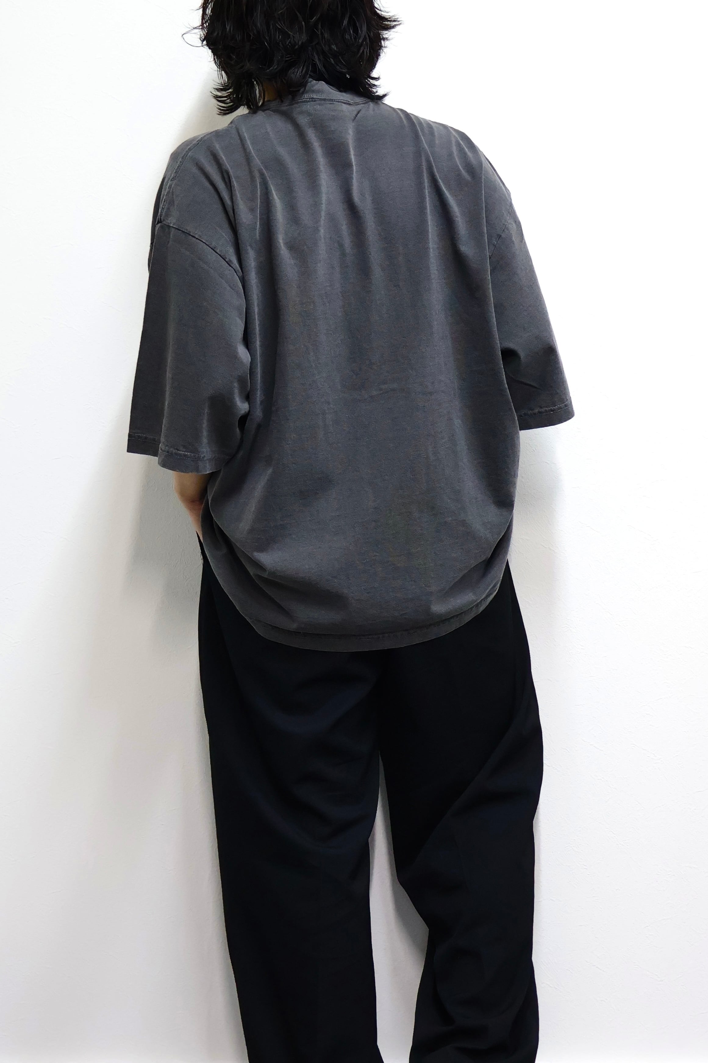 ピグメント(顔料)染料を使用した製品染めにより洗い重ねる度に退色し雰囲気の増す生地感が特徴。アンディウォーホールによって創刊されたインタビューマガジンのロゴを着想に、BEATLESの楽曲 "TOMORROW NEVER KNOWS" を掛け合わせたオリジナルデザイン。
