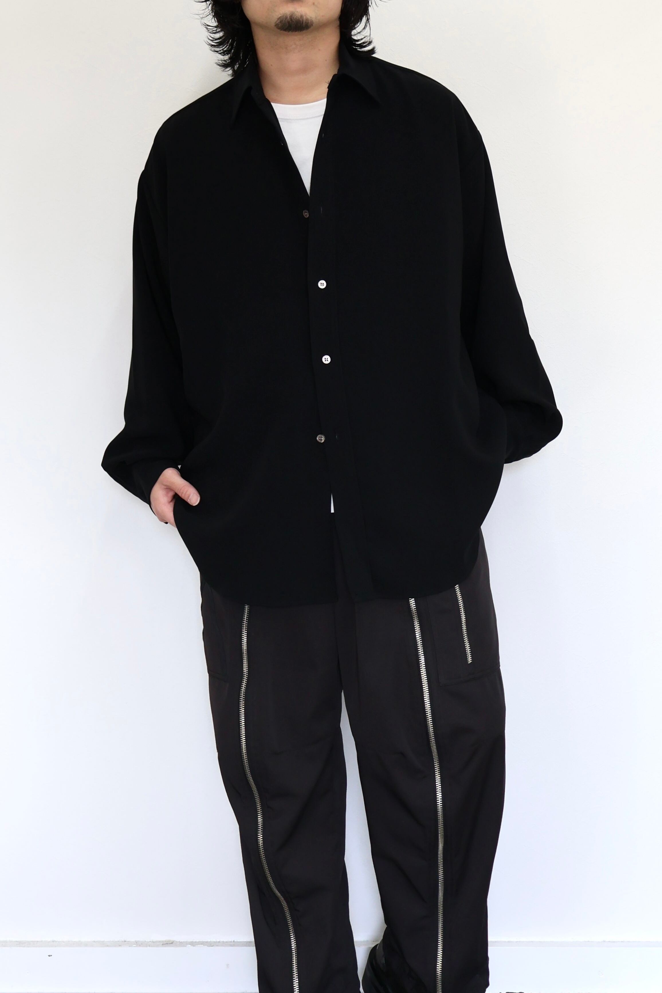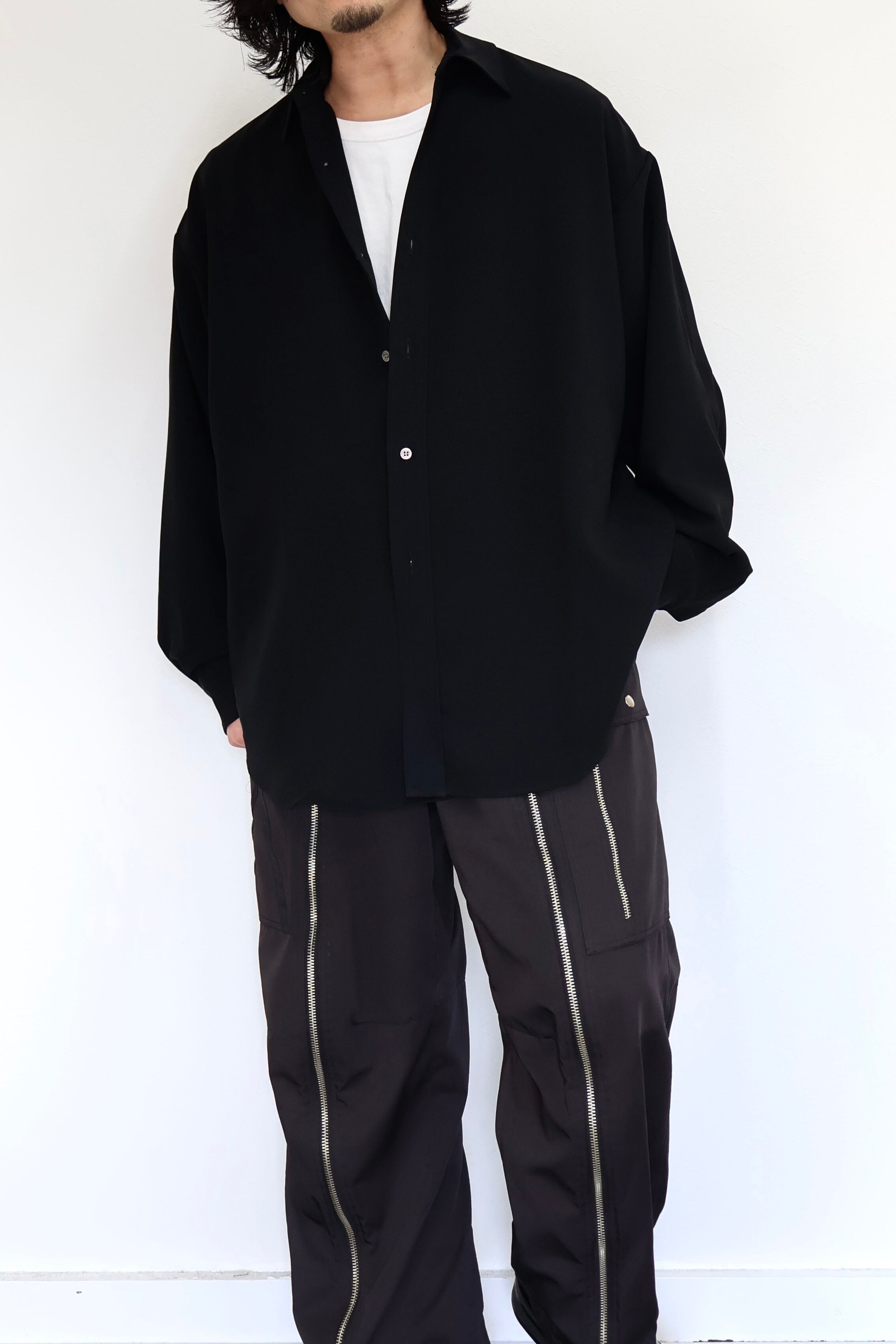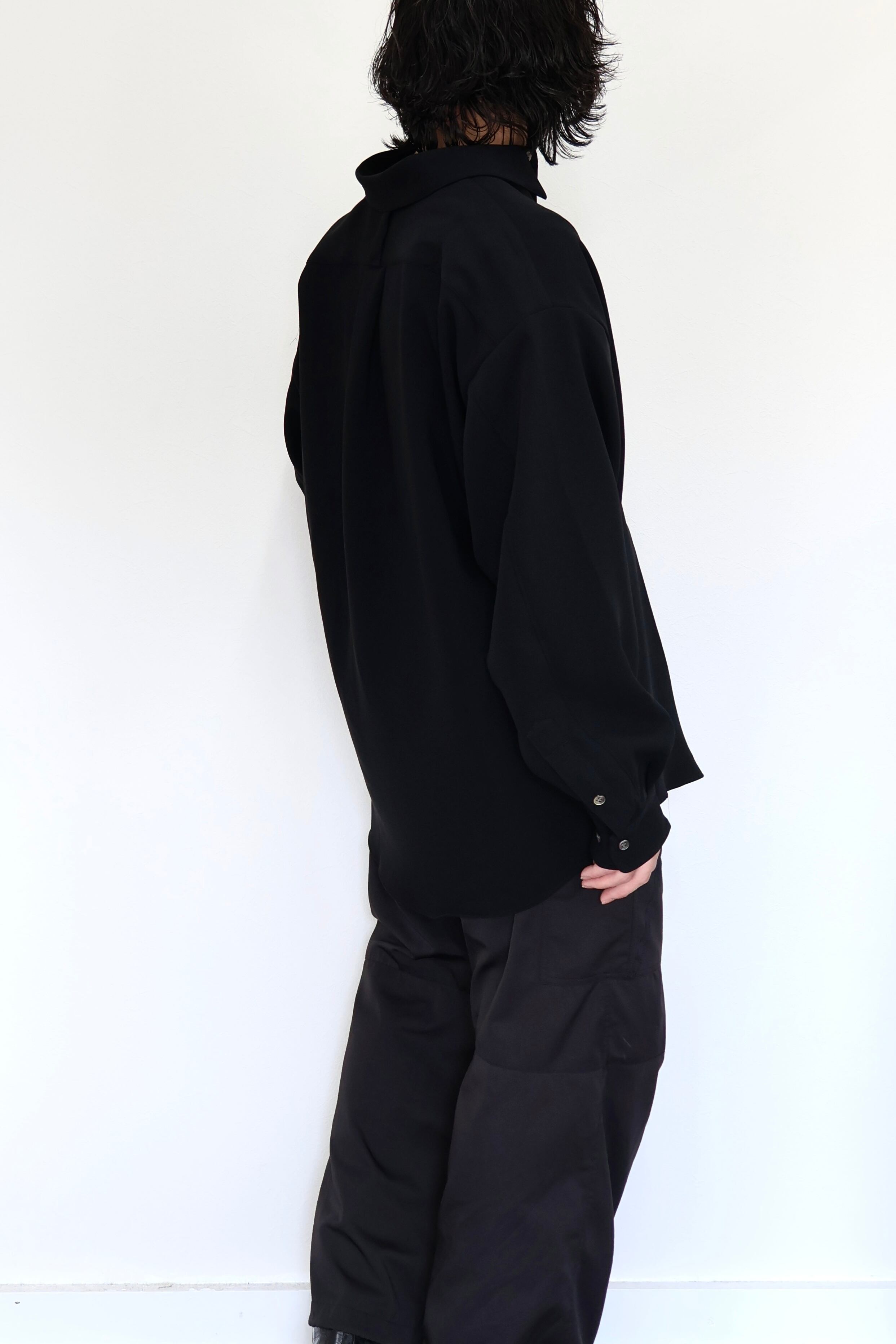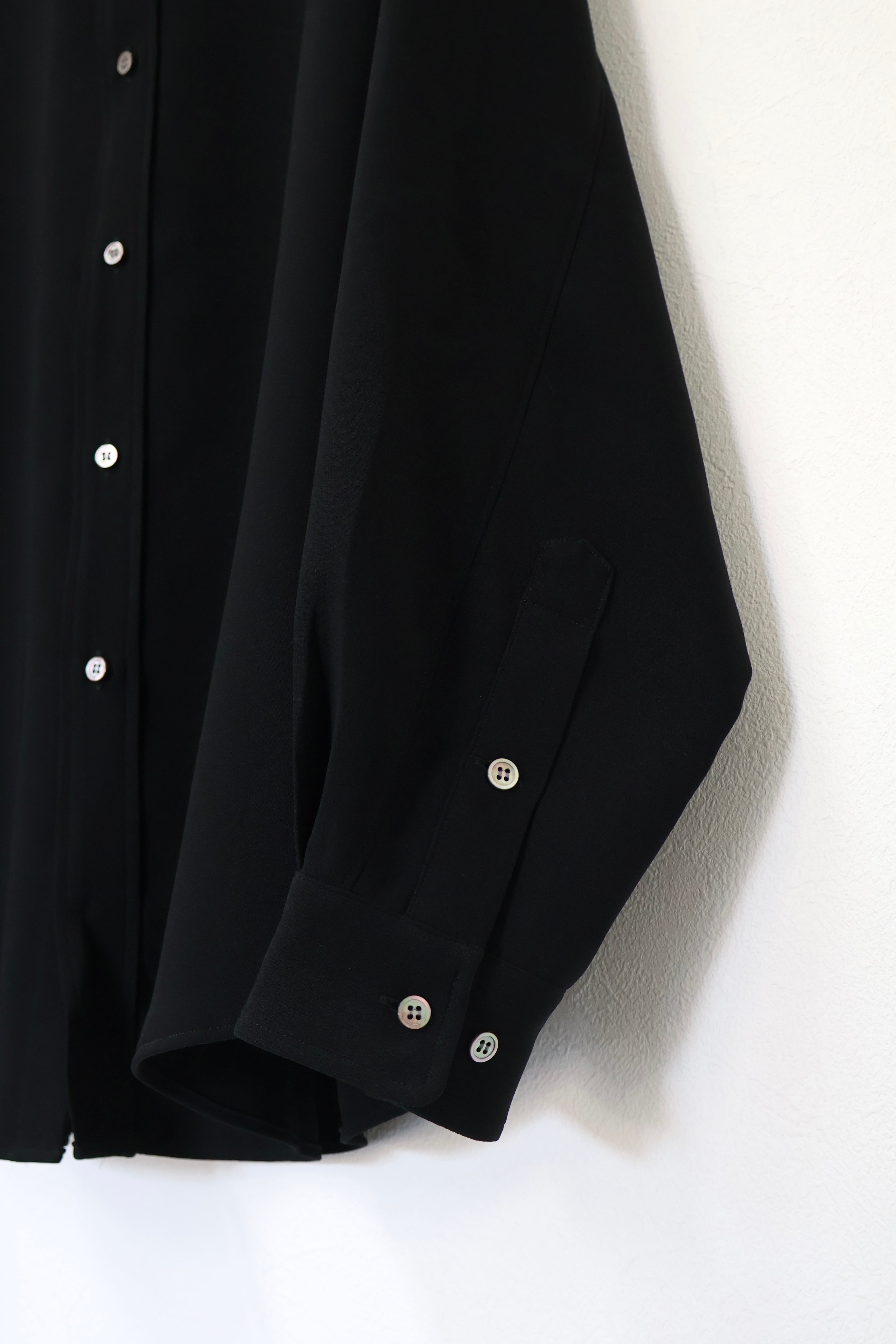 上質なトリアセテート素材を使用したリラックスフィットシャツ。柔らかく上品な肌触りとドレープ感が特徴。背中ヨーク中央にはハンガーループを、袖口には2段階で調節可能なボタンを採用。