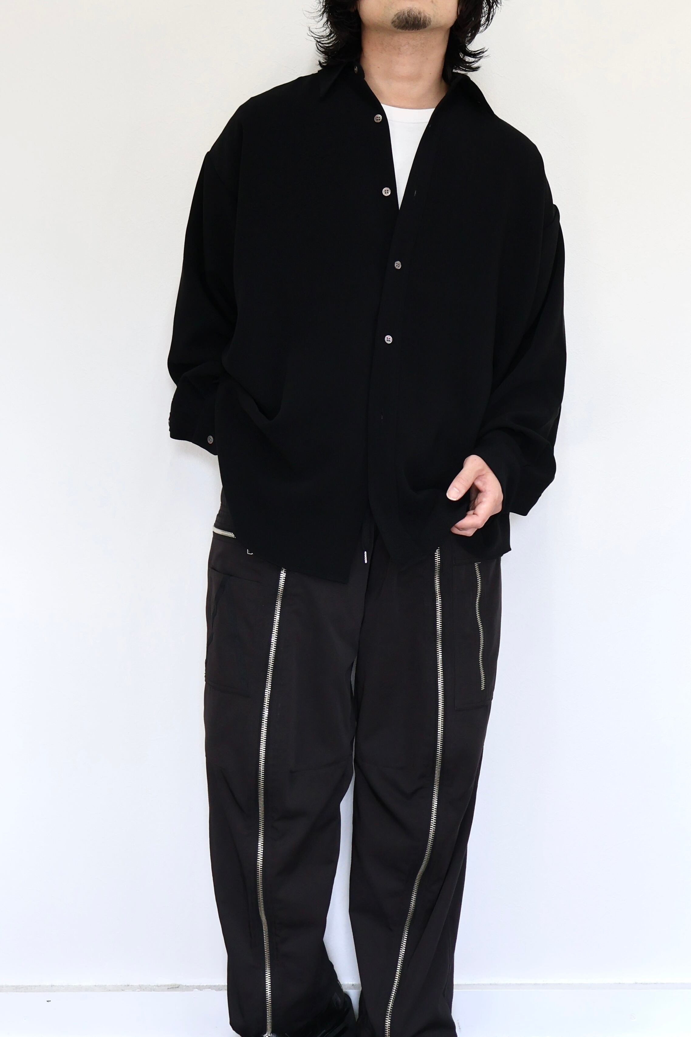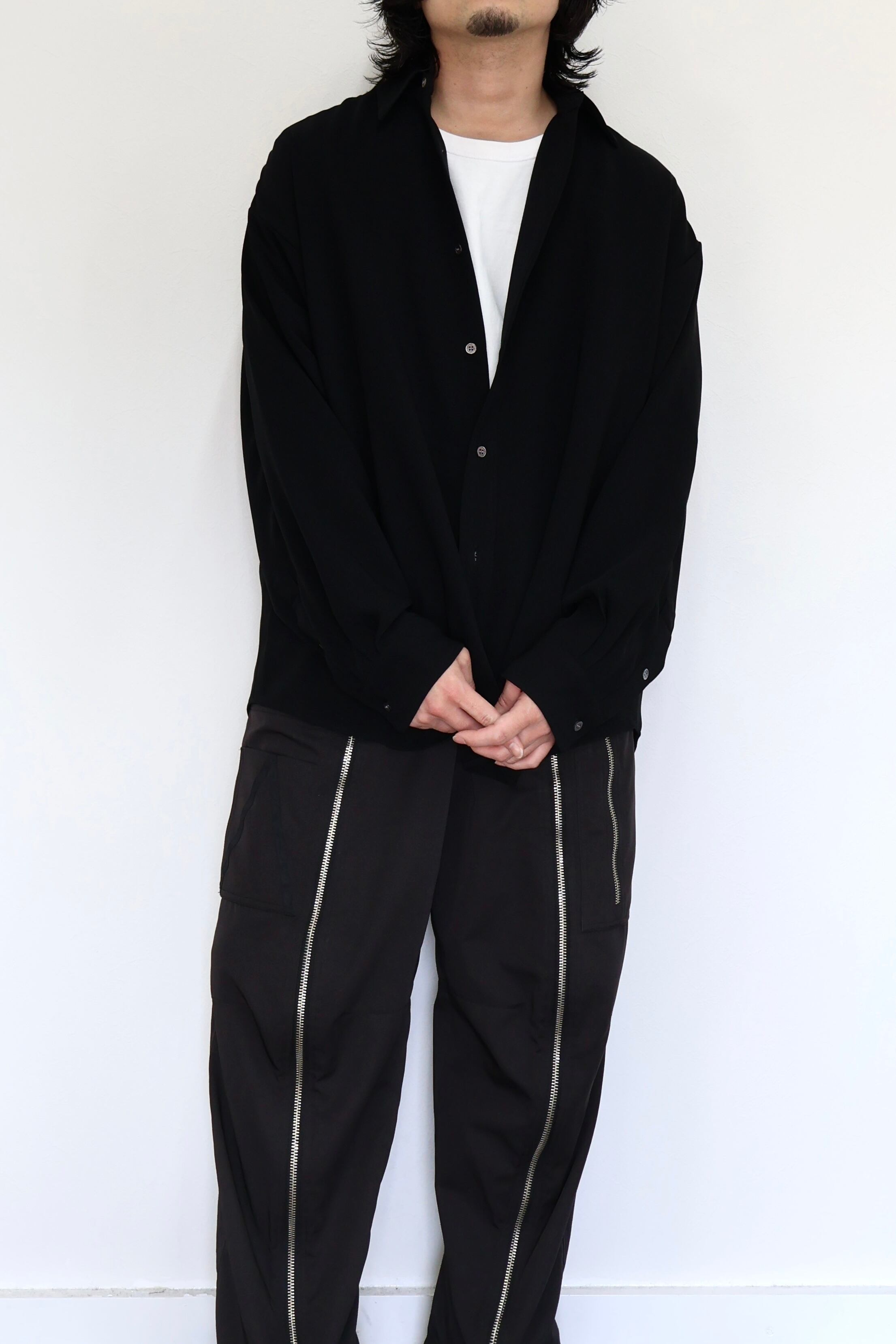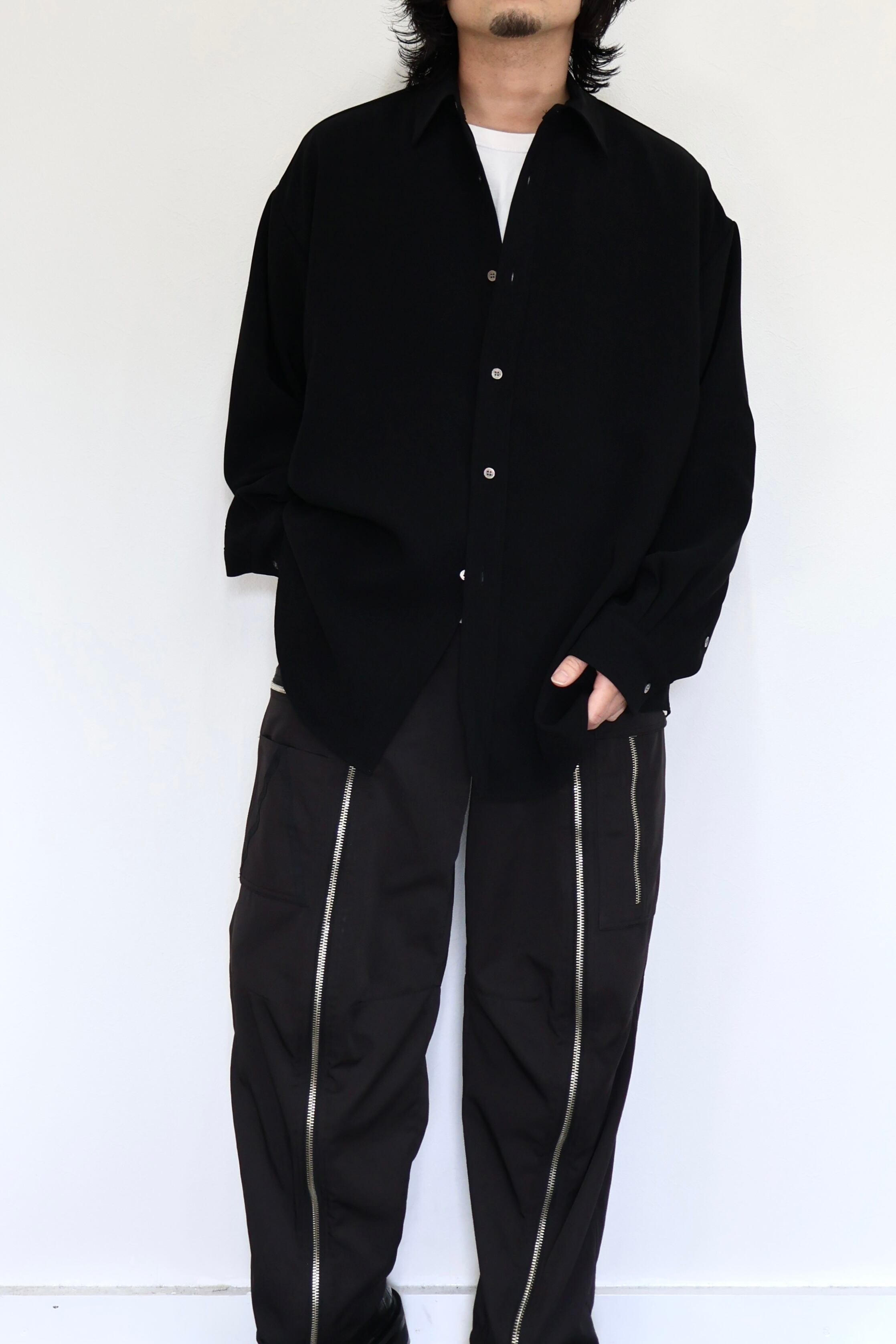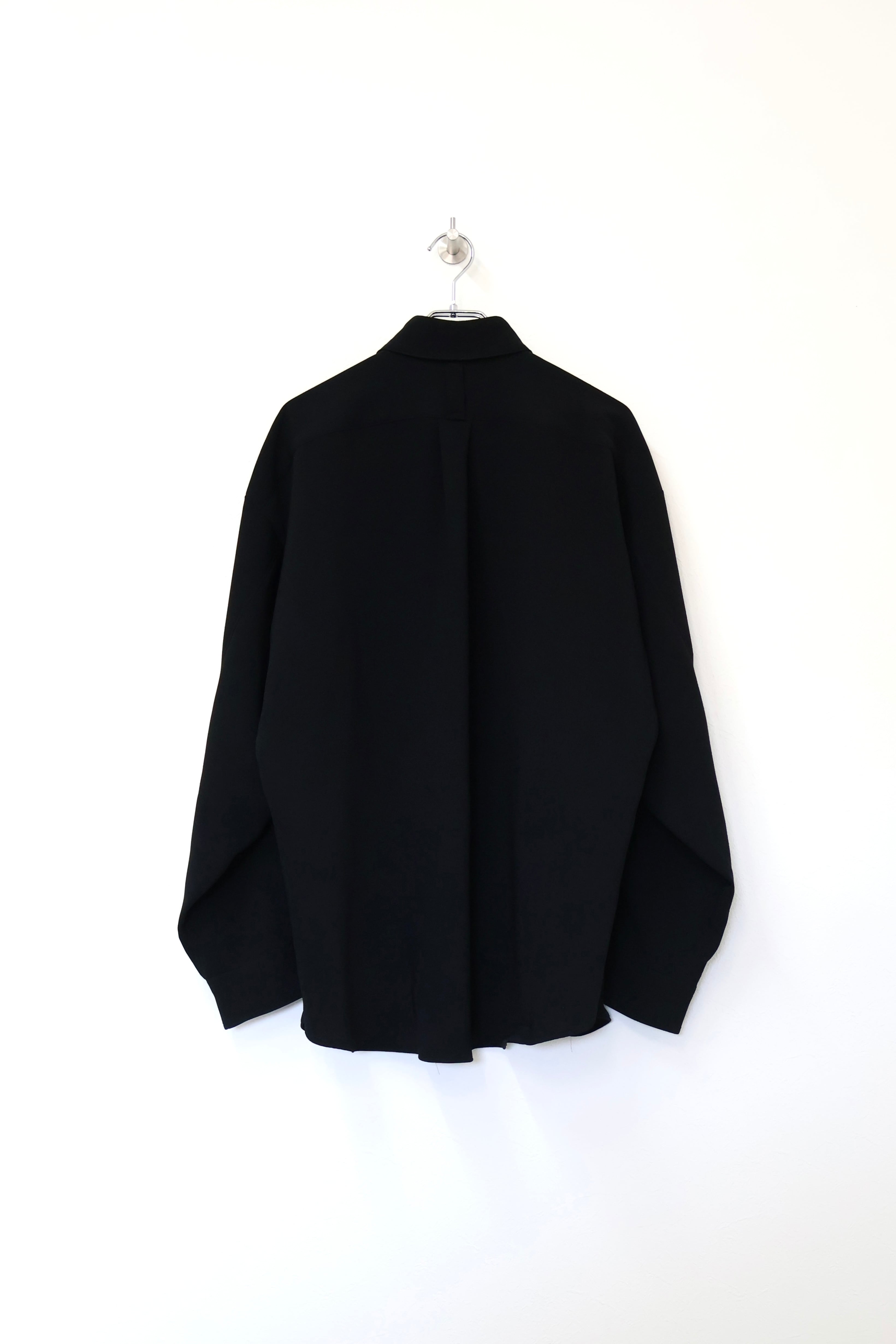 上質なトリアセテート素材を使用したリラックスフィットシャツ。柔らかく上品な肌触りとドレープ感が特徴。背中ヨーク中央にはハンガーループを、袖口には2段階で調節可能なボタンを採用。