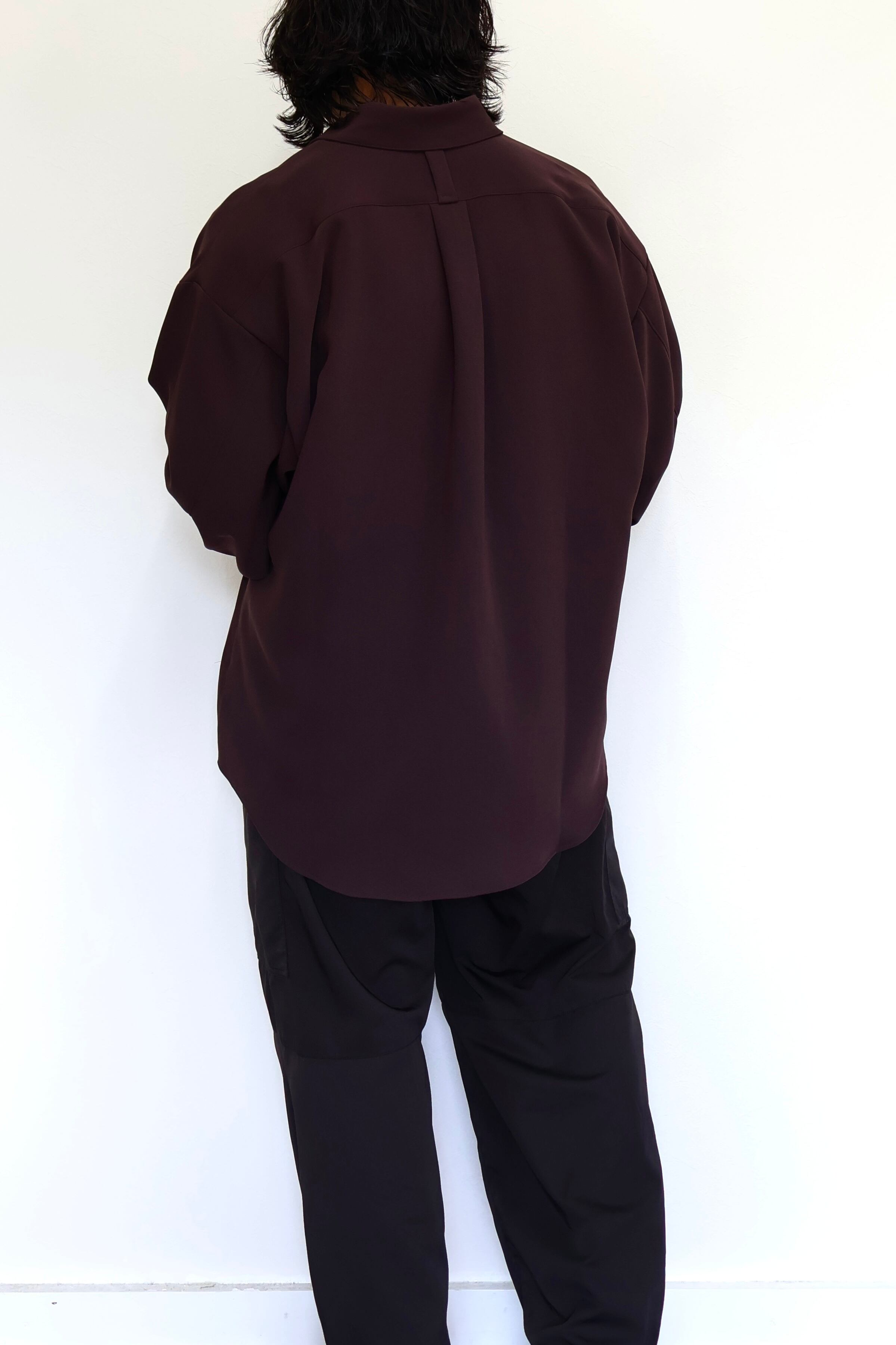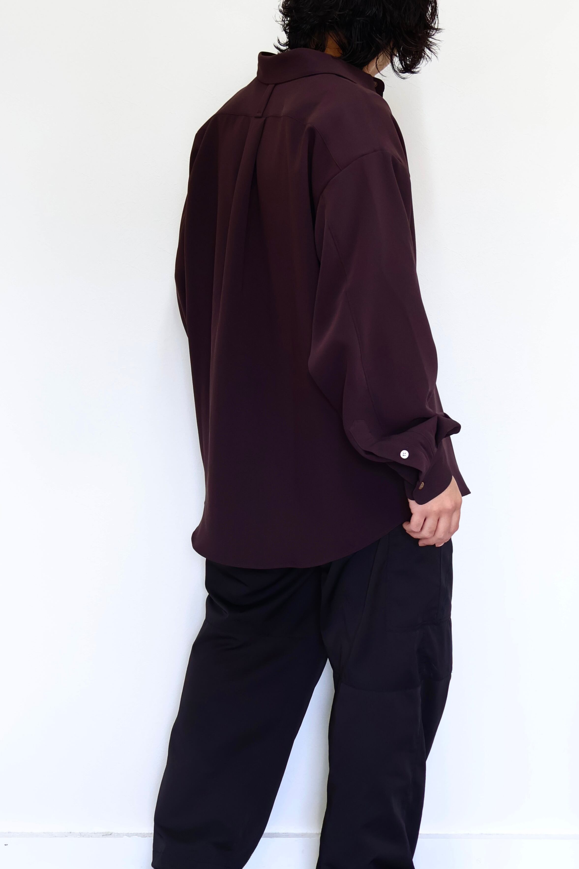 上質なトリアセテート素材を使用したリラックスフィットシャツ。柔らかく上品な肌触りとドレープ感が特徴。背中ヨーク中央にはハンガーループを、袖口には2段階で調節可能なボタンを採用。