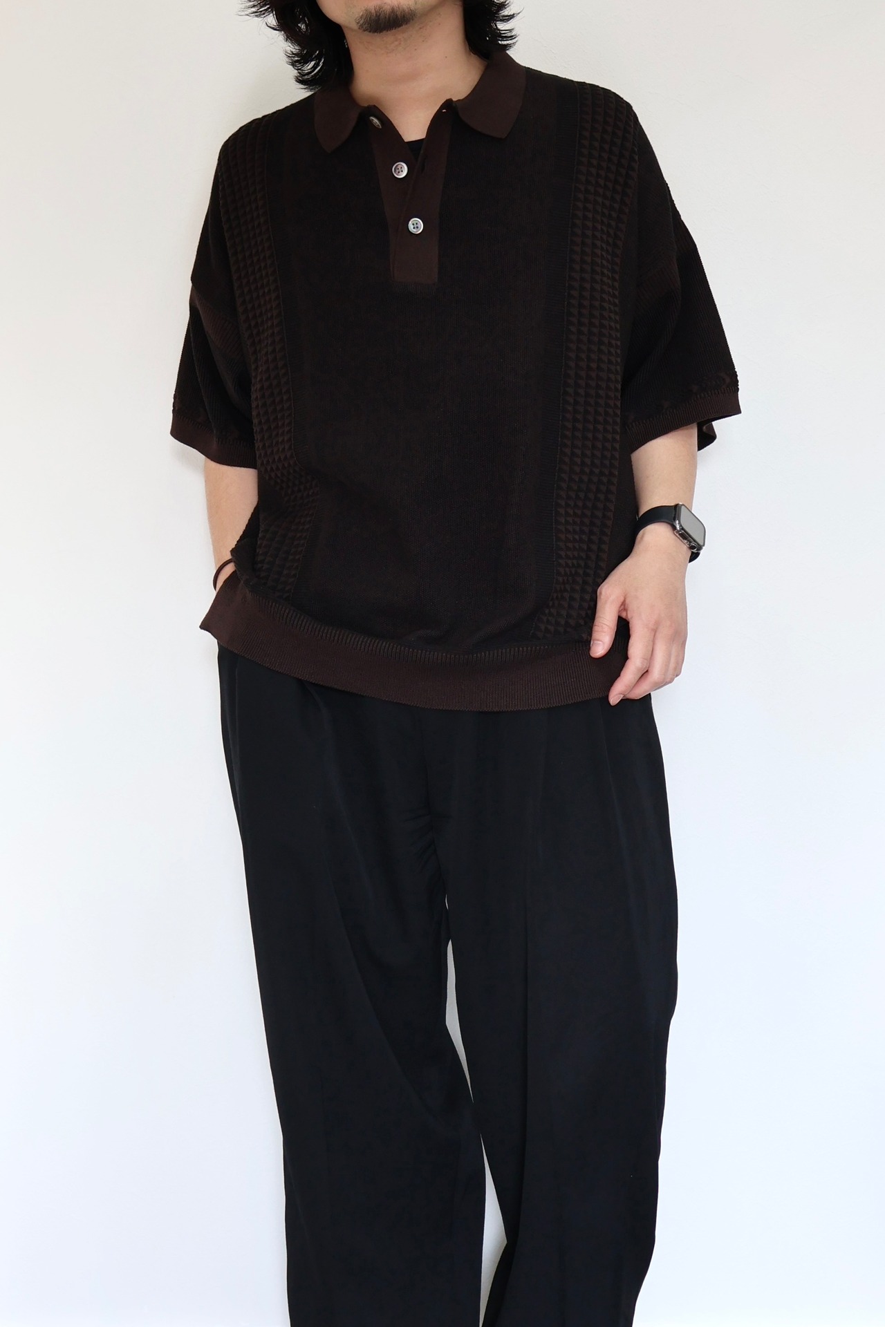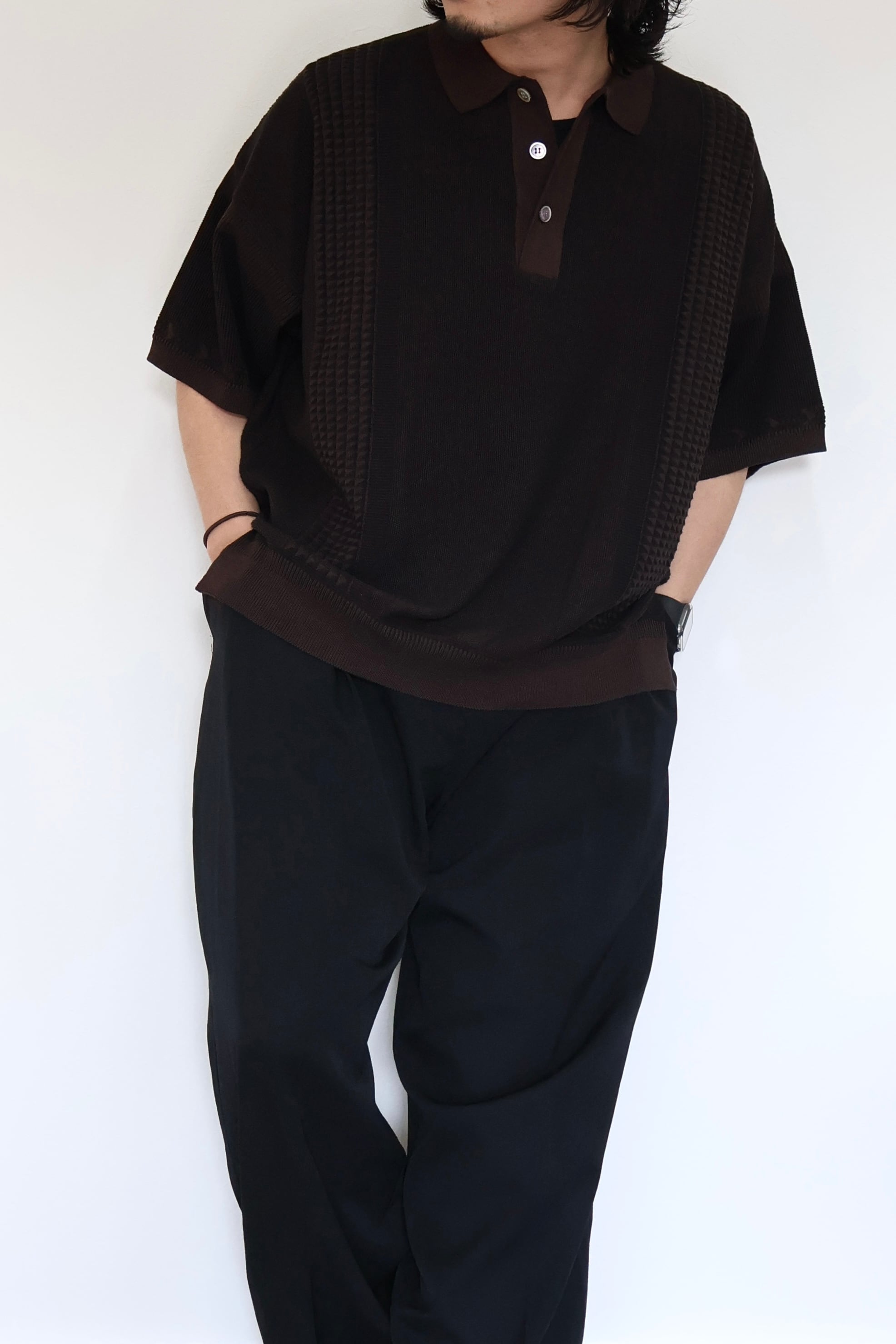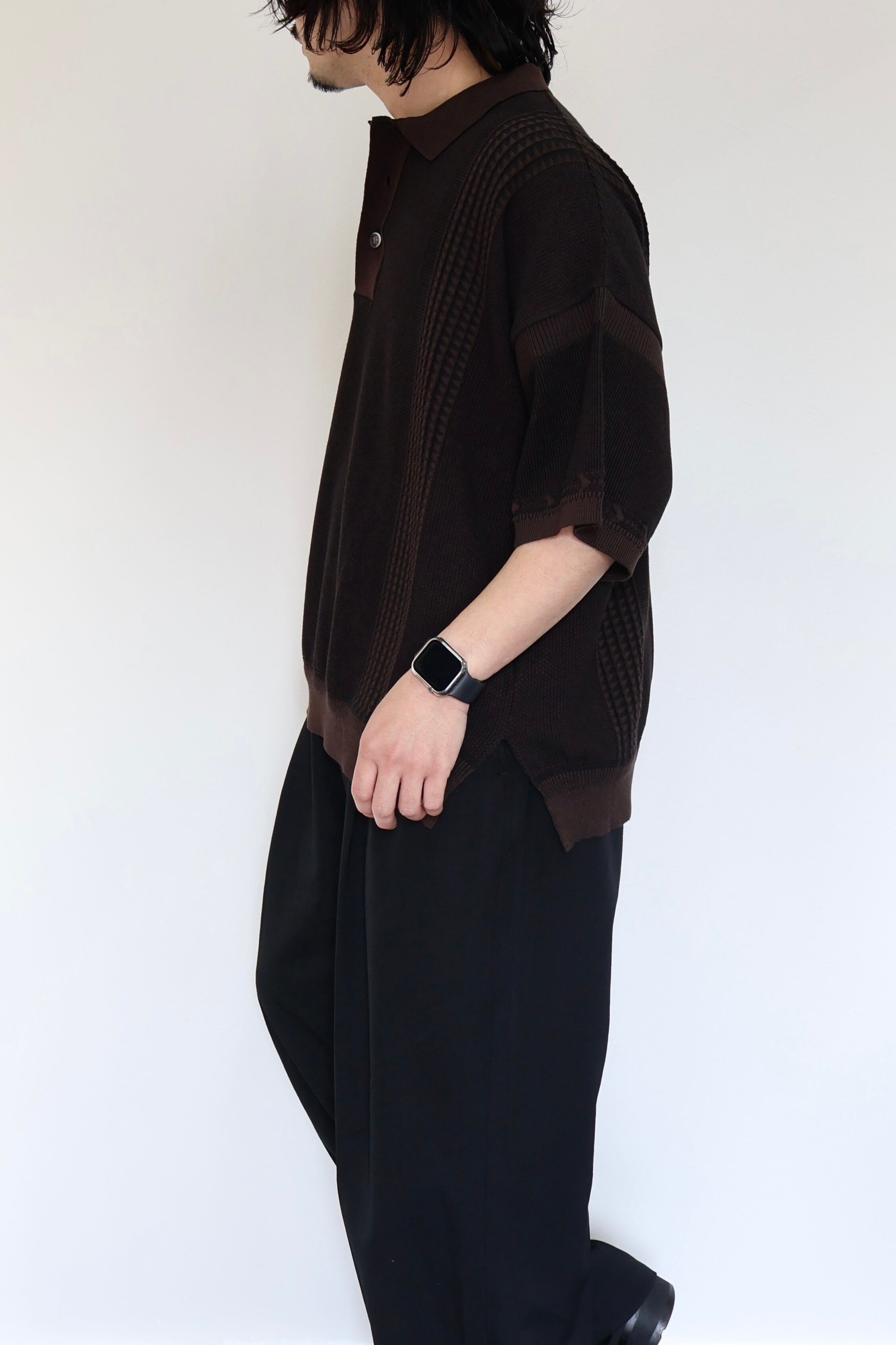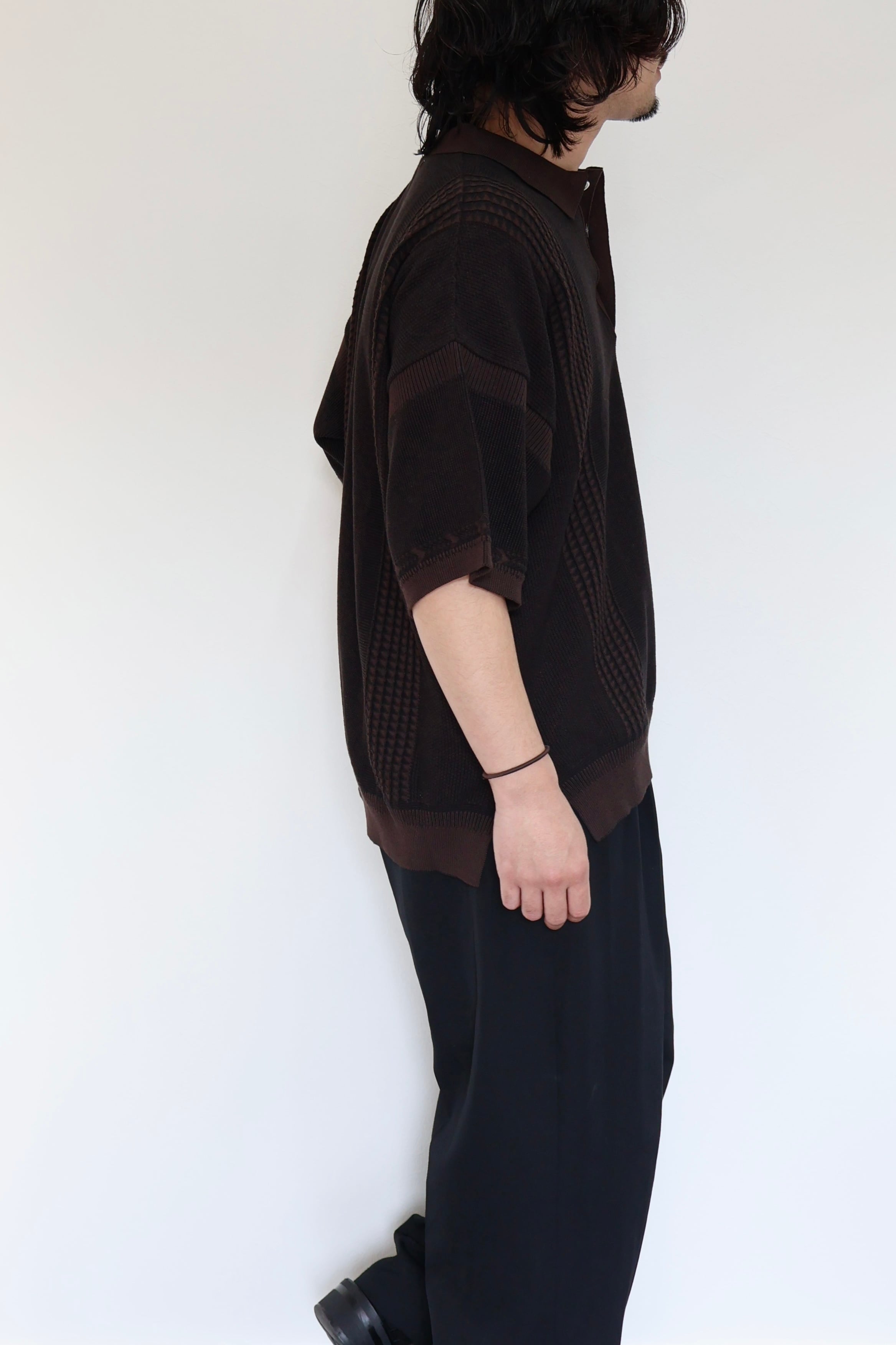 YASHIKI Aotsuyu Knit Polo -BROWN-